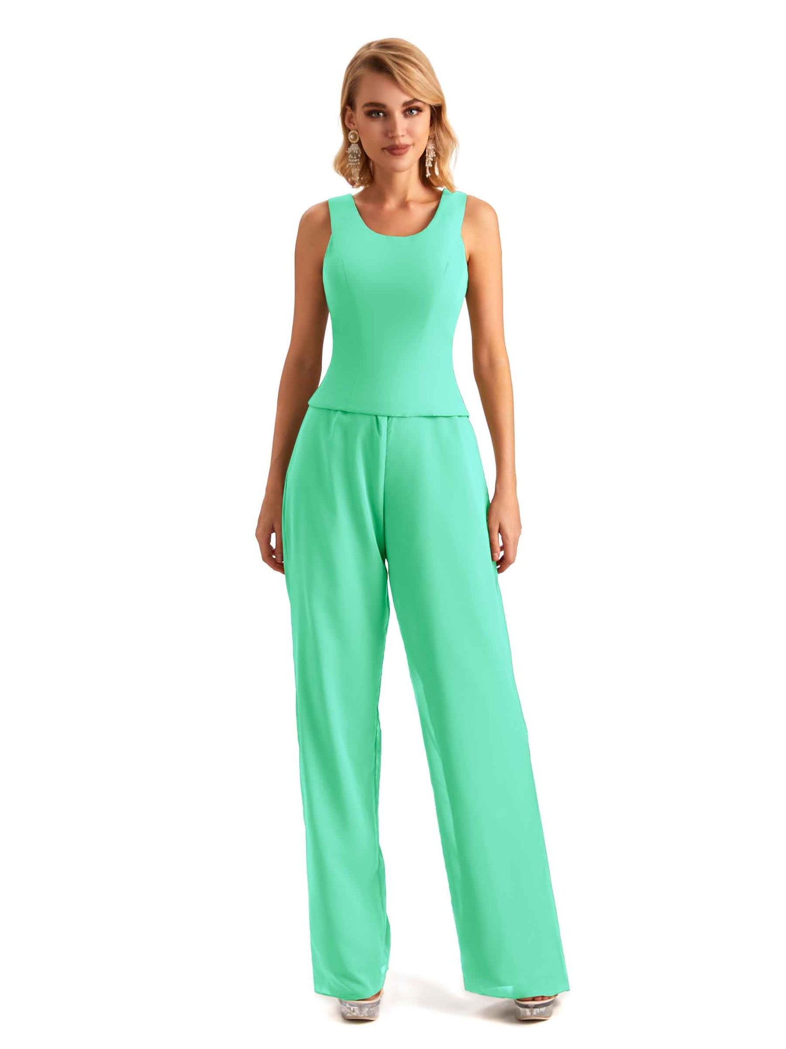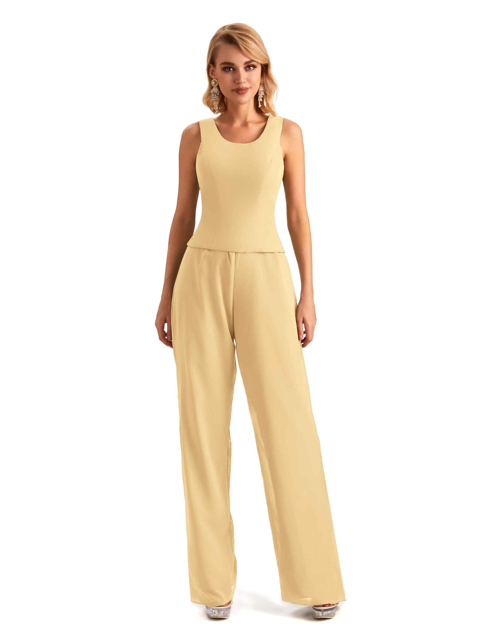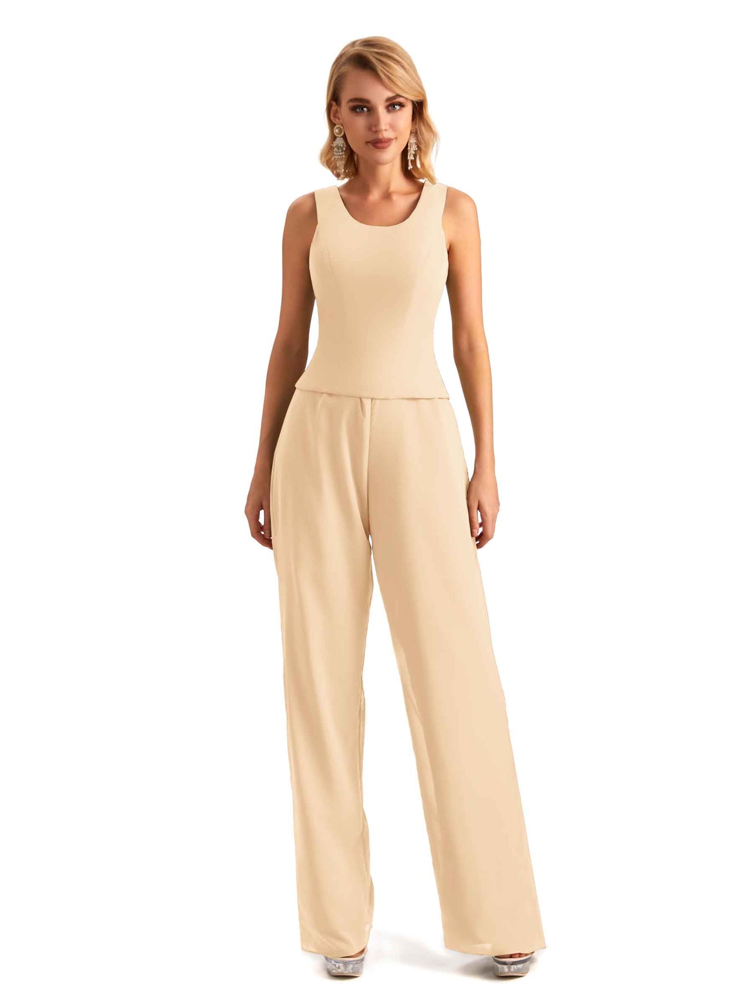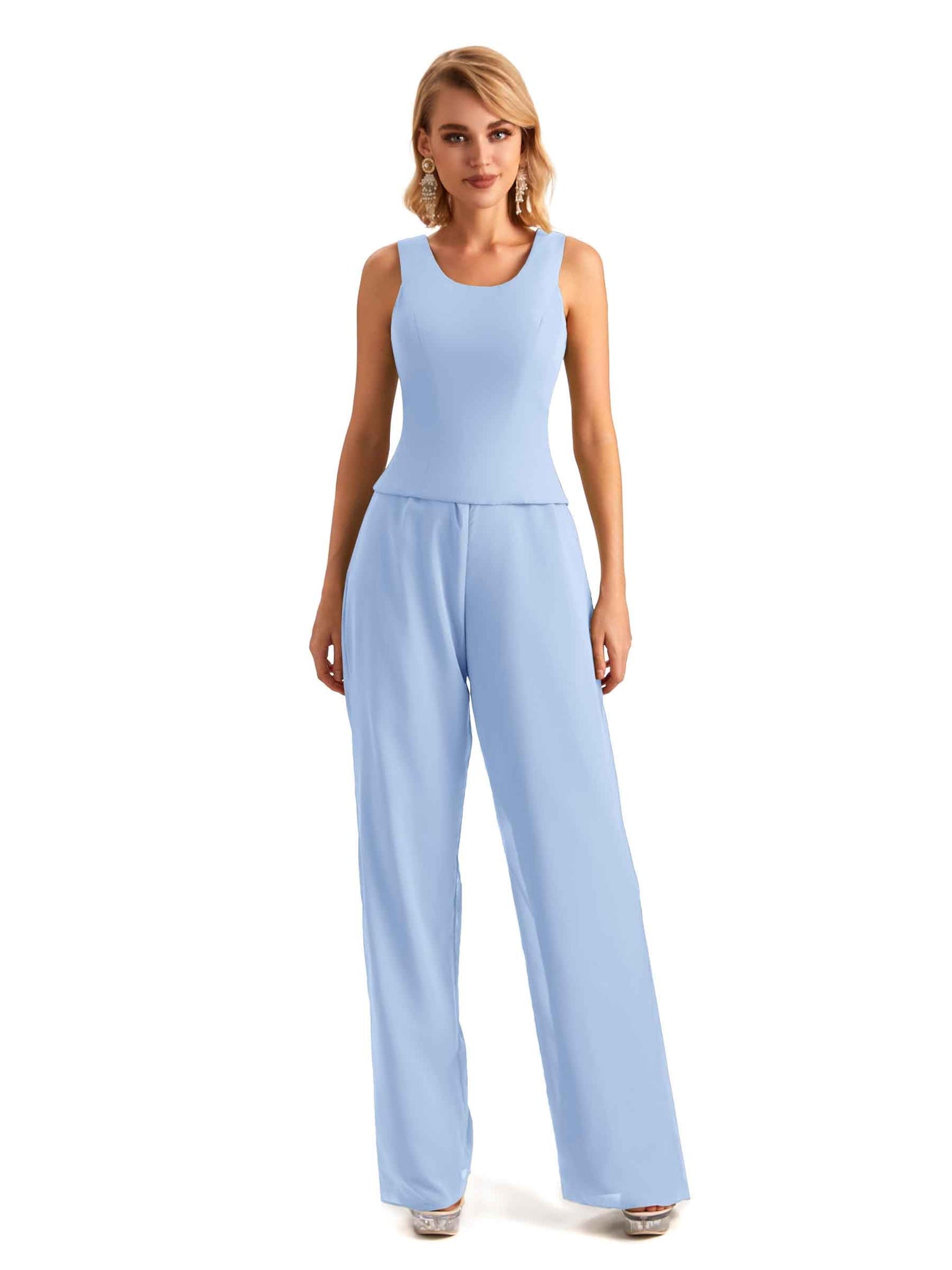Elegant Chiffon Scoop Sleeveless Pant Suit Mother Of The Bride Online - ChicSew – ChicSew