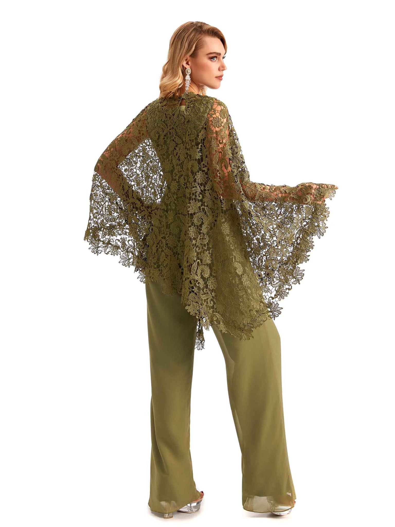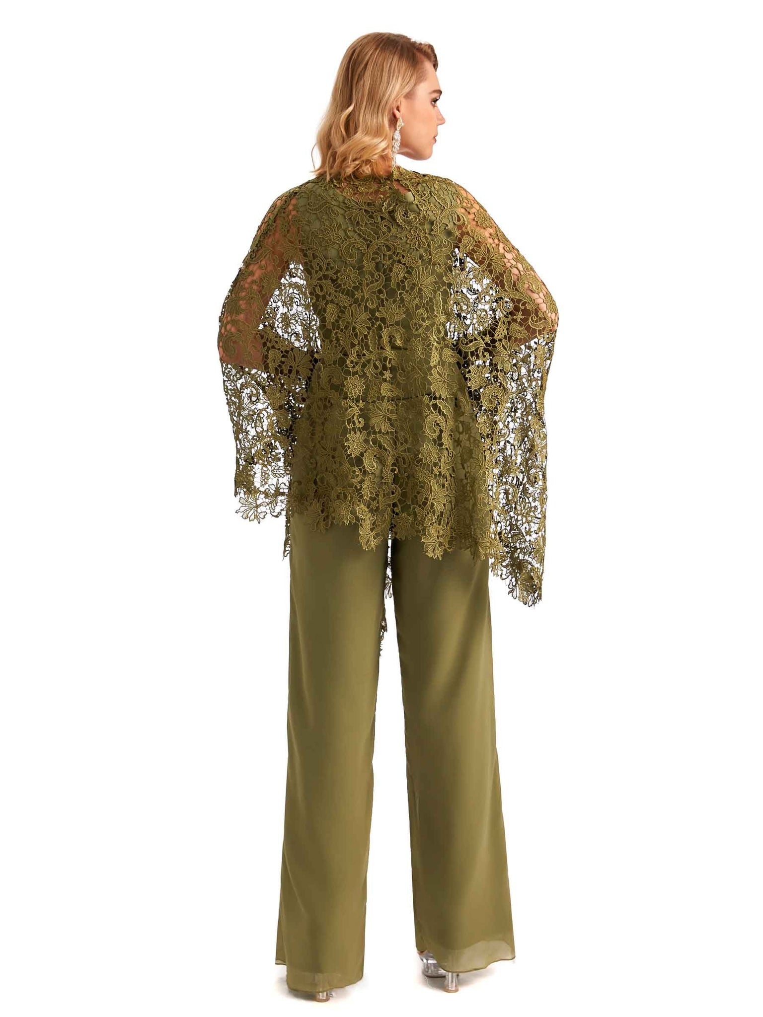 Elegant Chiffon Scoop Mother Of The Bride Pant Suit With Lace Jacket