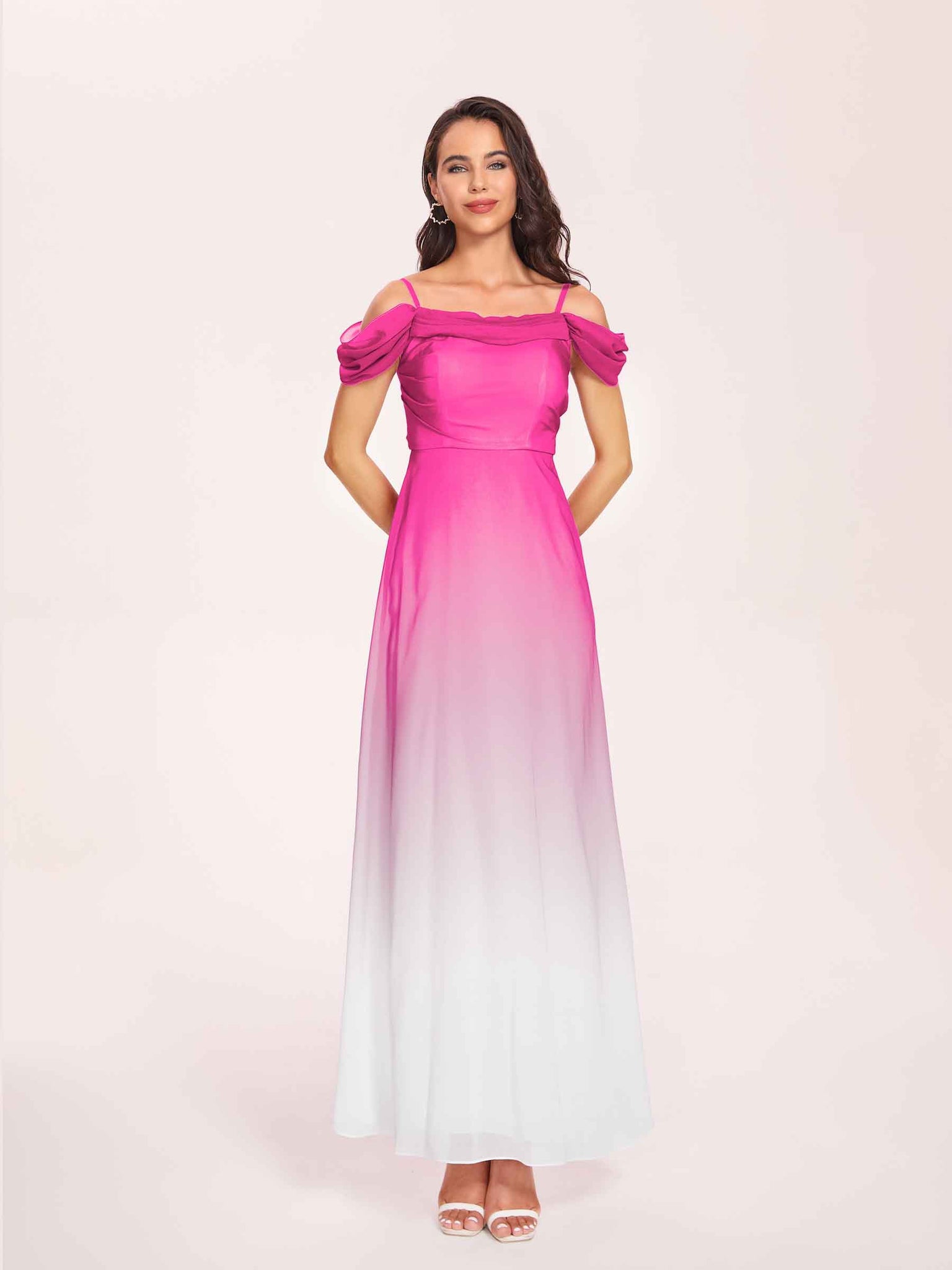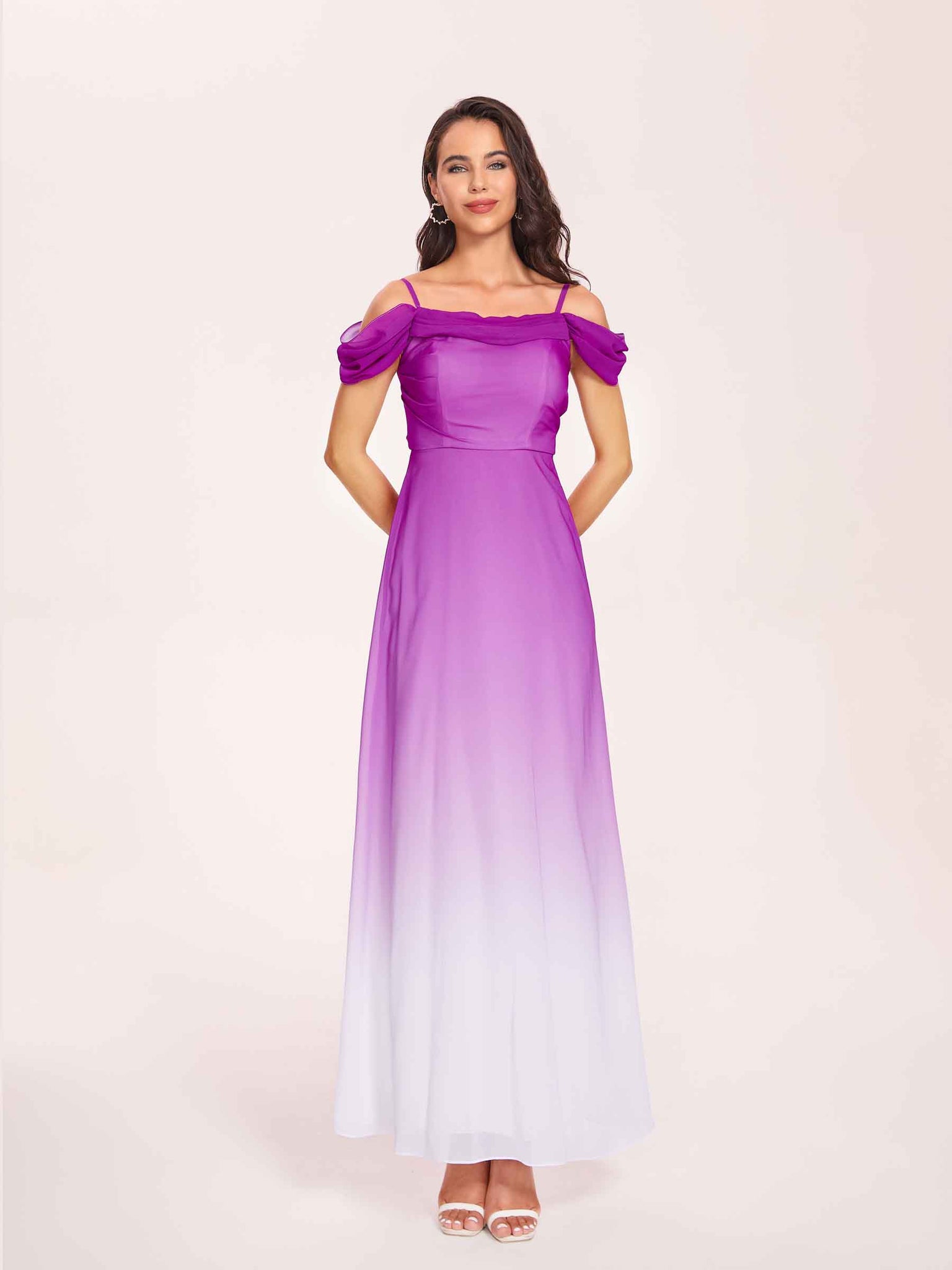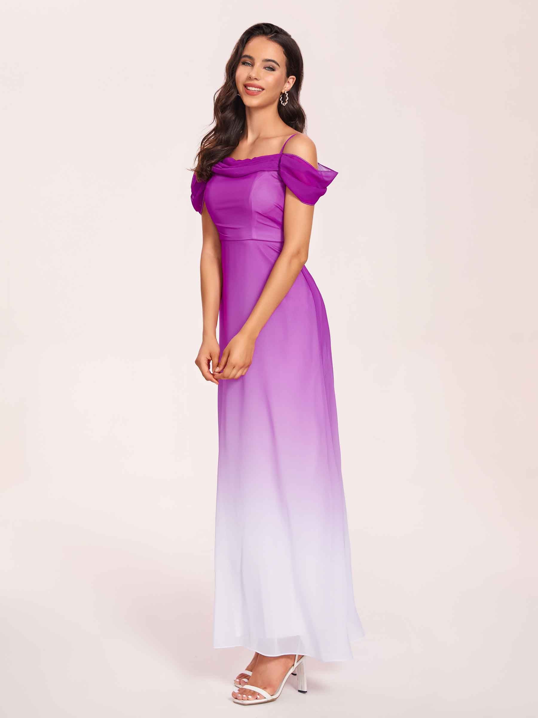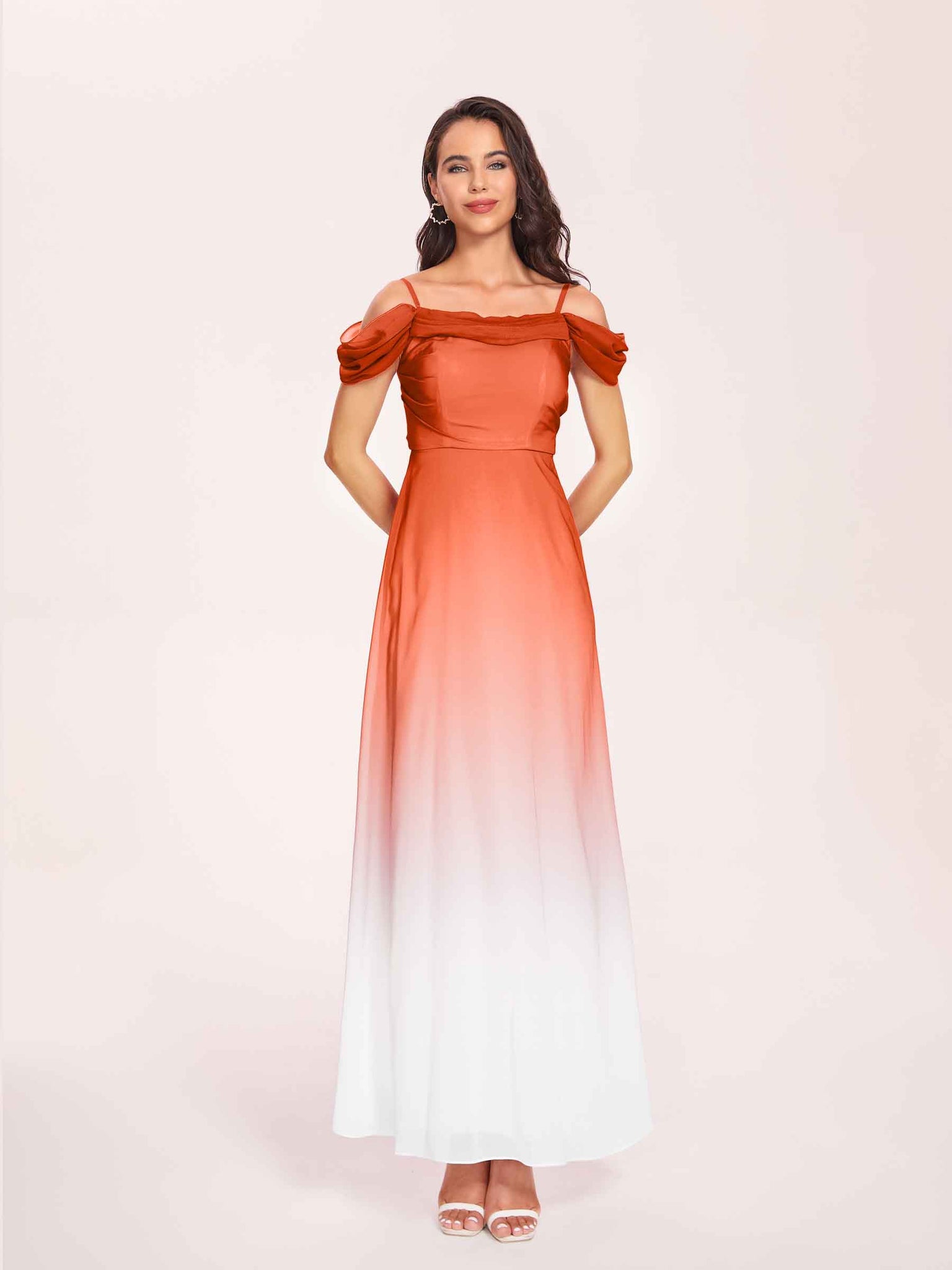Elegant Cold Shoulder A-line Chiffon Long Ombre Bridesmaid Dresses Onlines - ChicSew – ChicSew