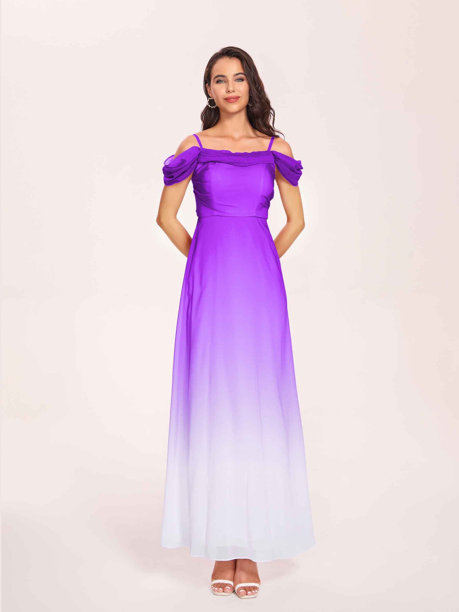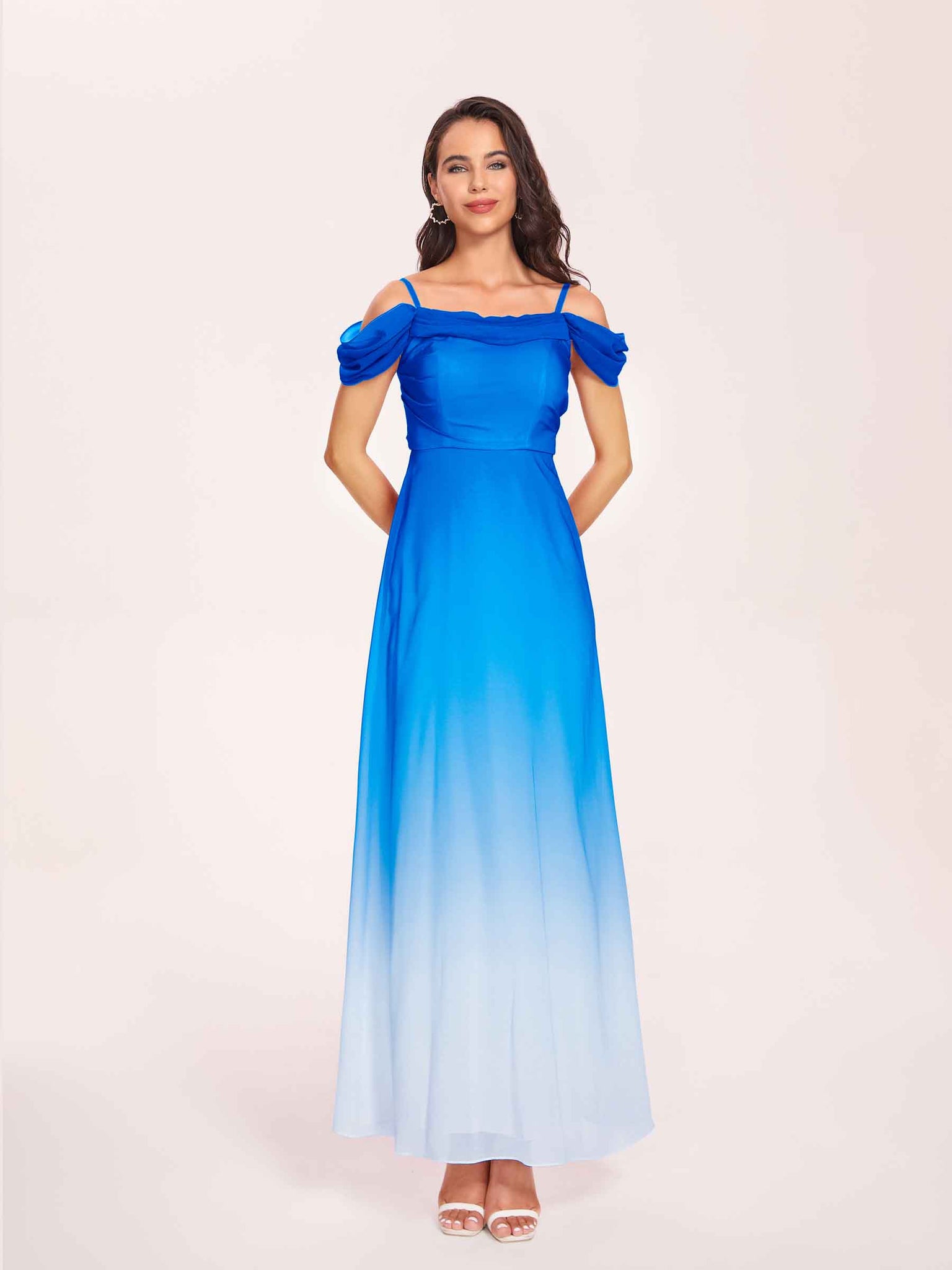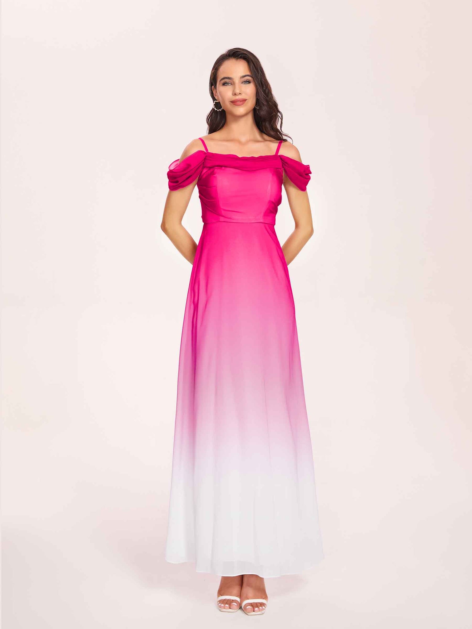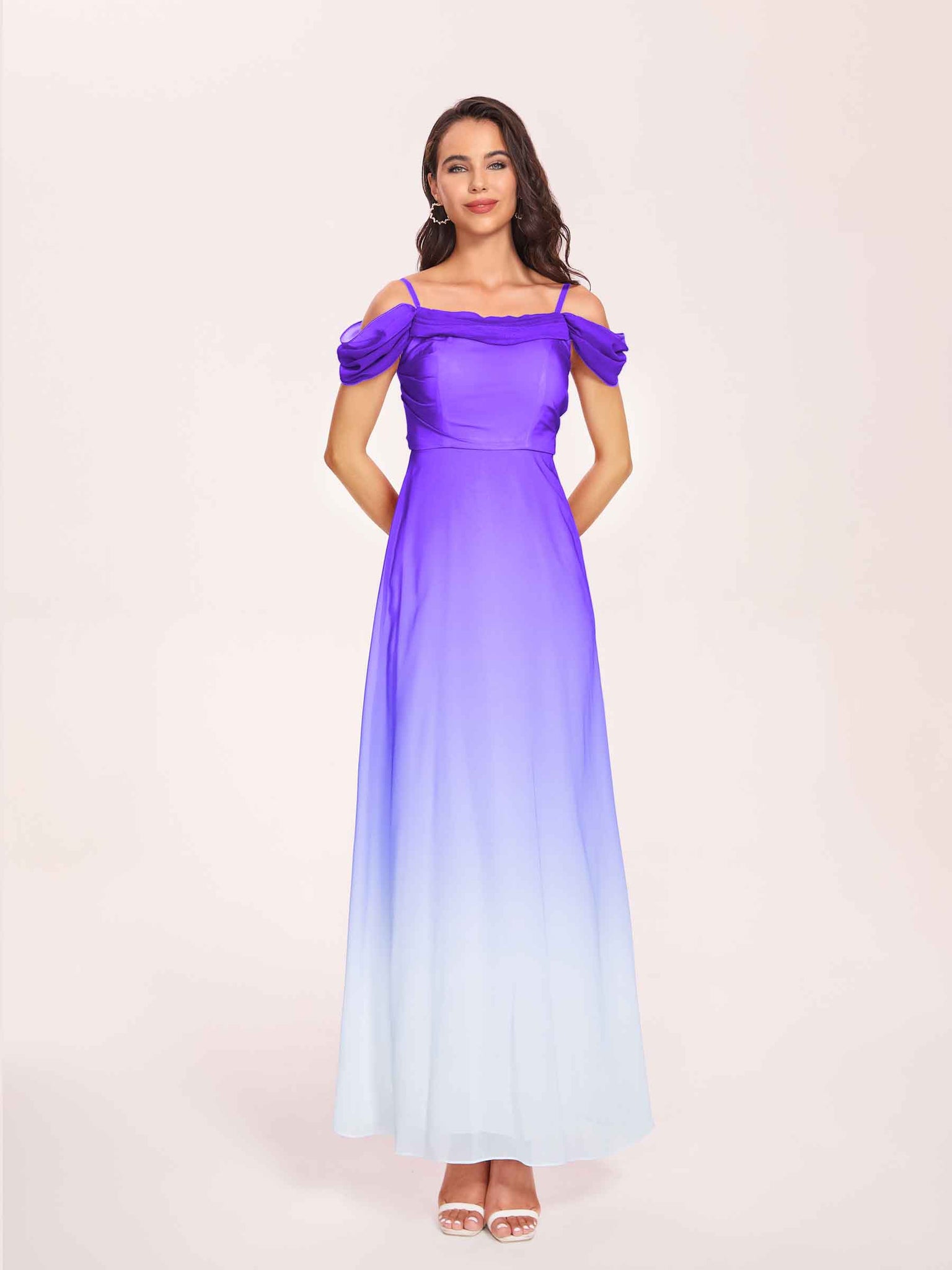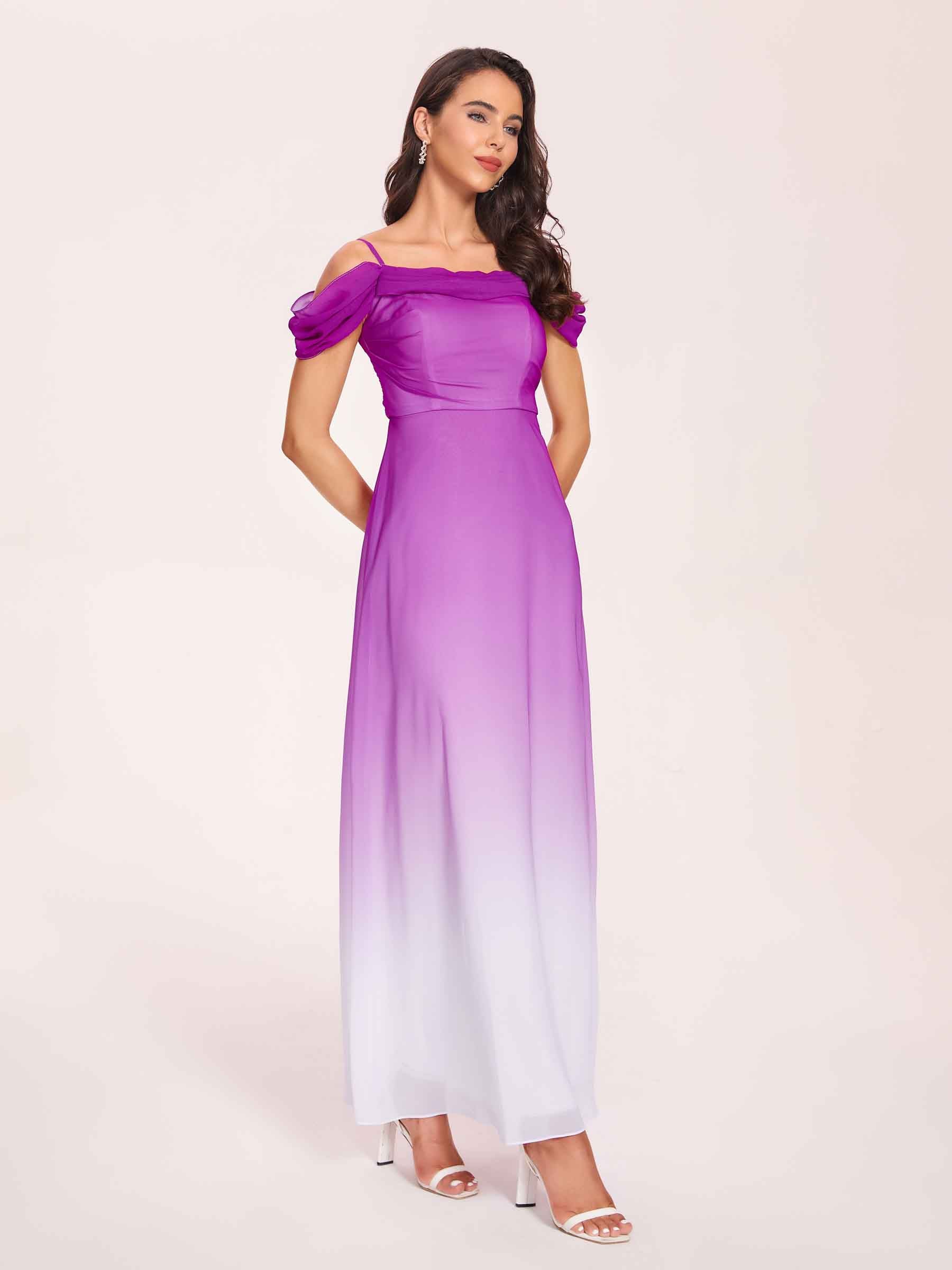 Elegant Cold Shoulder A-line Chiffon Long Ombre Bridesmaid Dresses Onlines - ChicSew – ChicSew