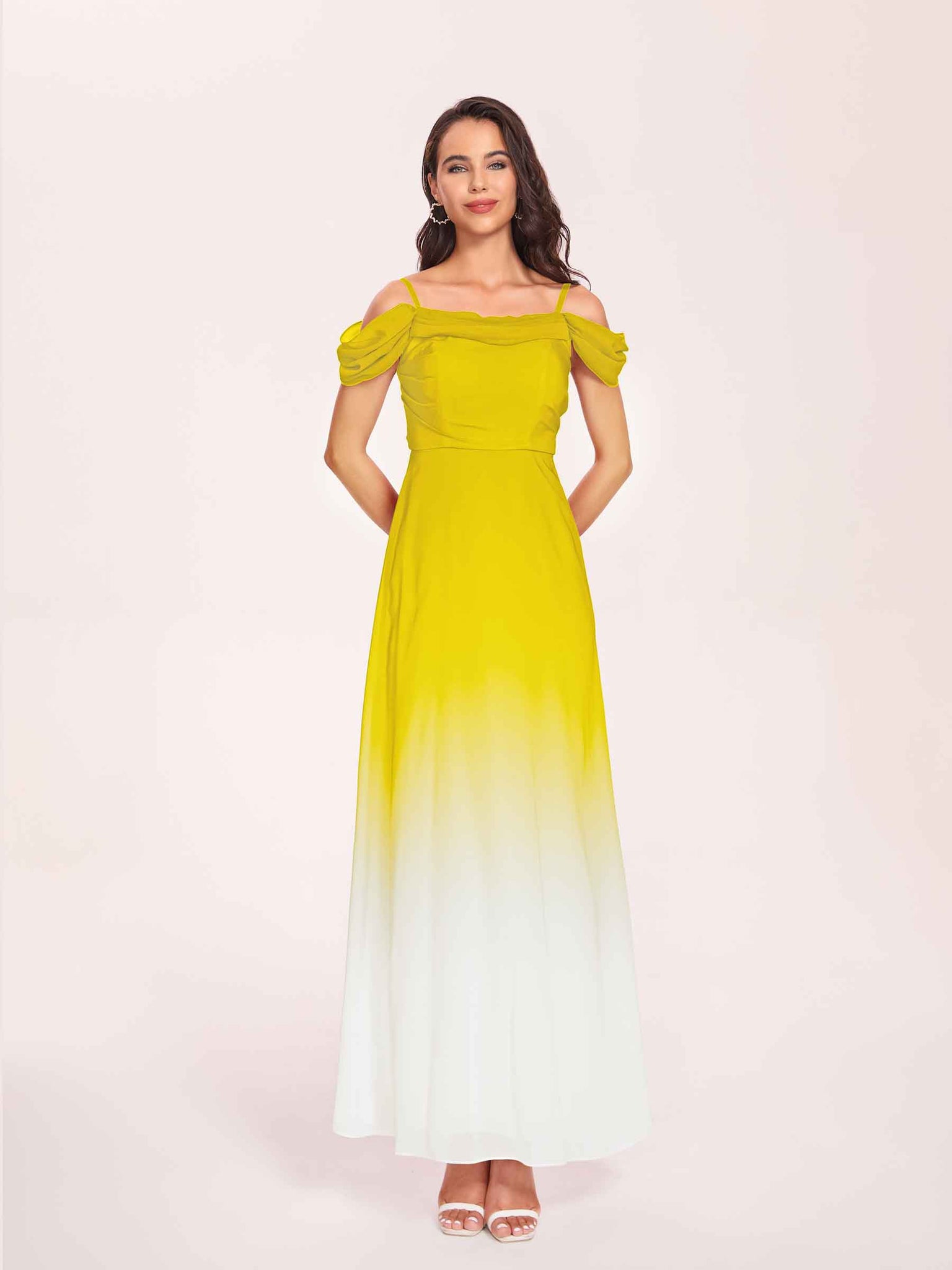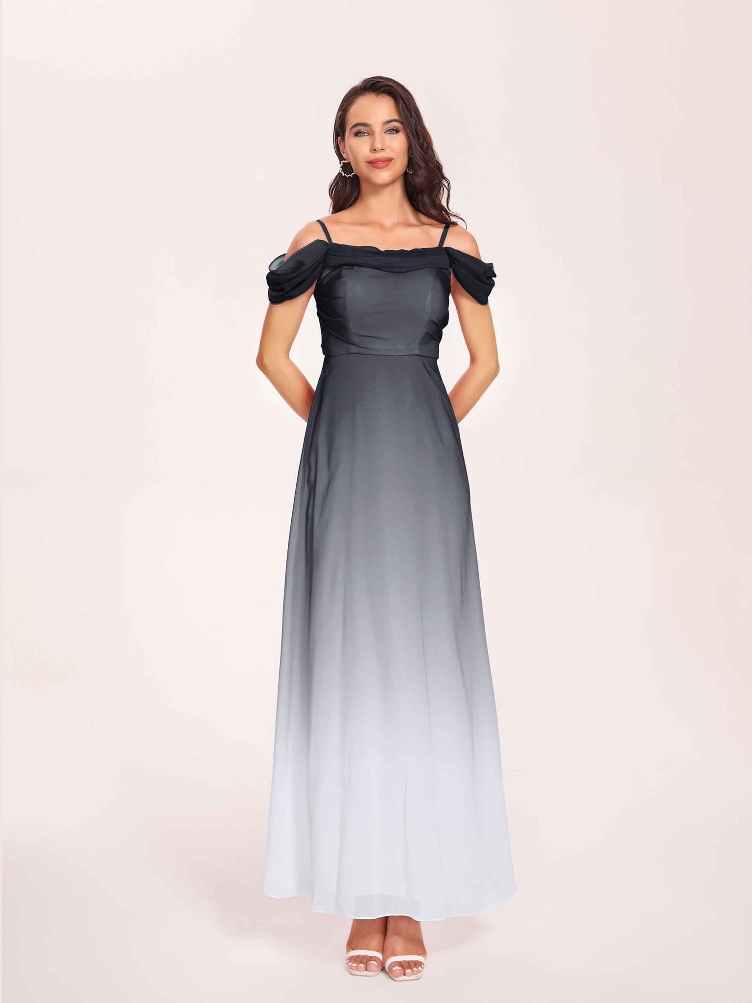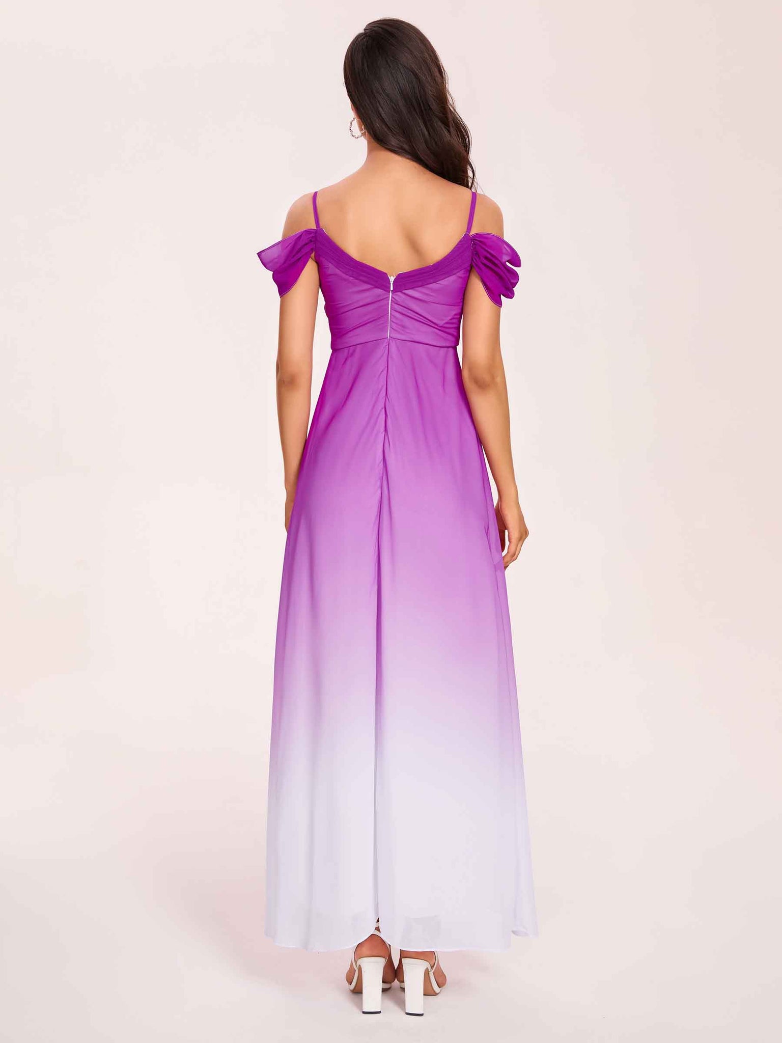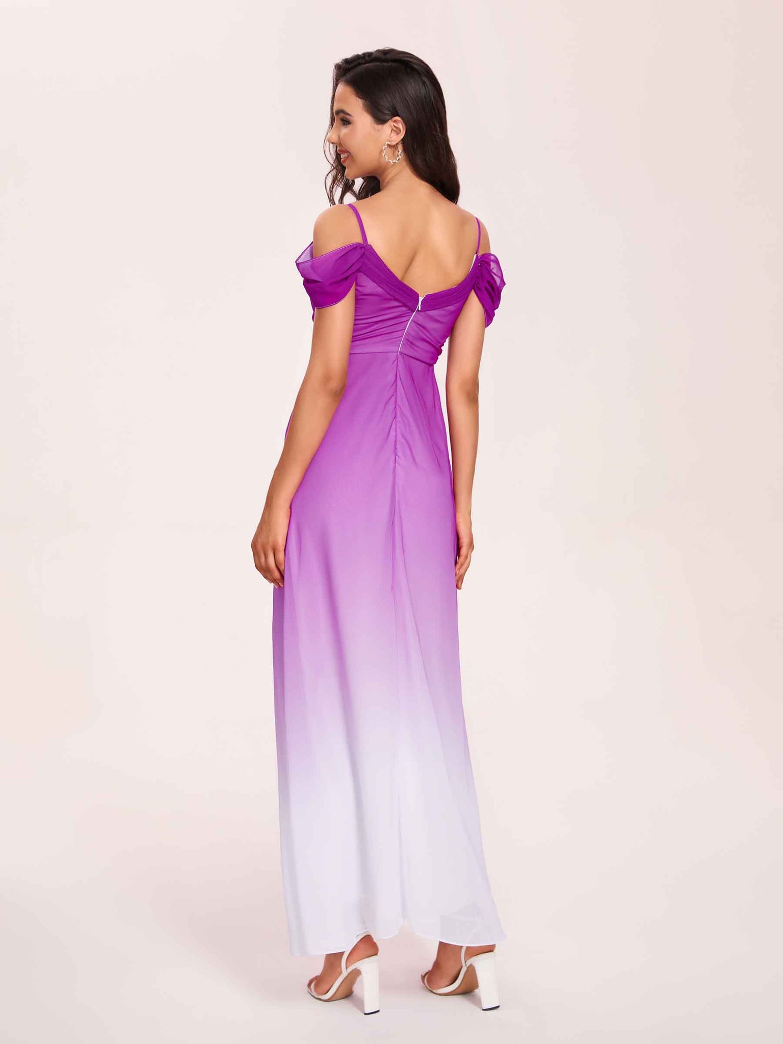 Elegant Cold Shoulder A-line Chiffon Long Ombre Bridesmaid Dresses Onlines - ChicSew – ChicSew