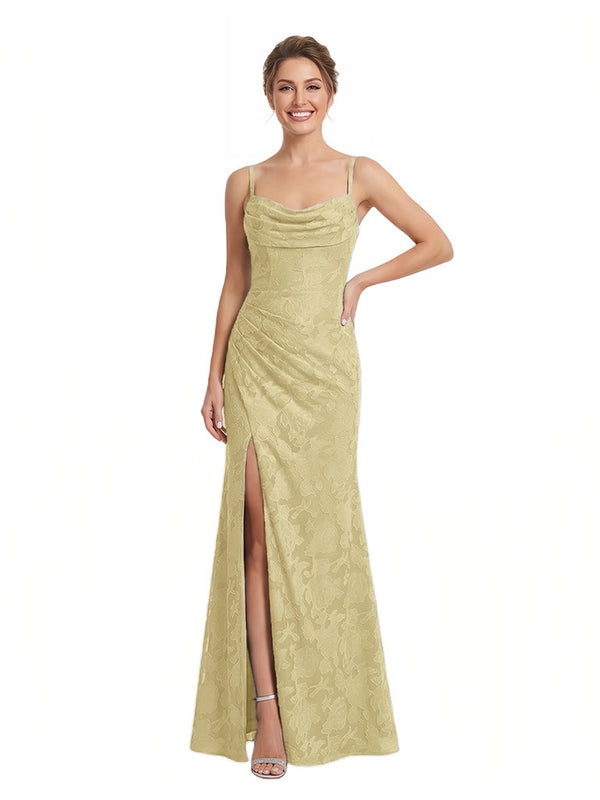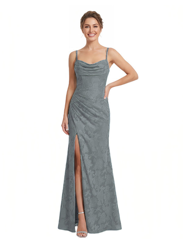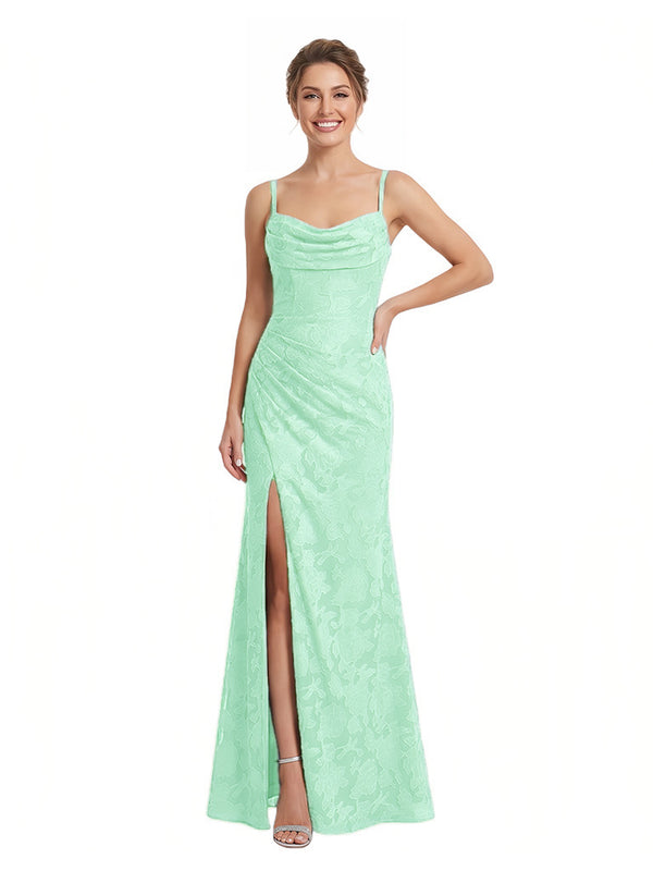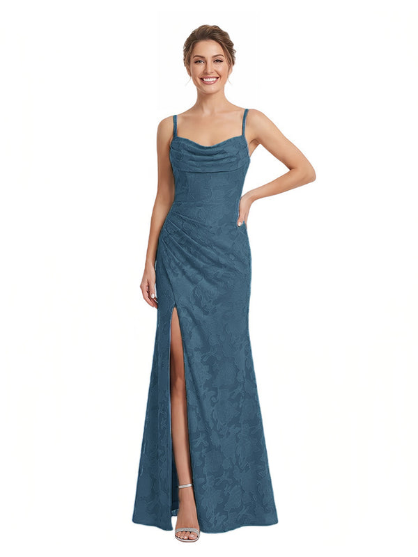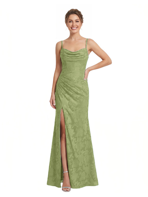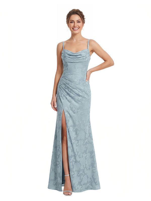 Elegant Cowl Spaghetti Straps Side Slit Floral Burnout Chiffon Mermaid Formal Evening Dresses $139.99