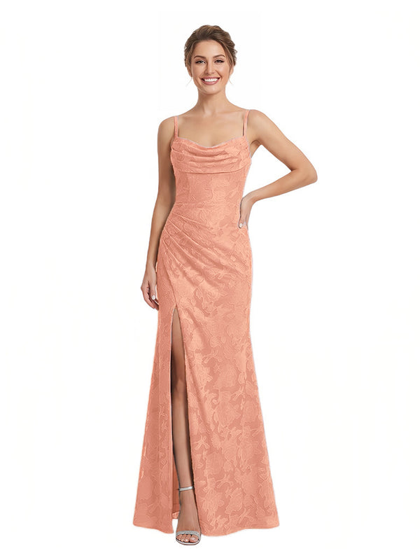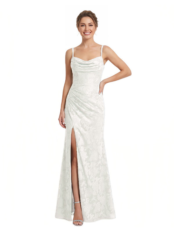 Elegant Cowl Spaghetti Straps Side Slit Floral Burnout Chiffon Mermaid Formal Evening Dresses - ChicSew – ChicSew