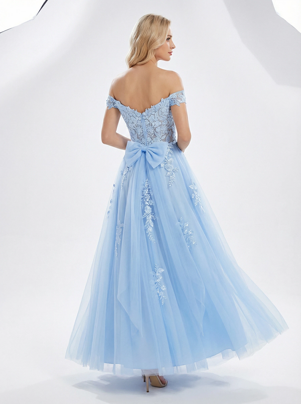 Elegant Floral Applique V-neck A-line Tulle Prom Dress - ChicSew – ChicSew