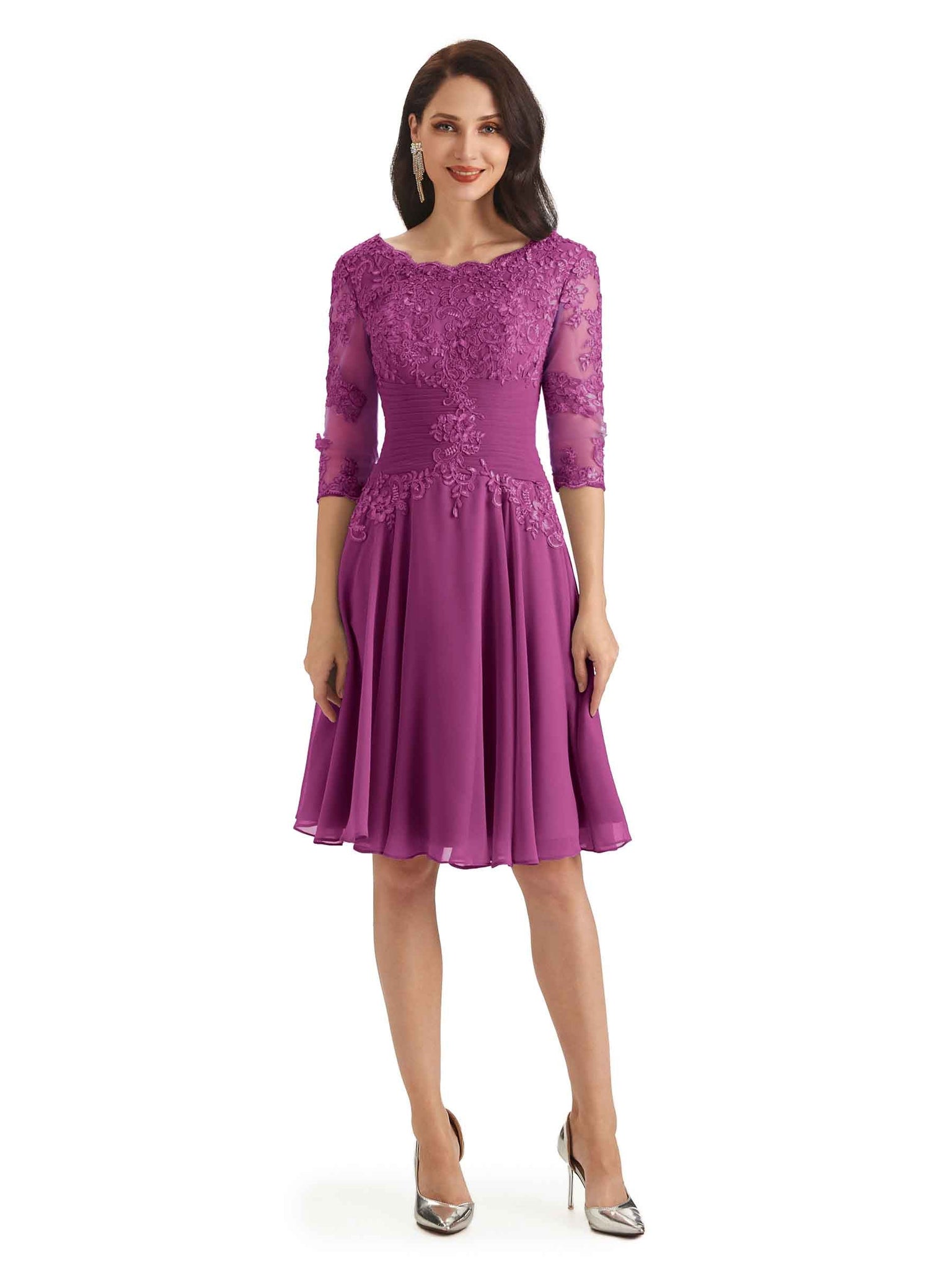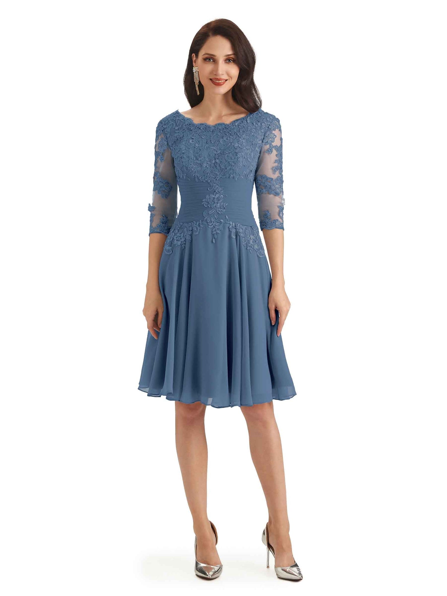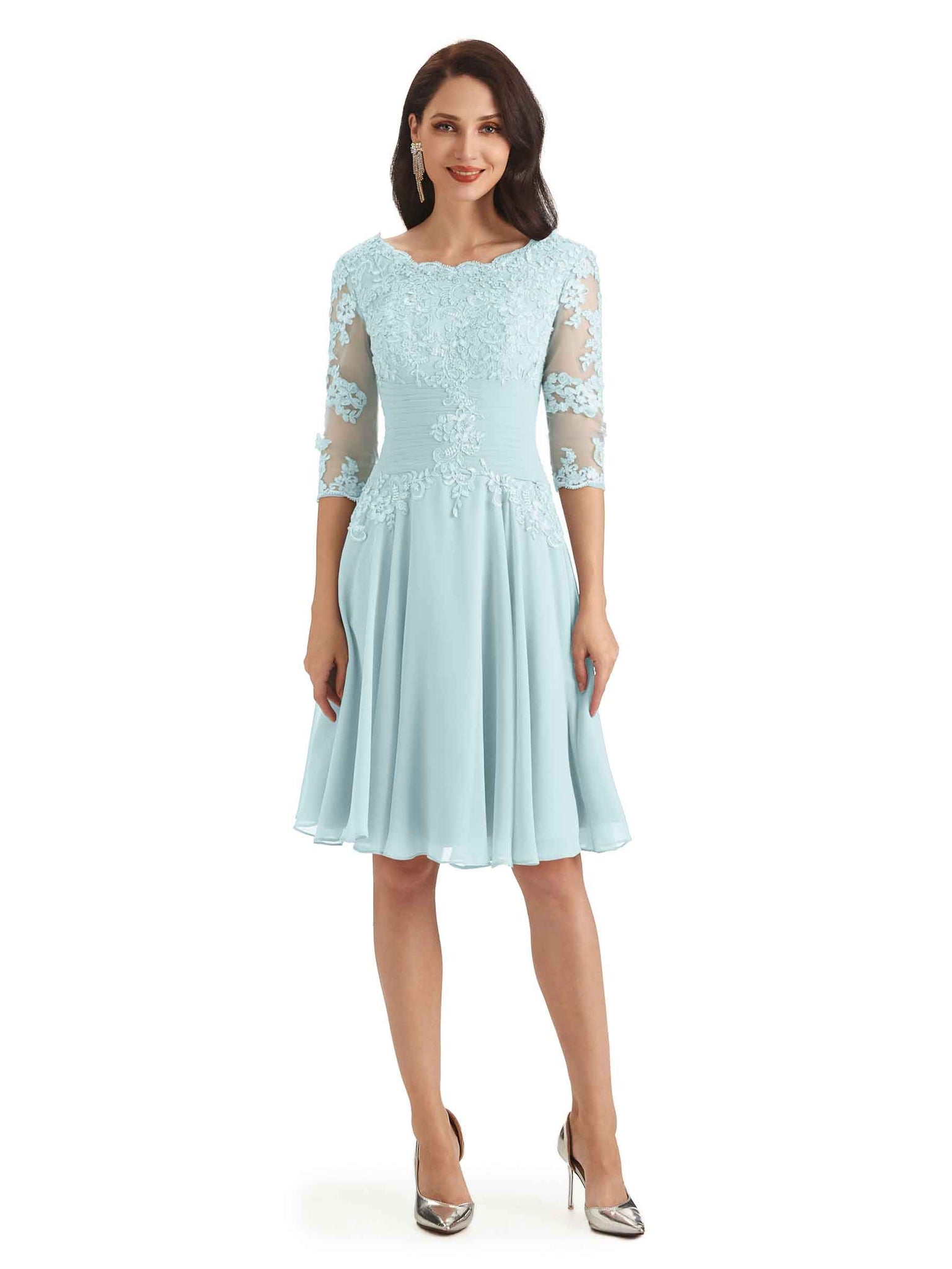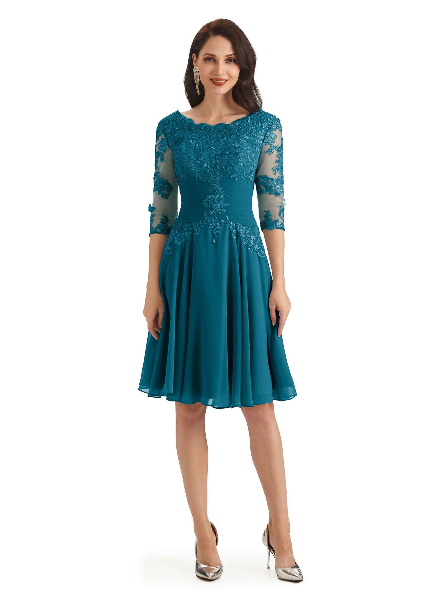 Elegant Jewel Lace Chiffon Half Sleeves Knee Length Mother Of The Bride Dresses - ChicSew – ChicSew
