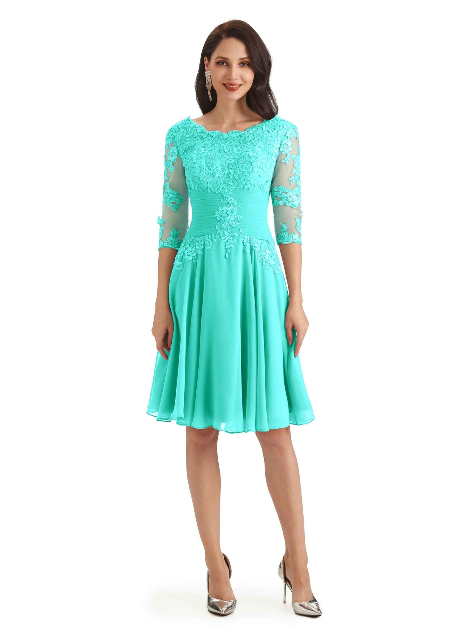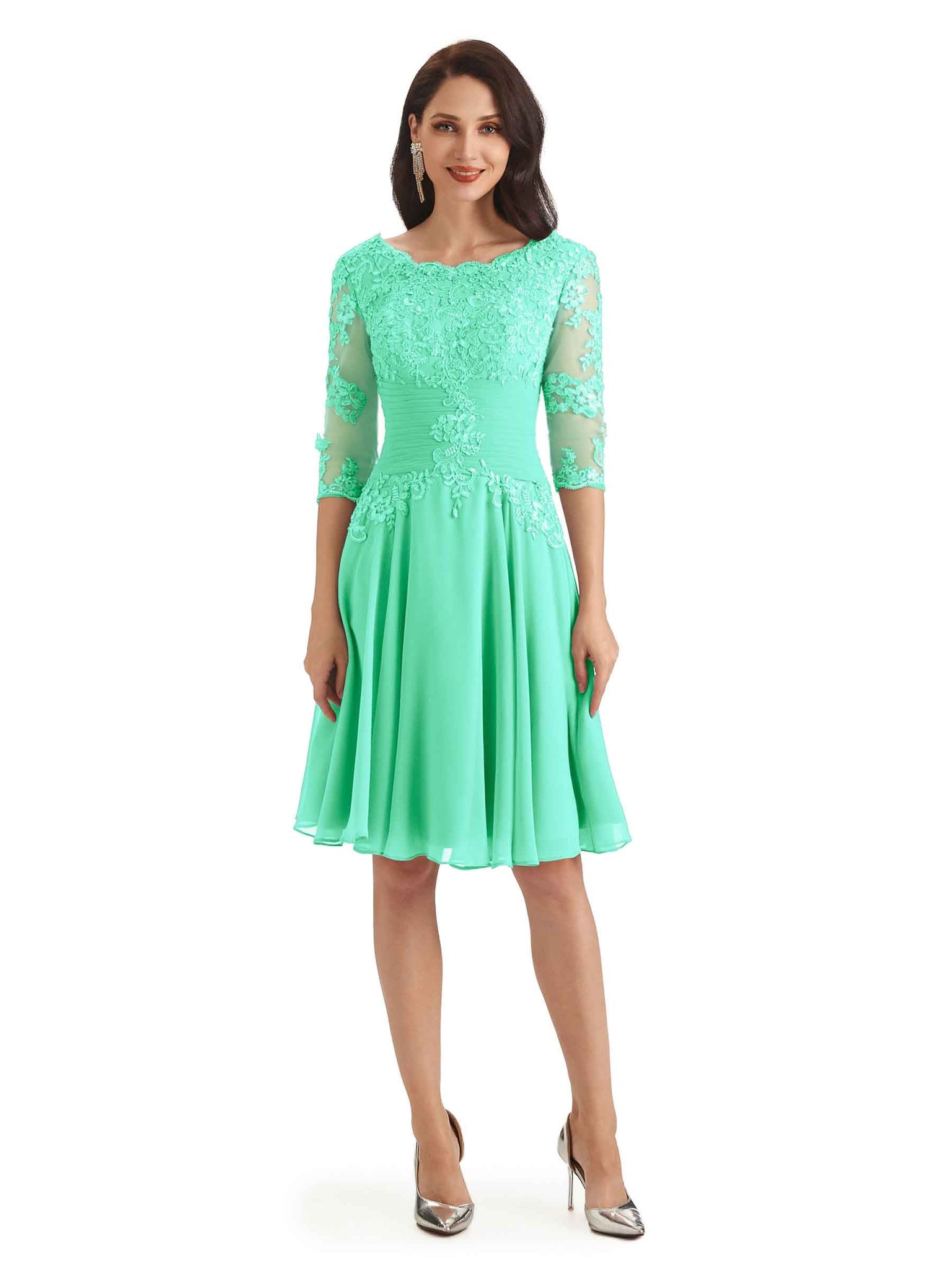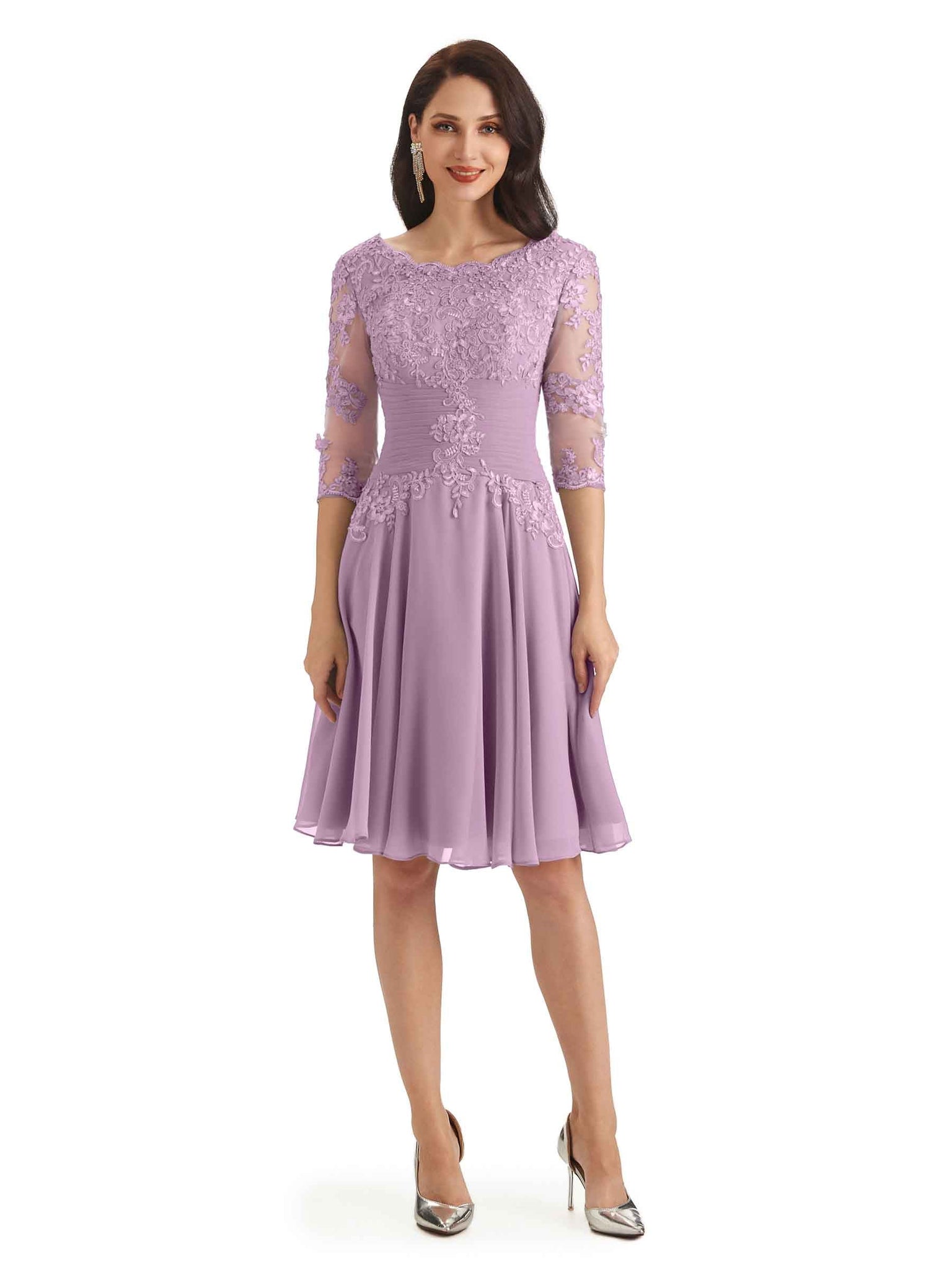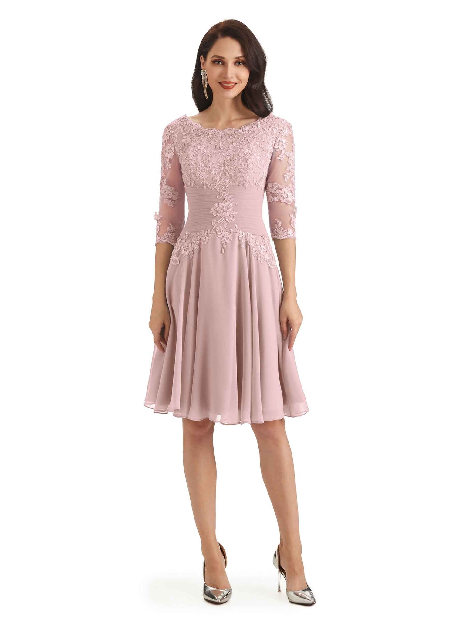Elegant Jewel Lace Chiffon Half Sleeves Knee Length Mother Of The Bride Dresses - ChicSew – ChicSew