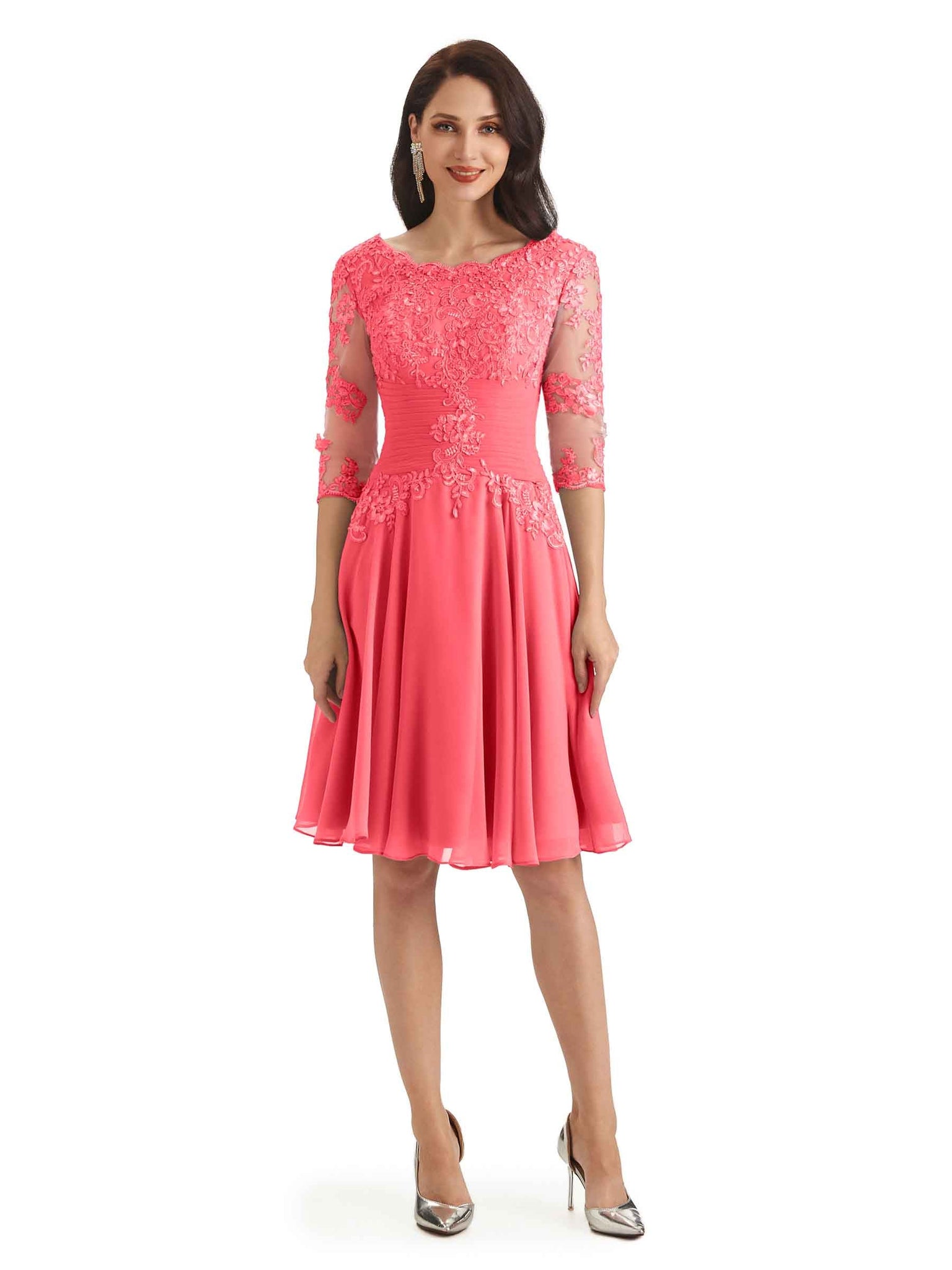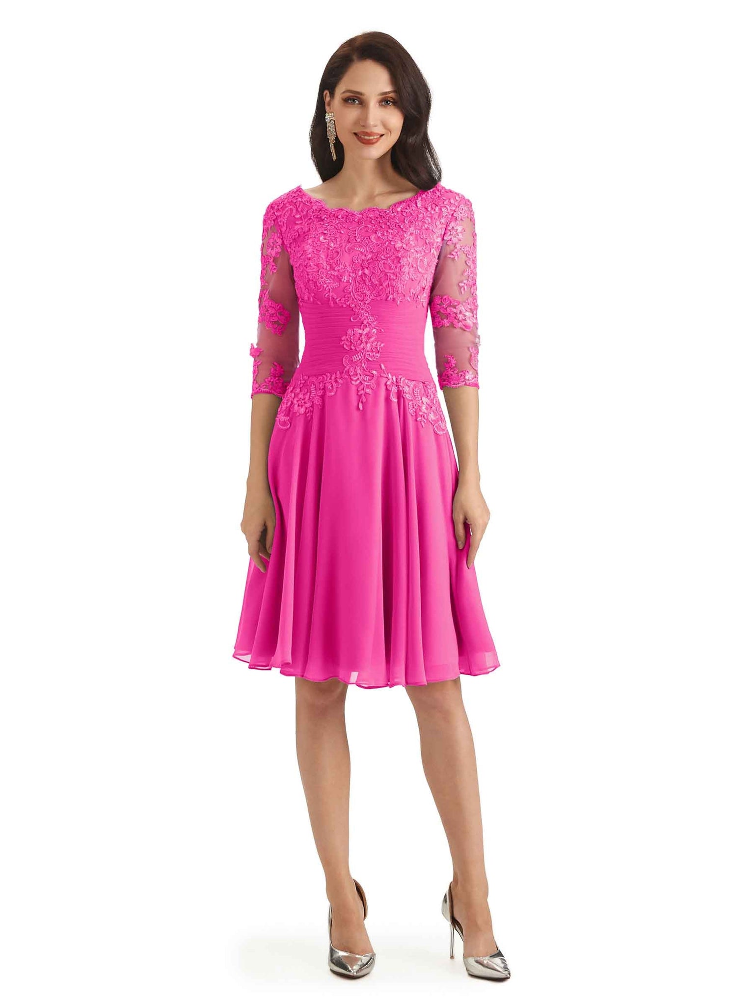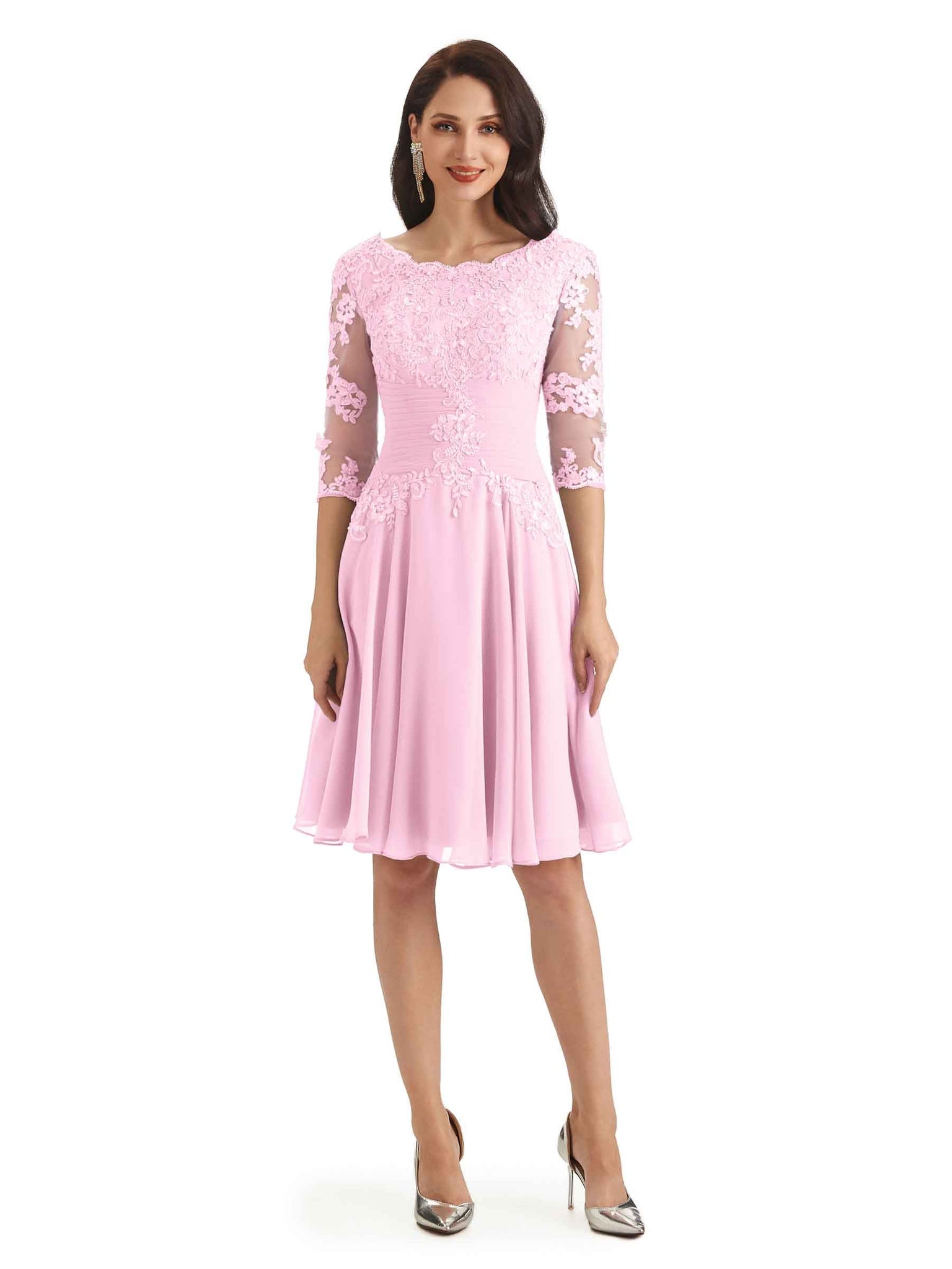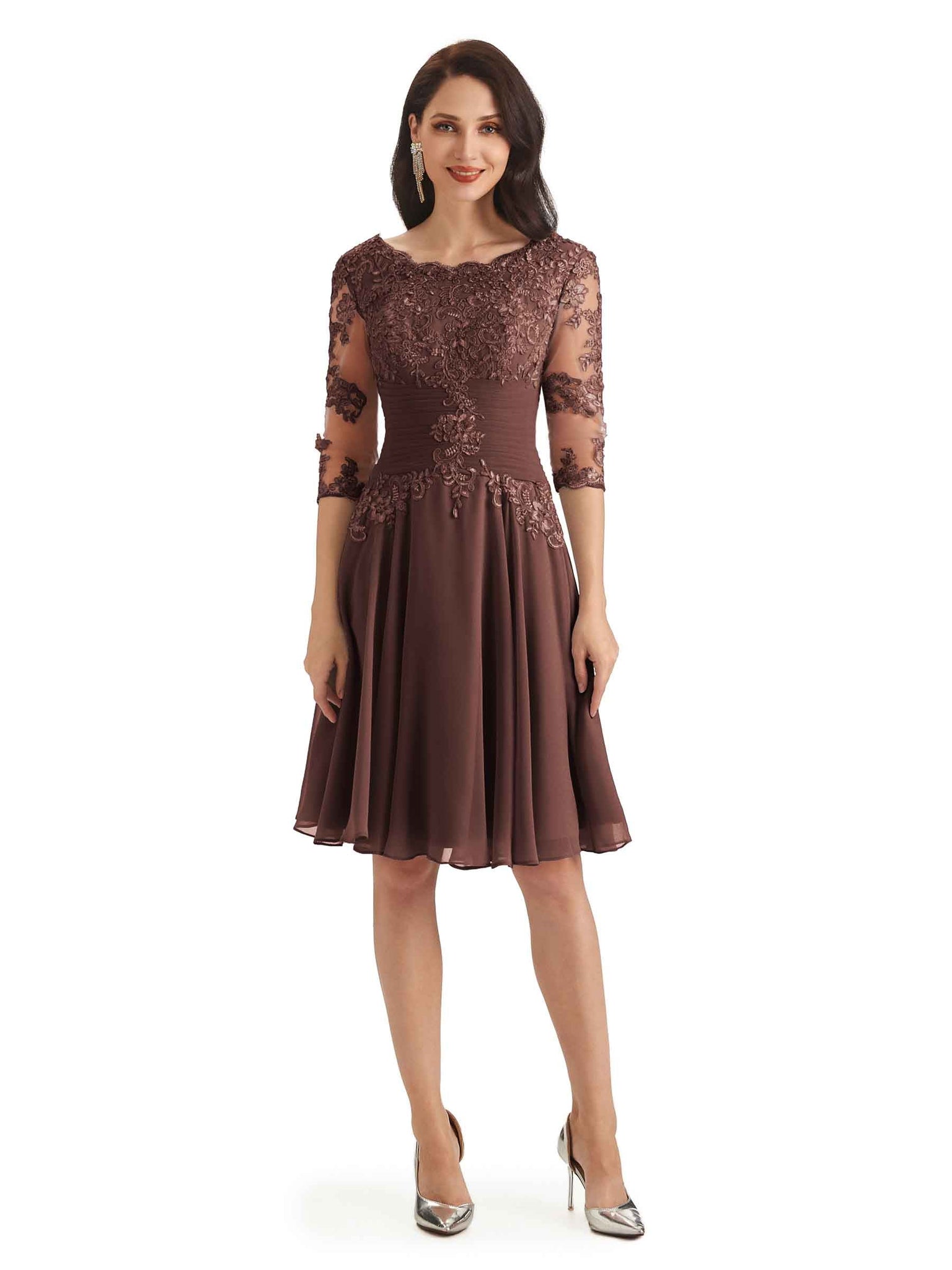 Elegant Jewel Lace Chiffon Half Sleeves Knee Length Mother Of The Bride Dresses - ChicSew – ChicSew