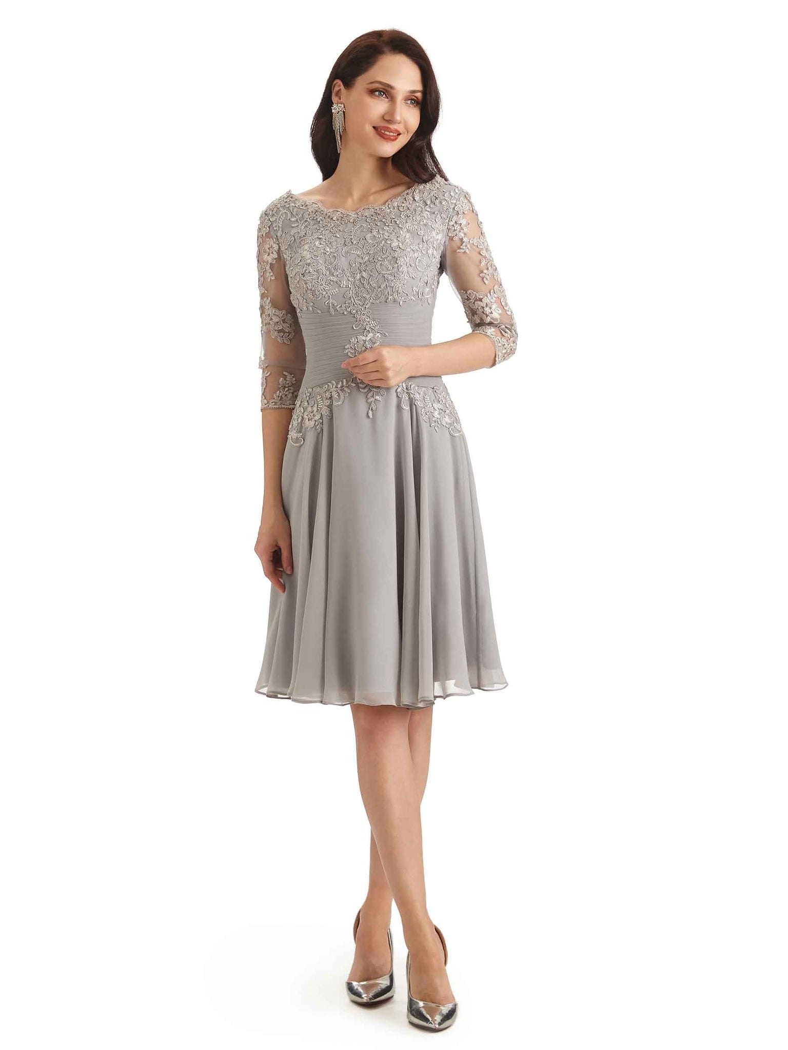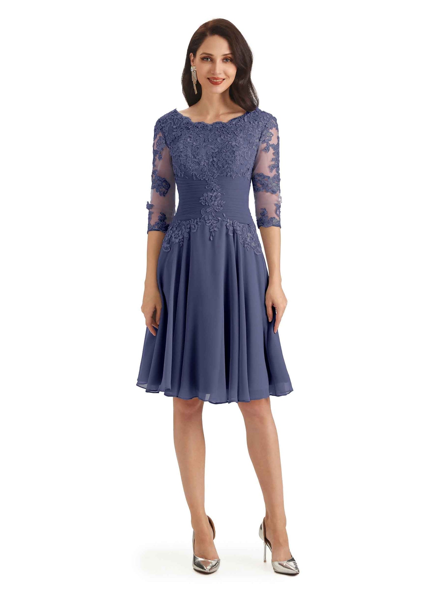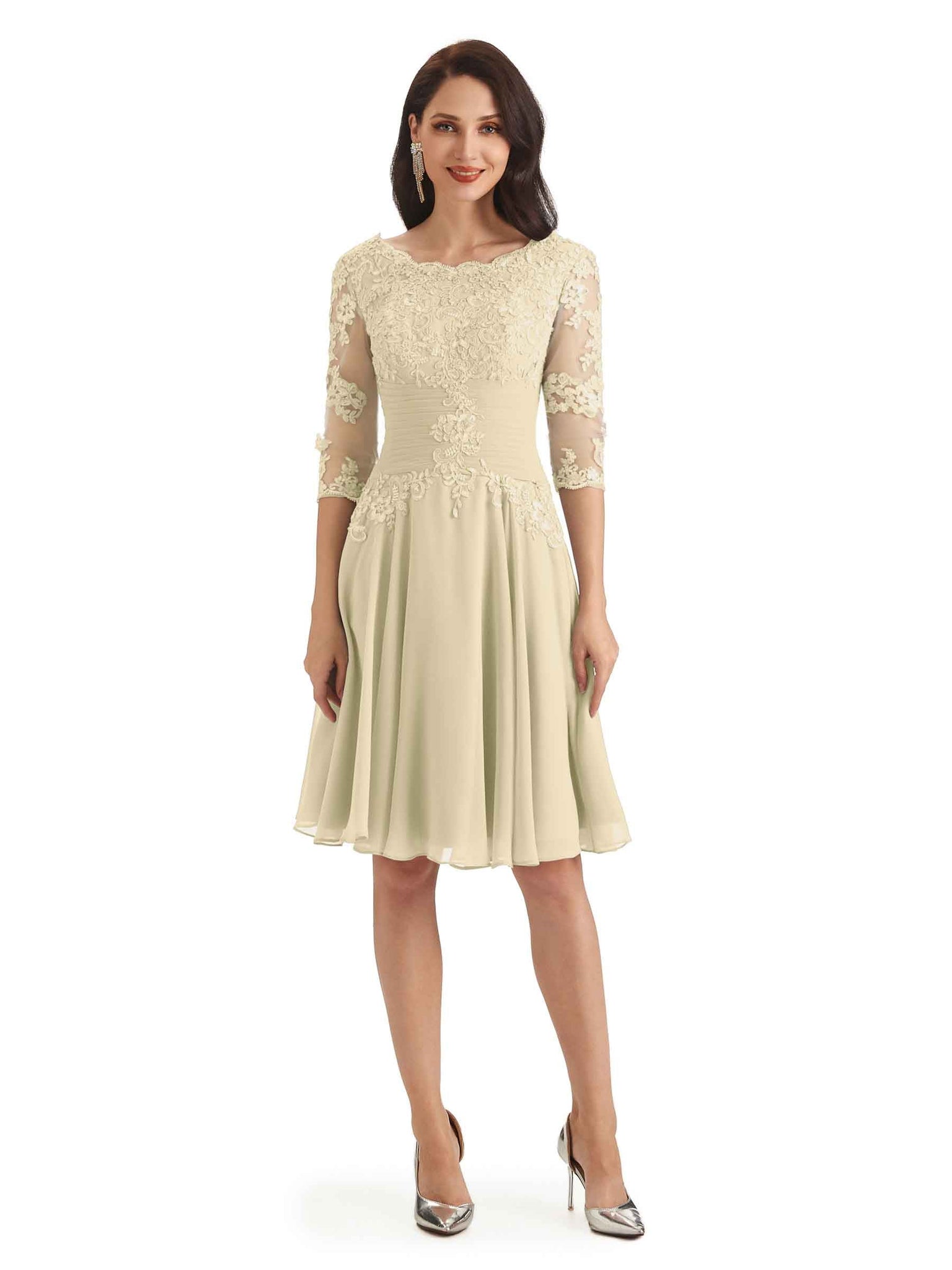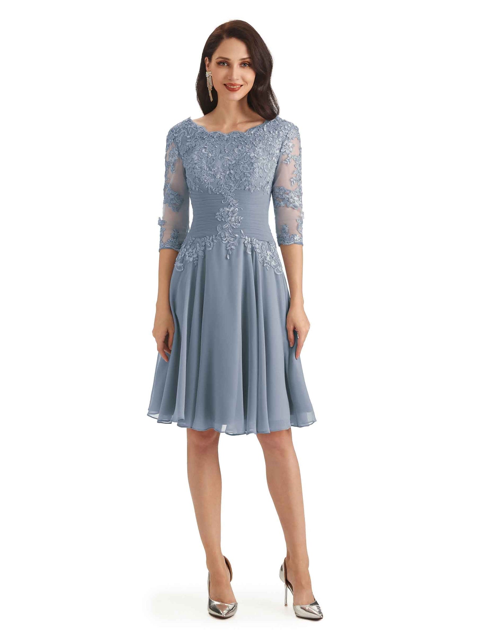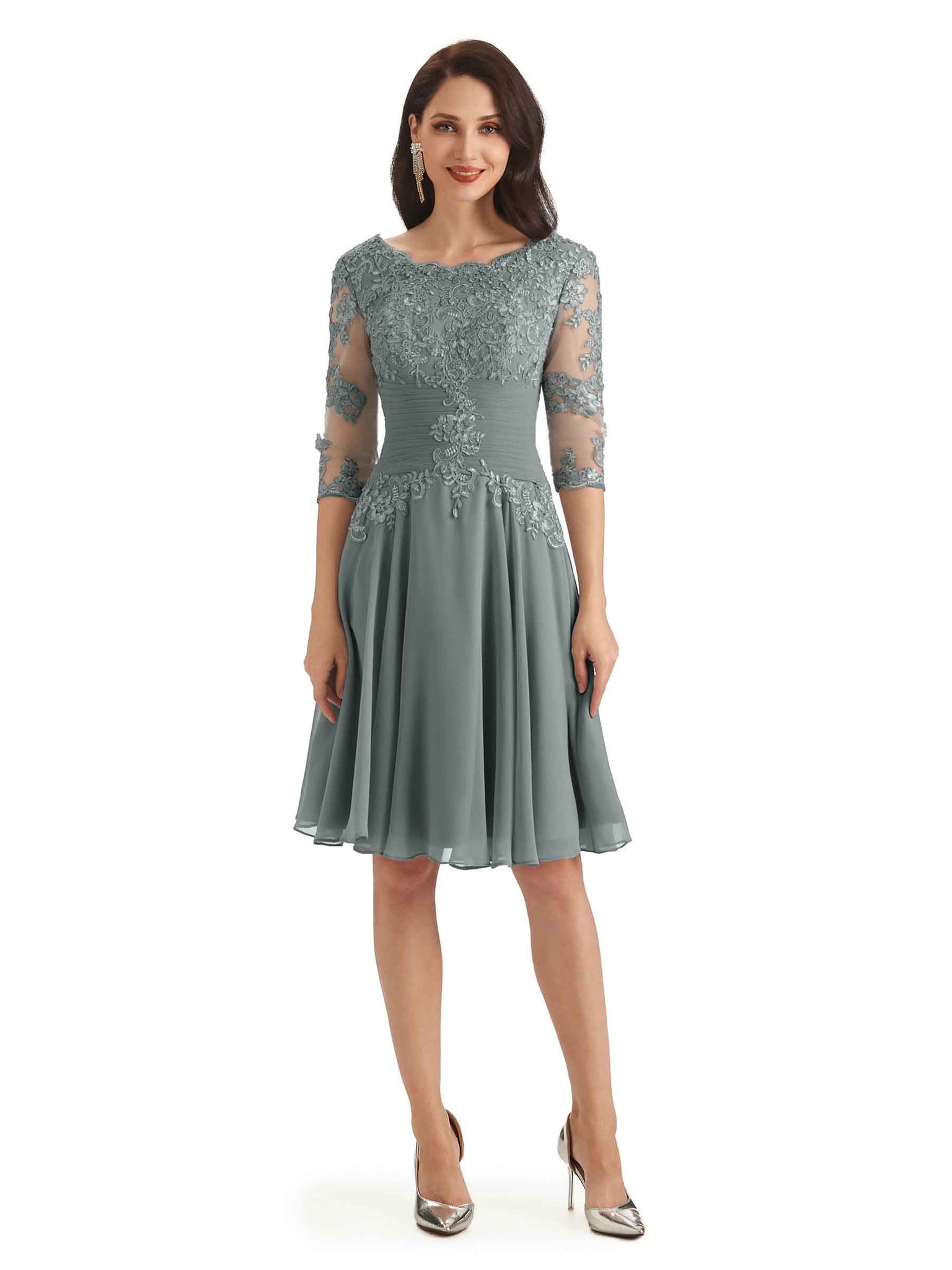 Elegant Scoop Lace Chiffon Half Sleeves Knee Length Short Mother Of The Bride Dresses