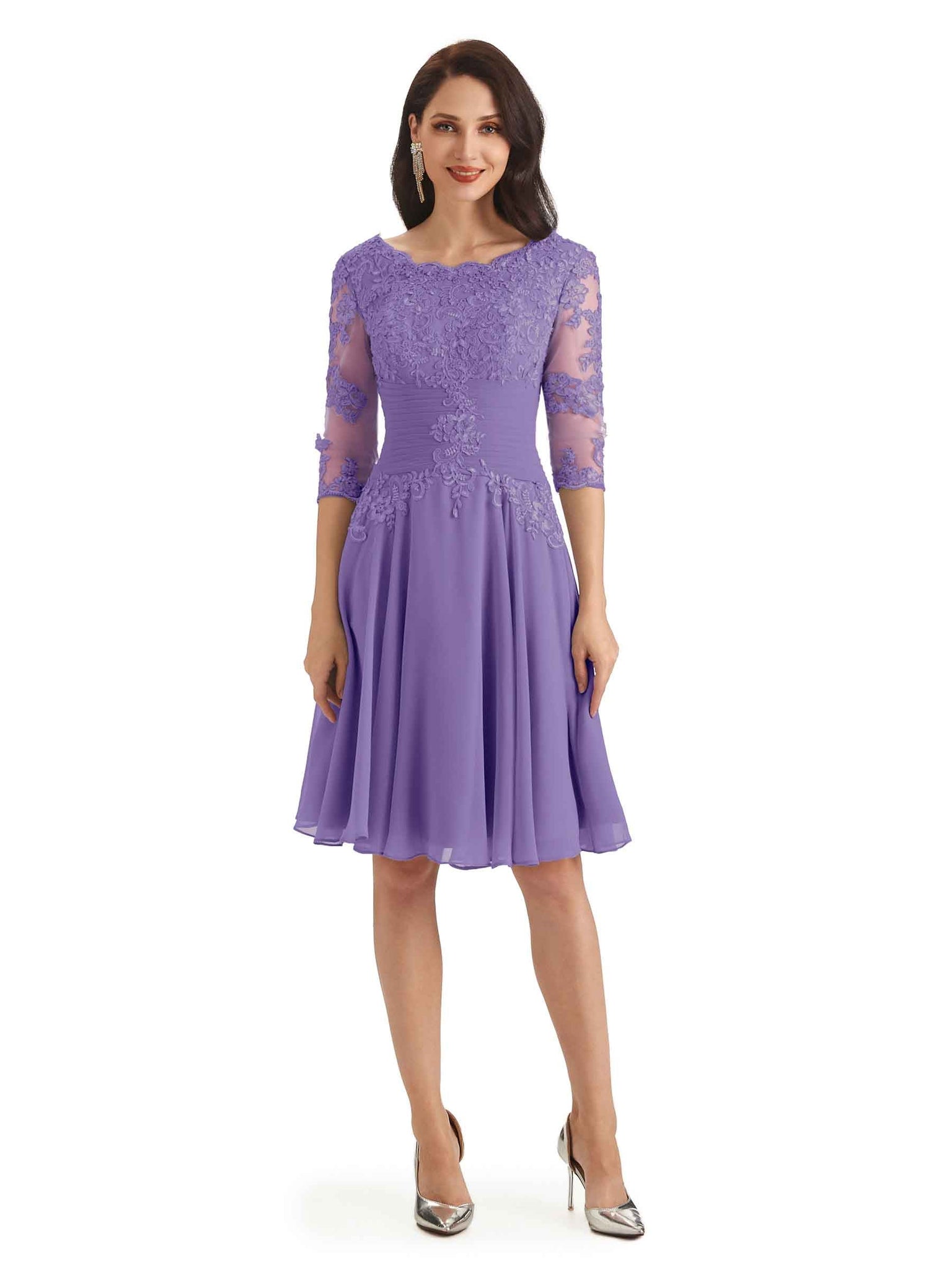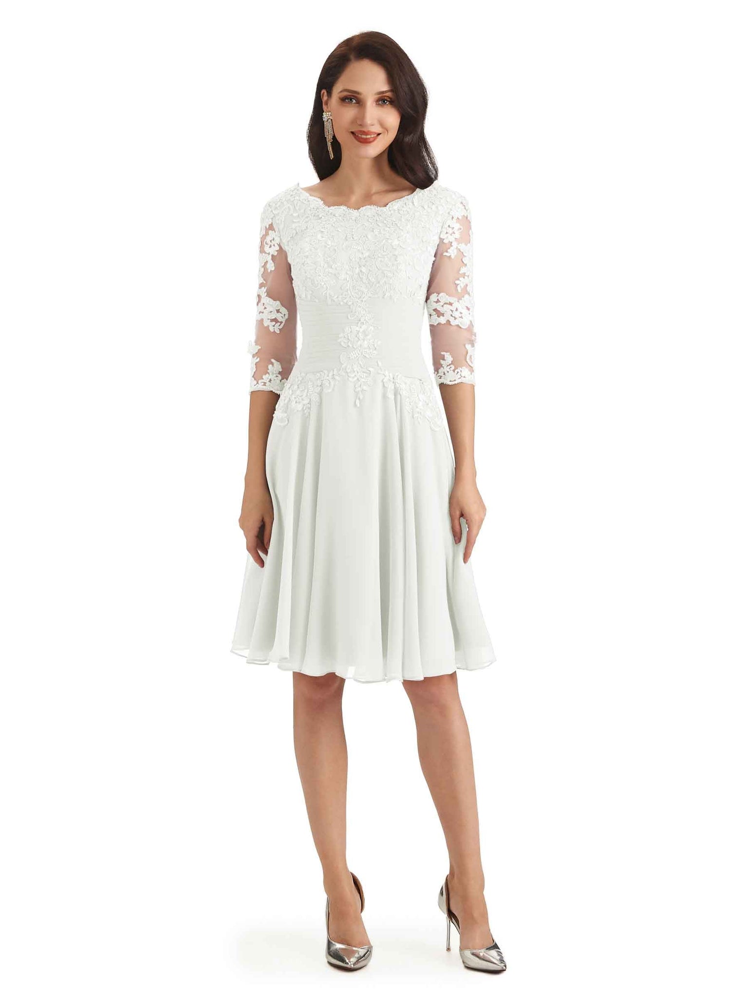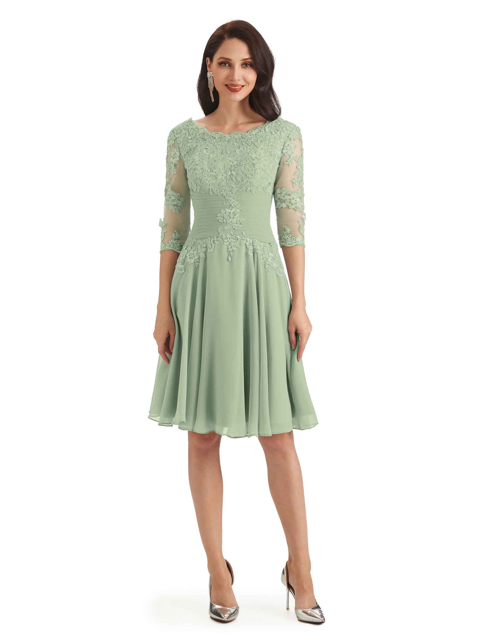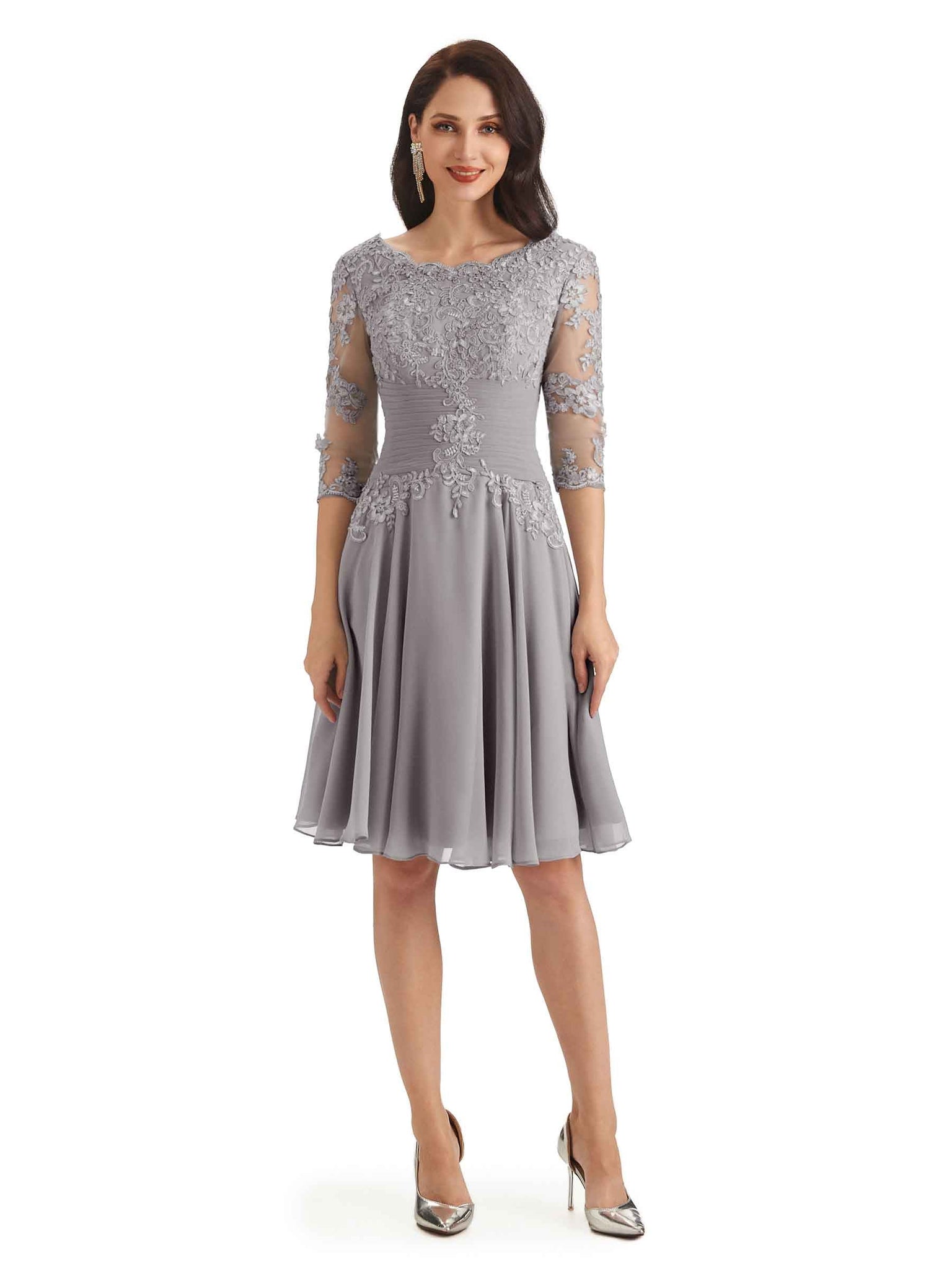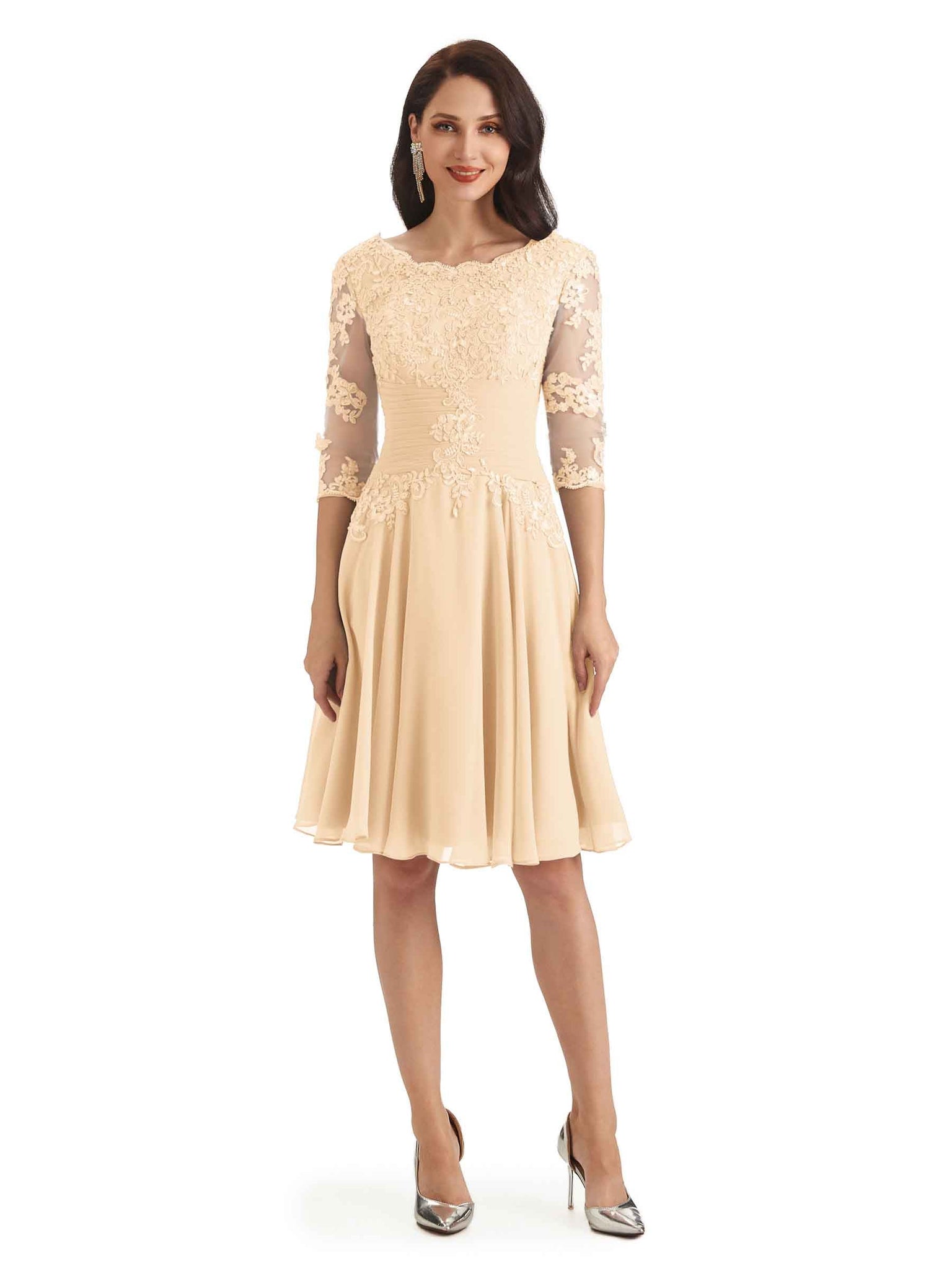 Elegant Scoop Lace Chiffon Half Sleeves Knee Length Short Mother Of The Bride Dresses