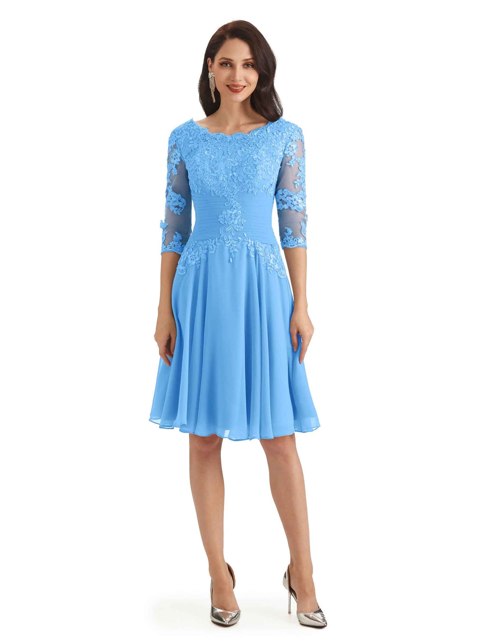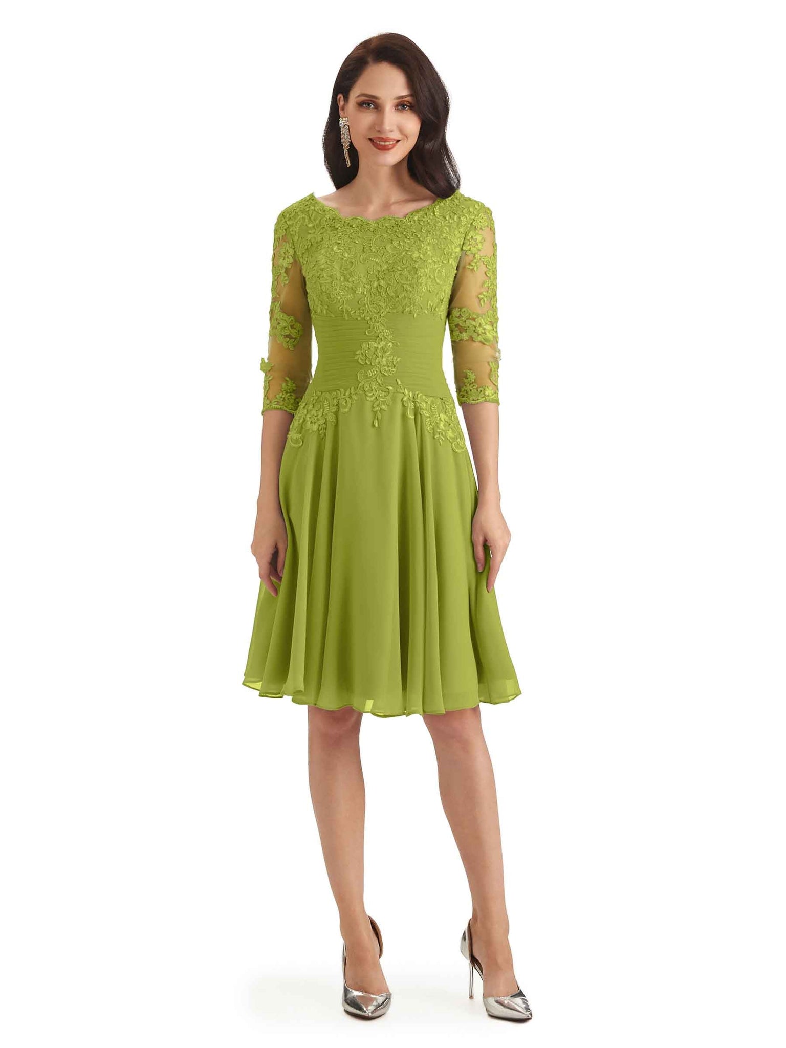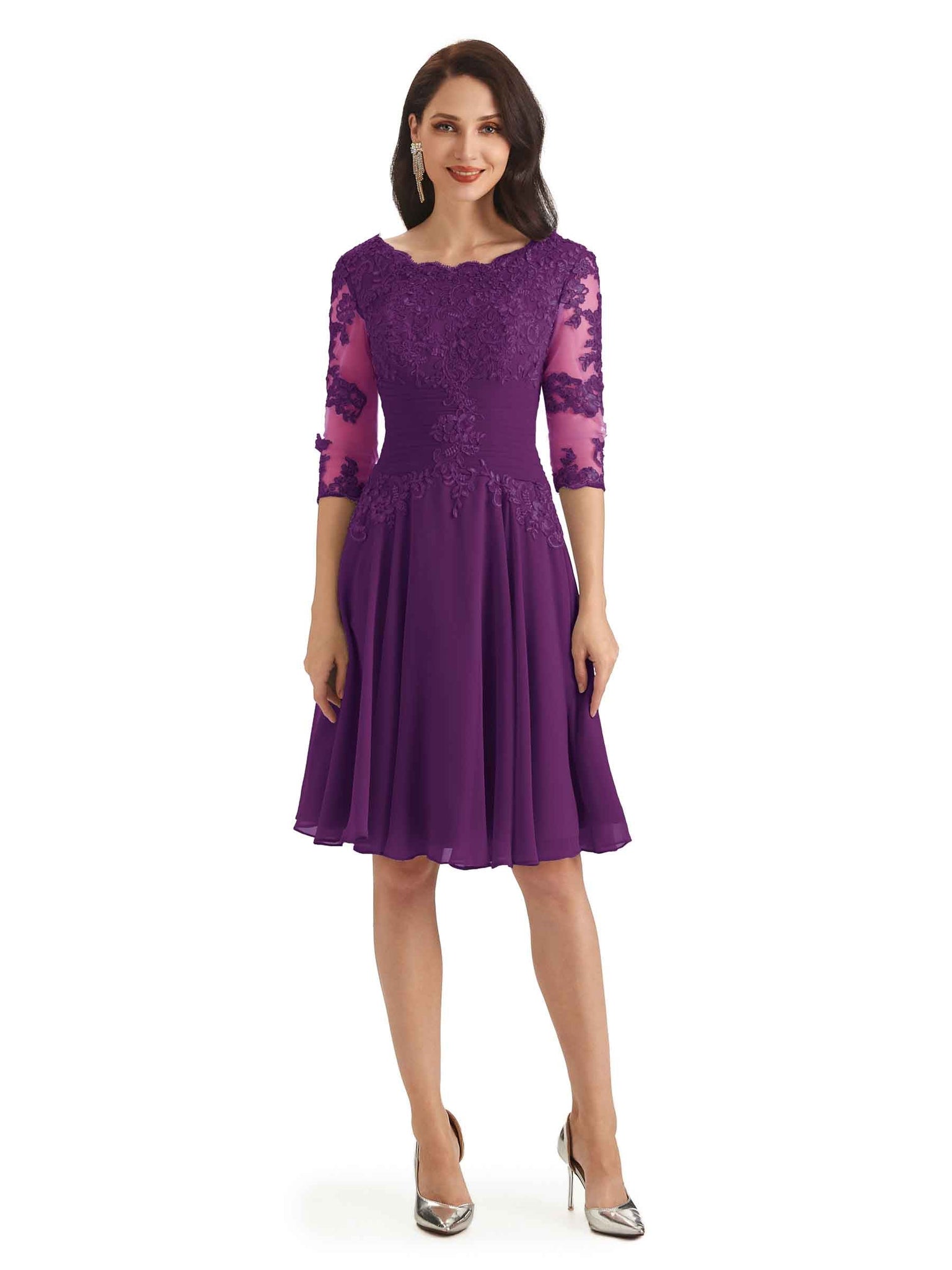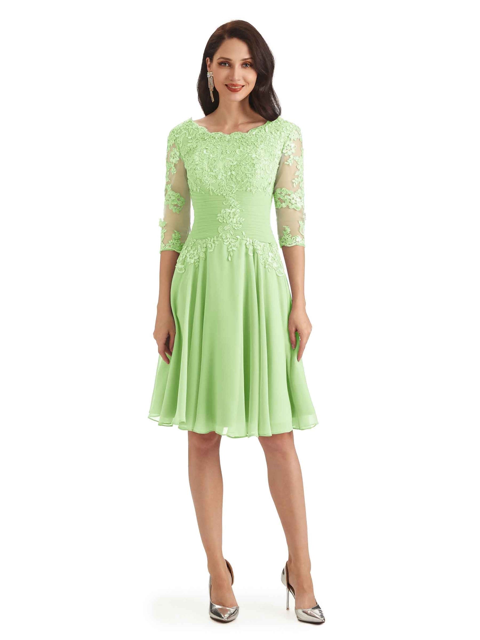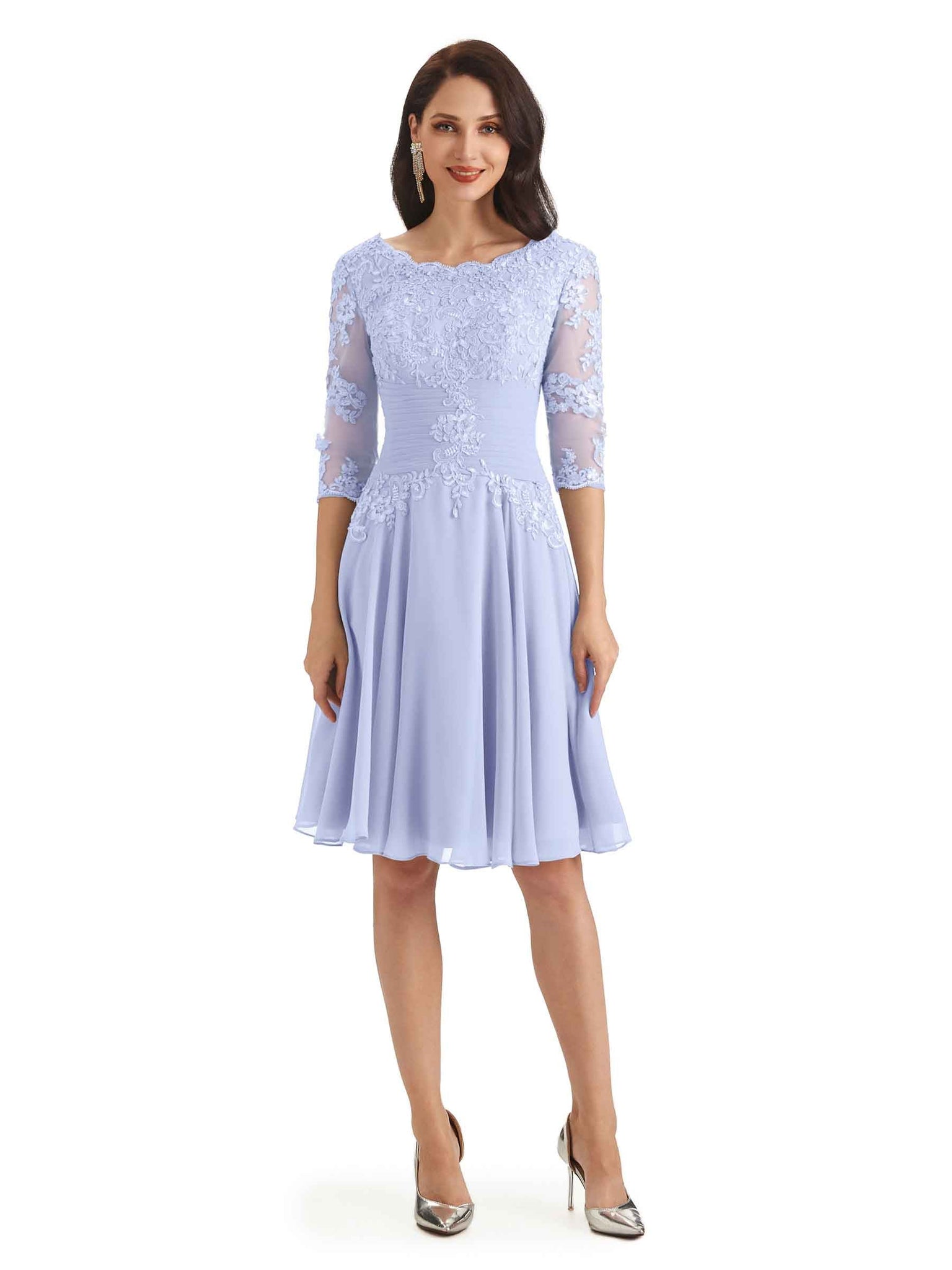 Elegant Scoop Lace Chiffon Half Sleeves Knee Length Short Mother Of The Bride Dresses