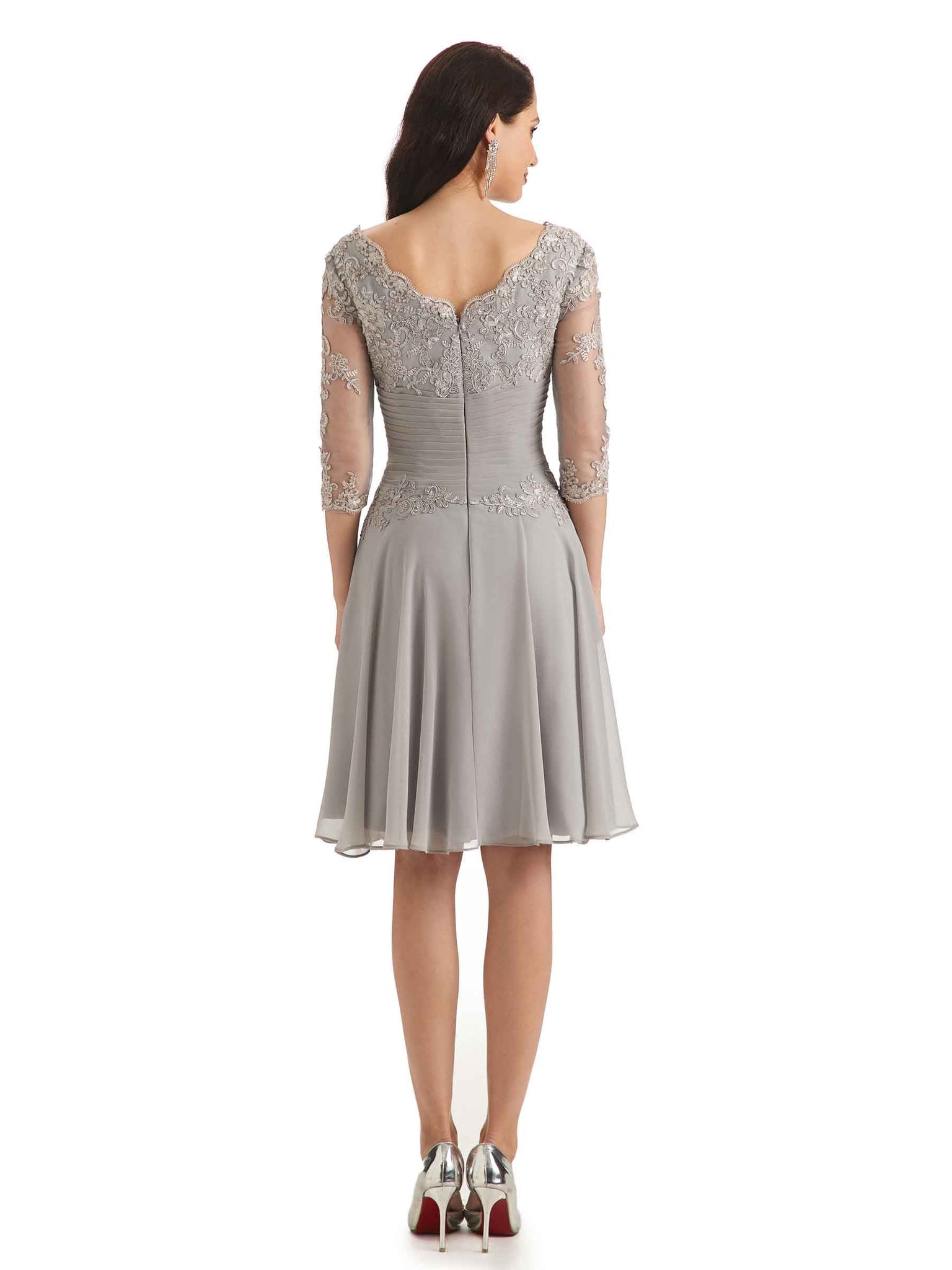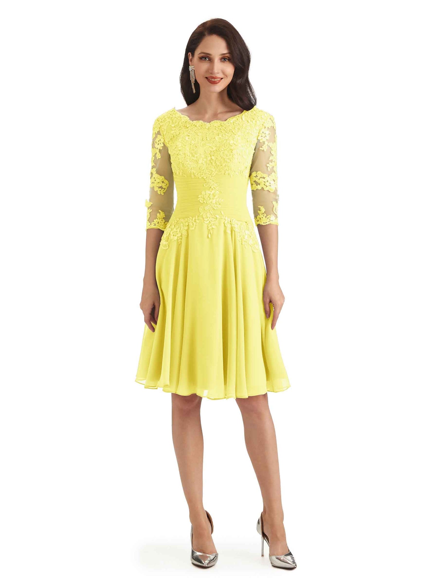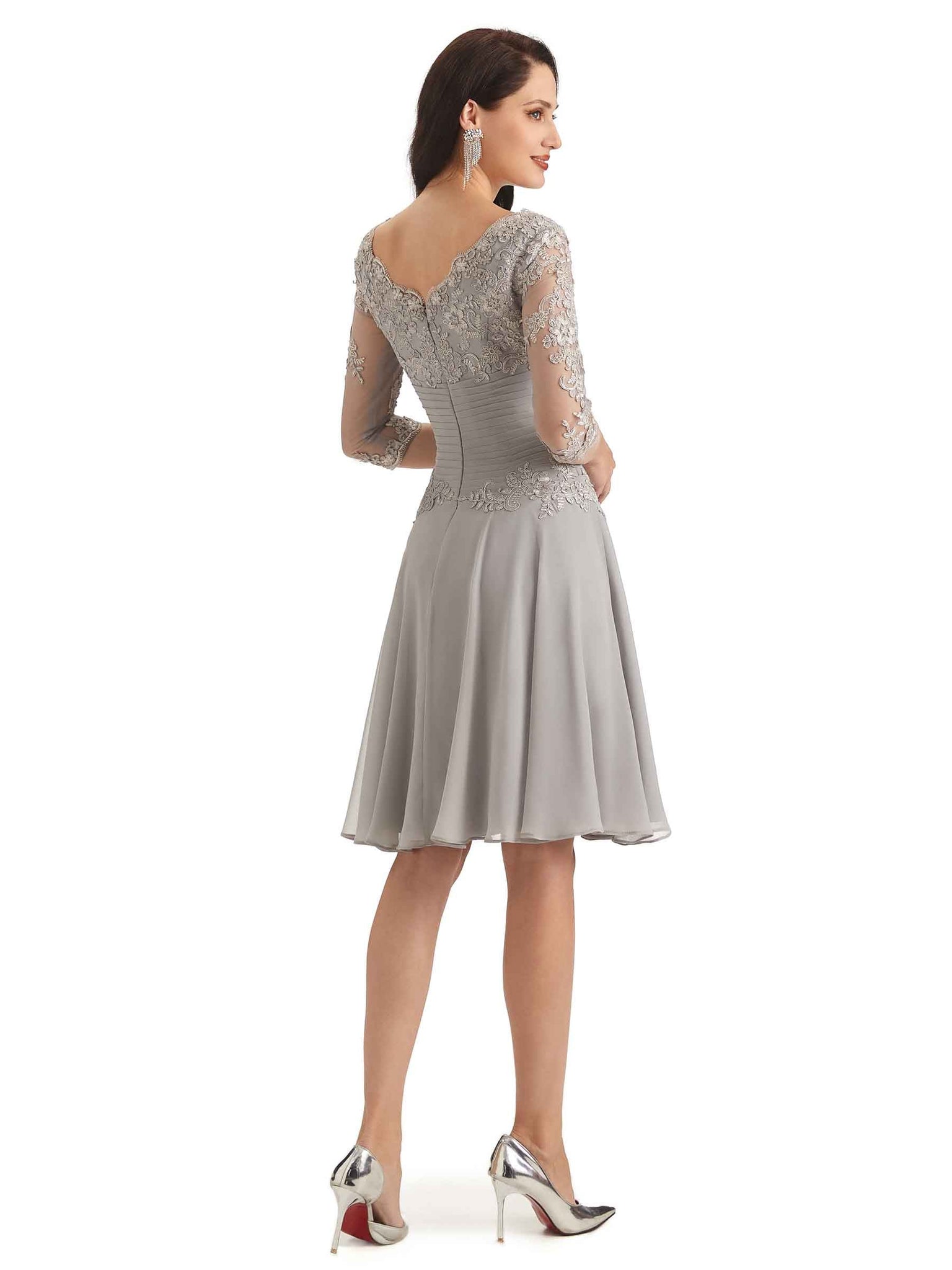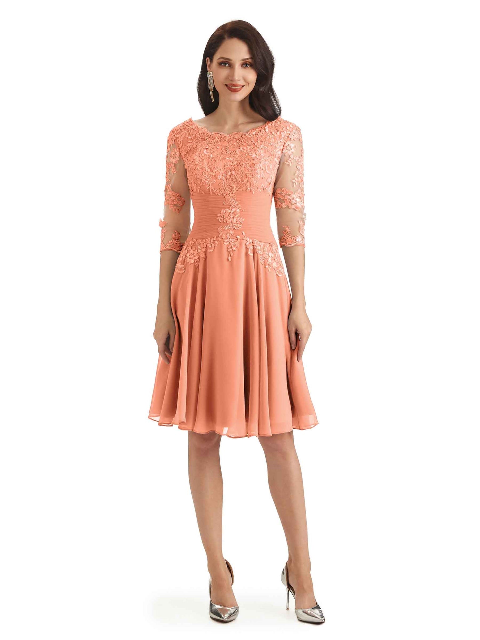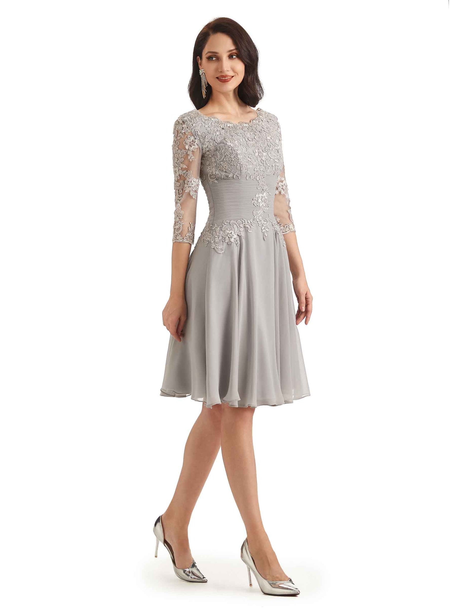Elegant Scoop Lace Chiffon Half Sleeves Knee Length Short Mother Of The Bride Dresses