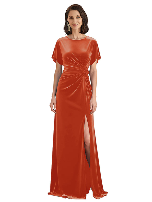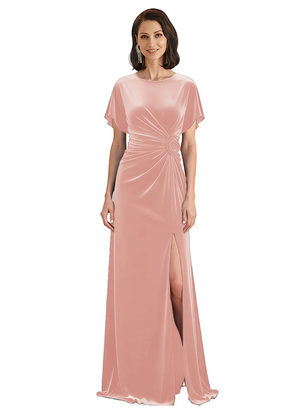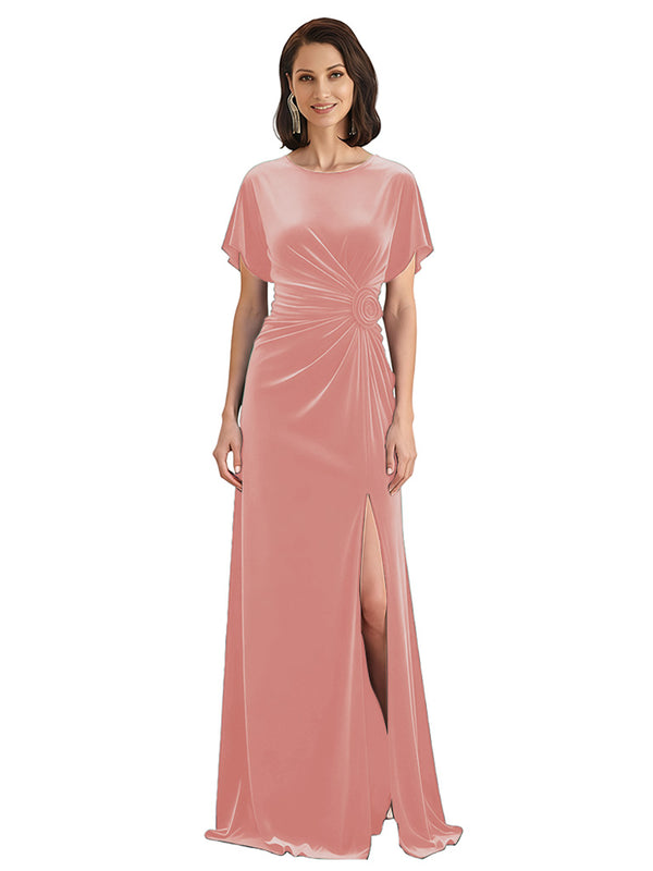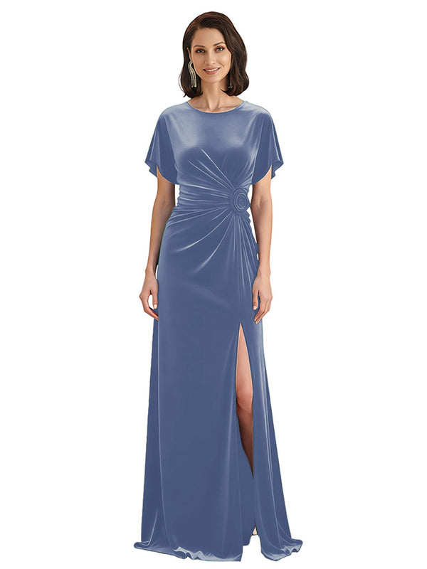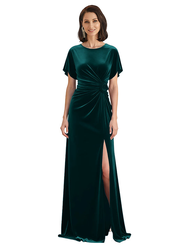 Elegant Jewel Short Sleeves Side Slit A-line Velvet Long Mother of The Dresses - ChicSew – ChicSew