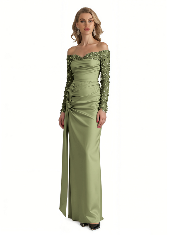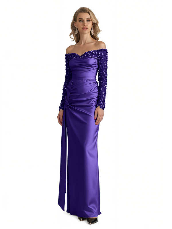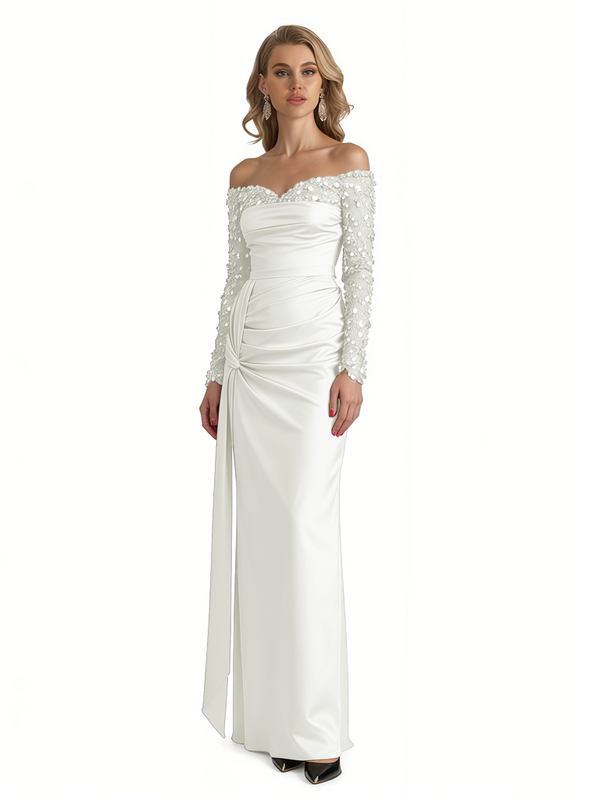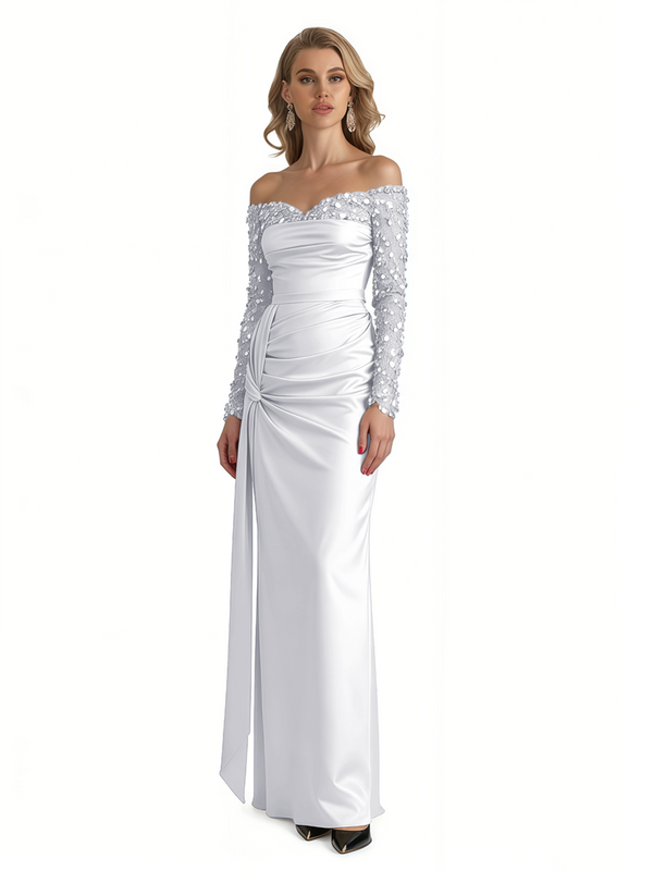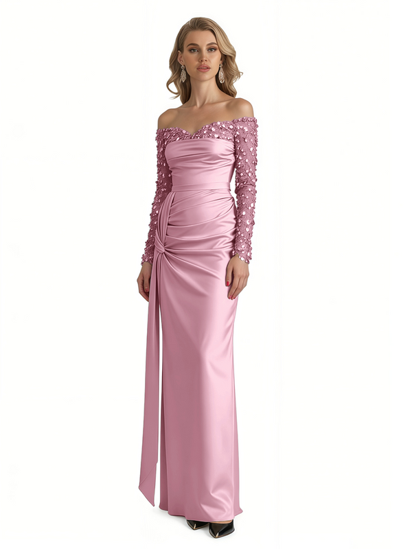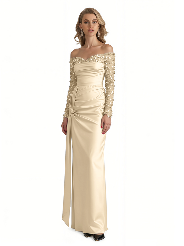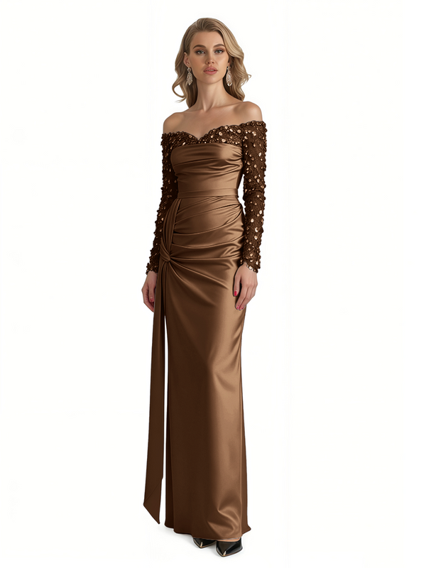 Elegant Long Sleeves Sequins Satin A-Line Long Formal Evening Gowns For Ladies - ChicSew – ChicSew