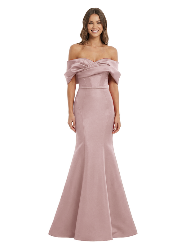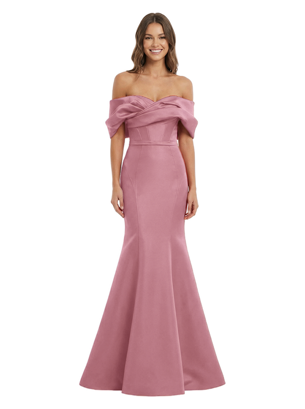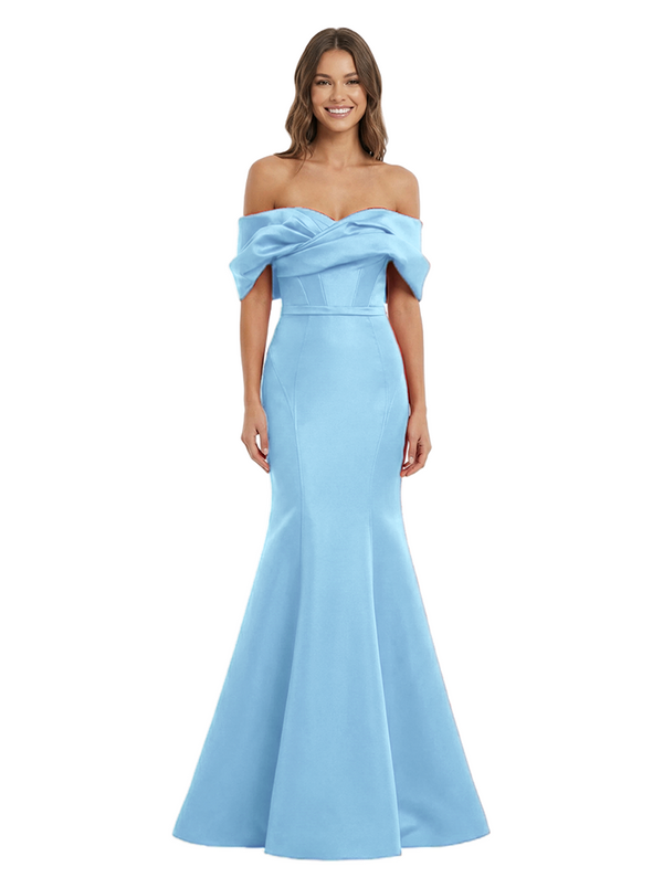 Elegant Mermaid Off Shoulder Floor Length Satin Long Party Prom Dresses- ChicSew – ChicSew
