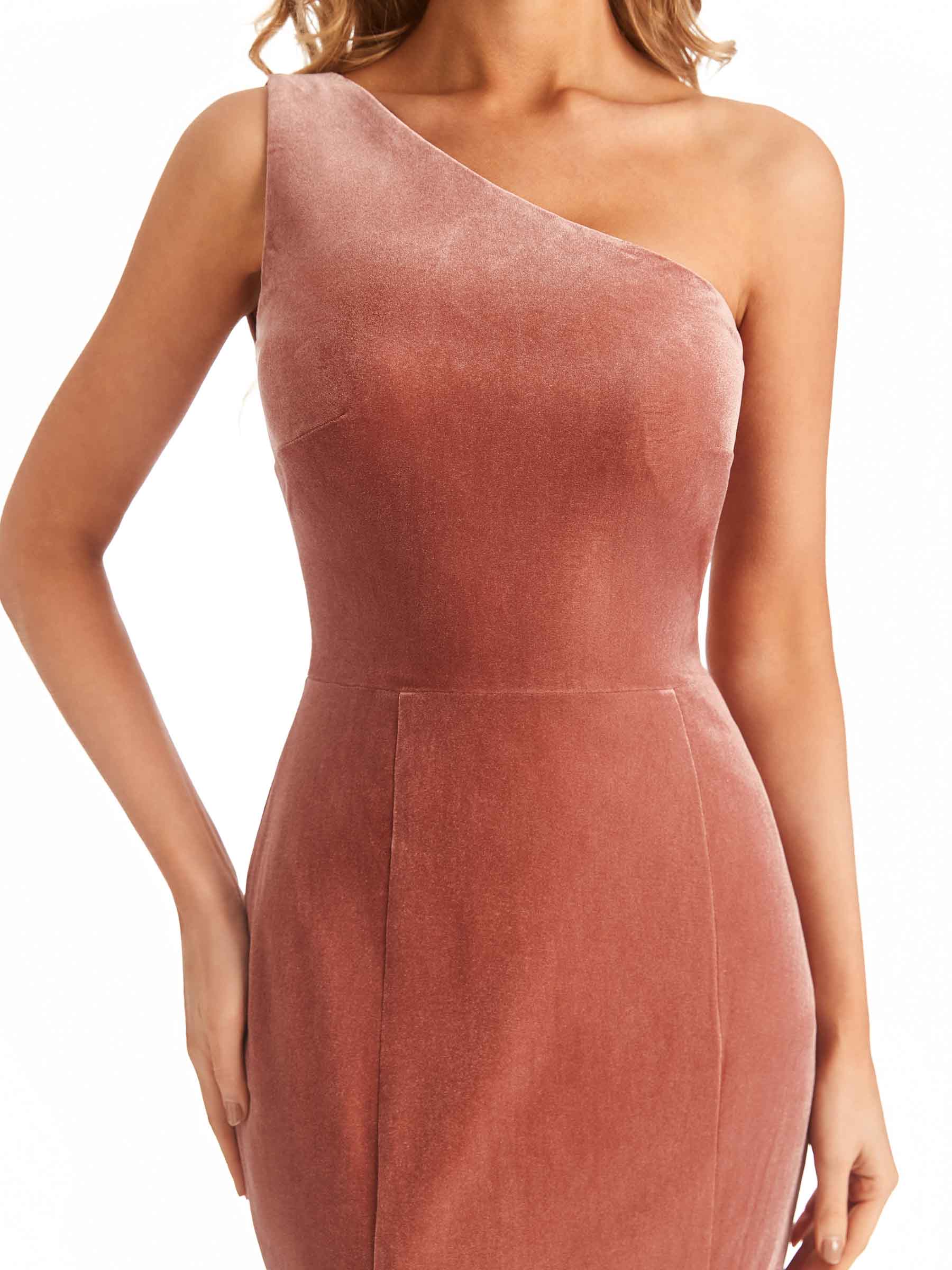 Elegant Mermaid One Shoulder Velvet Long Bridesmaid Dresses - ChicSew – ChicSew