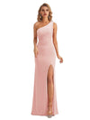 Elegant Mermaid One Shoulder Velvet Side Slit Long Bridesmaid Dresses - ChicSew – ChicSew