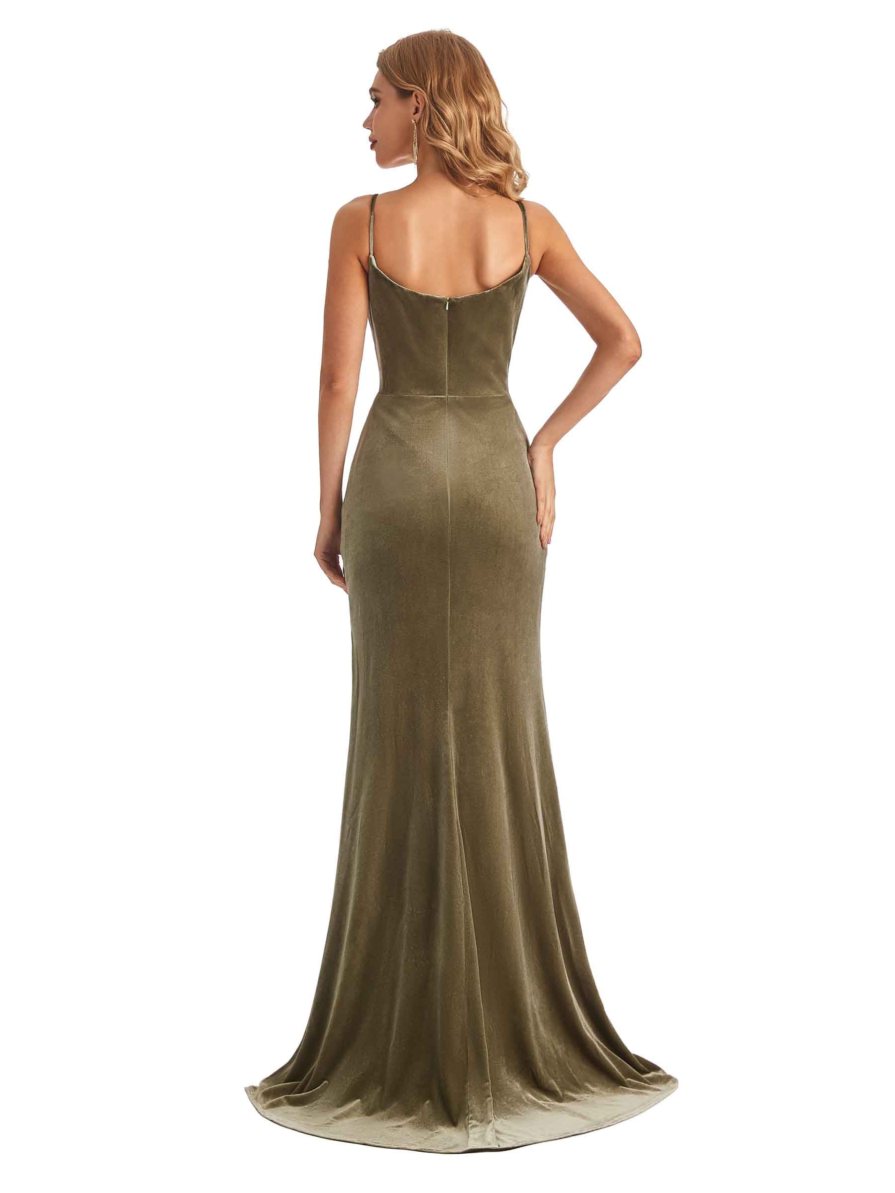 Elegant Mermaid Spaghetti Straps Cowl Velvet Side Slit Long Bridesmaid Dresses - ChicSew – ChicSew