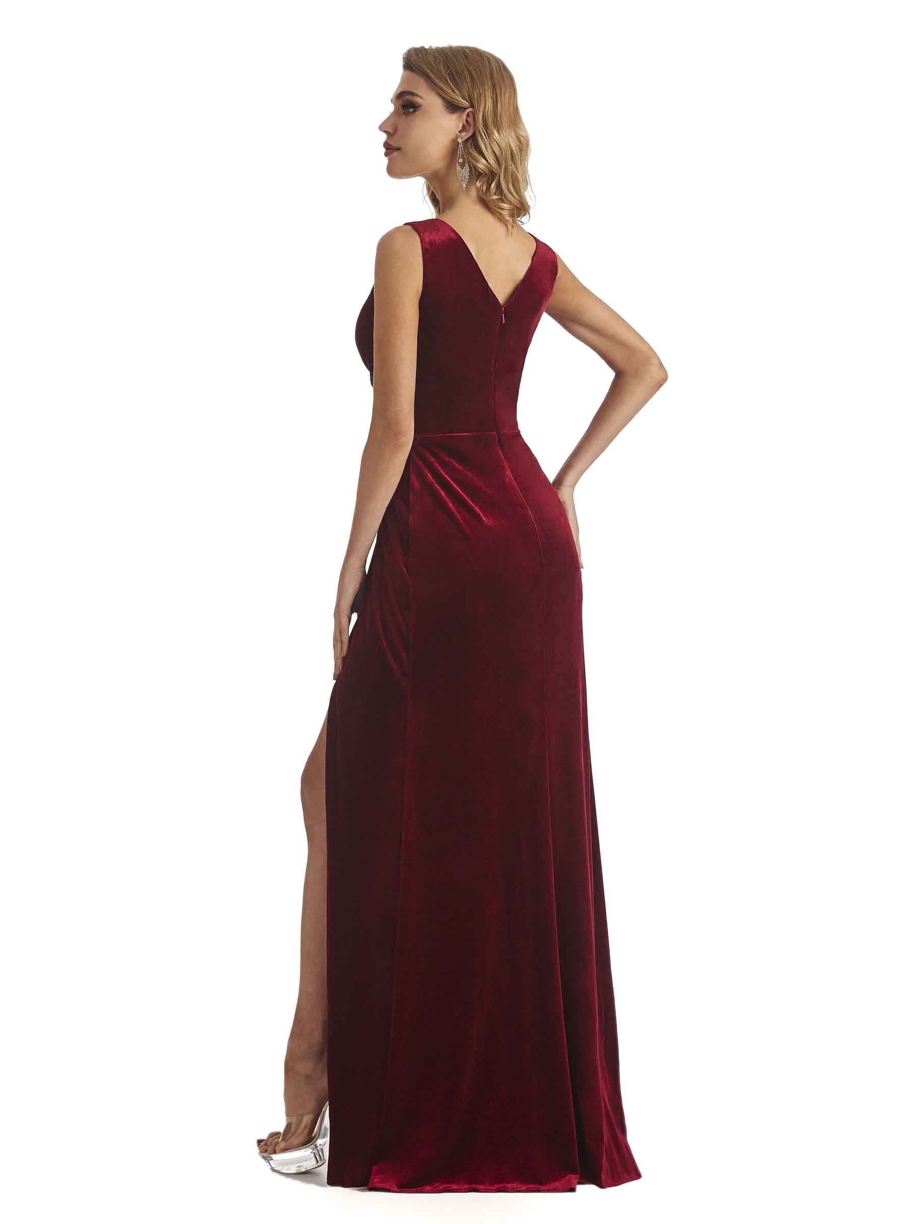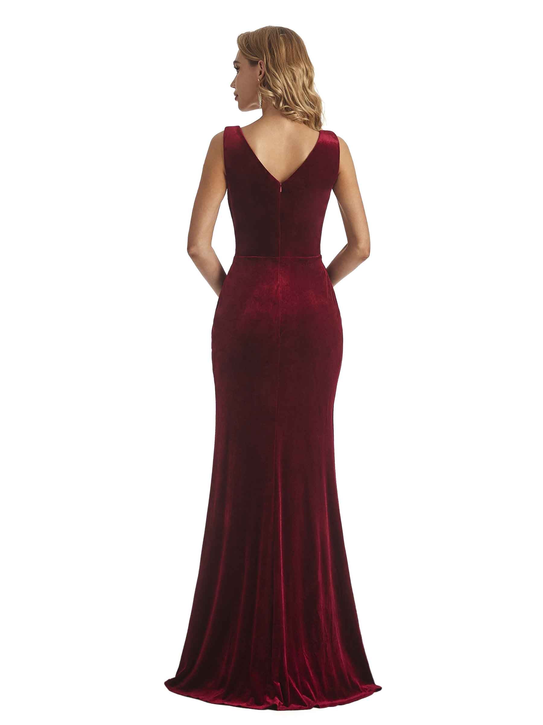 Elegant Mermaid V-neck Side Split Unique Velvet Long Bridesmaid Dresses Online