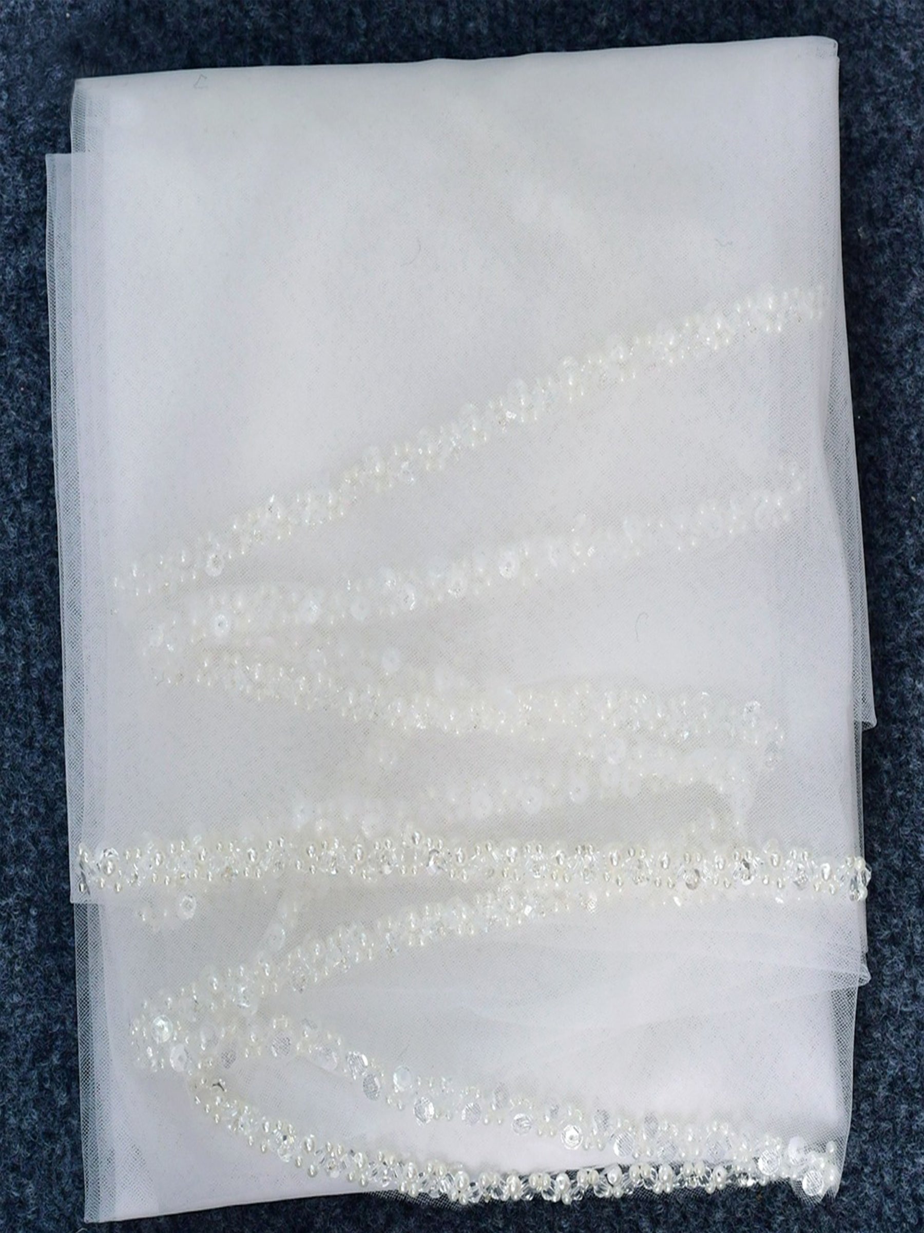 Elegant Minimalist Hand Sewn Pearl Edging Bridal Veil, V134