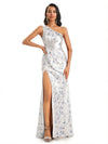 Elegant One Shoulder Mermaid Side Slit Floral Satin Maxi Floral Formal Dresses For Women