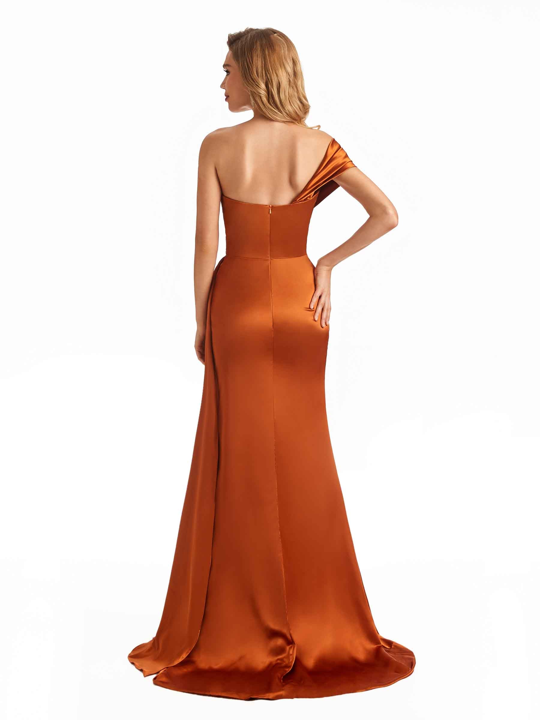 Elegant One Shoulder Soft Satin Long Mermaid Bridesmaid Dresses Online