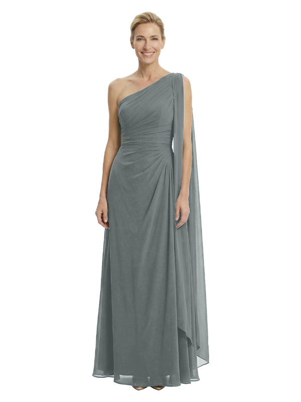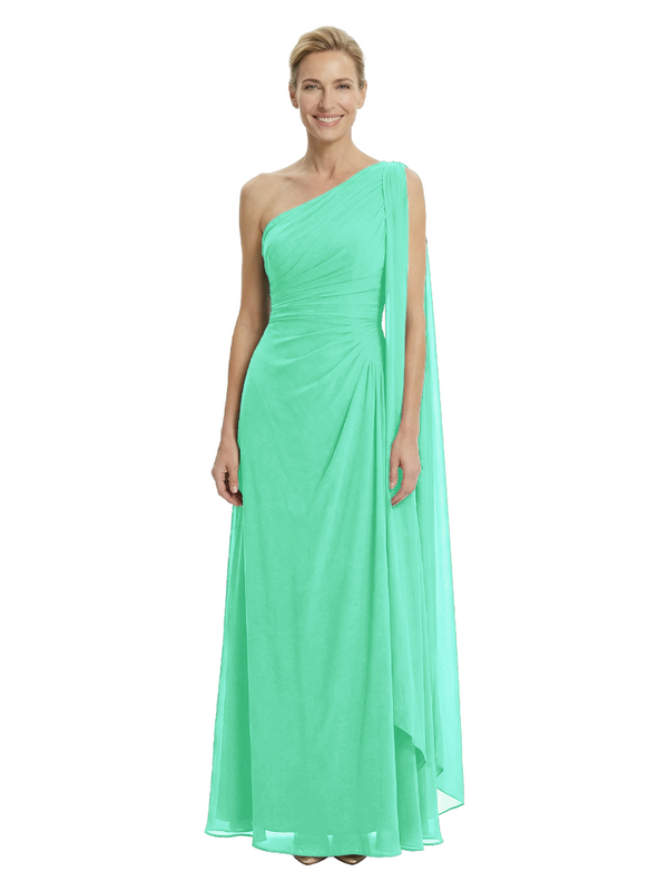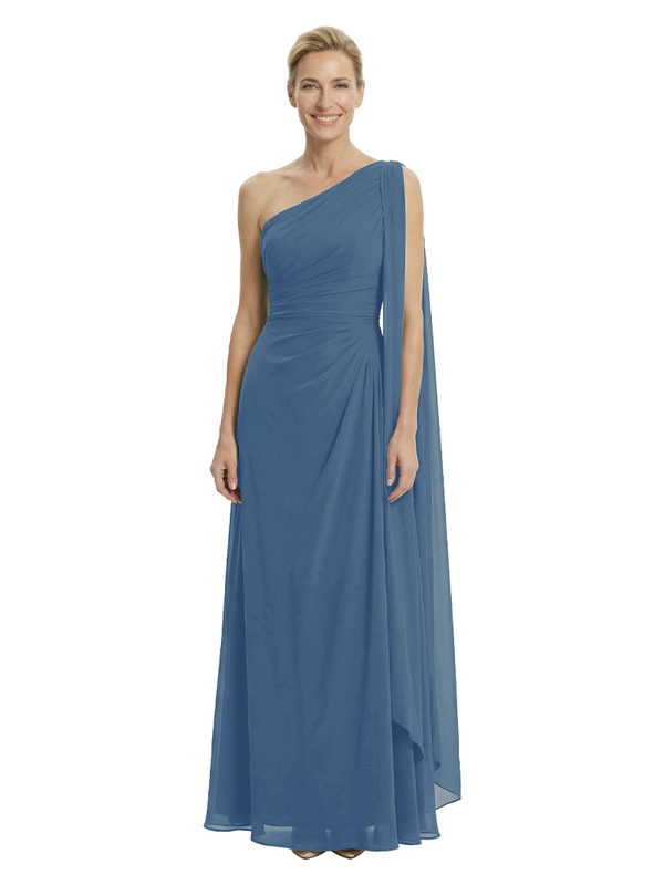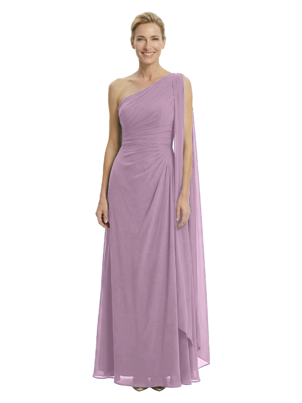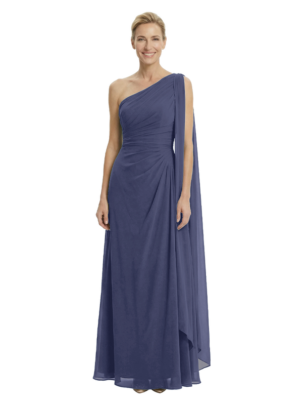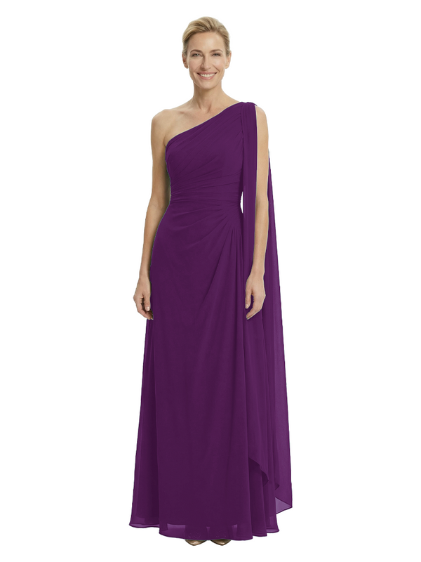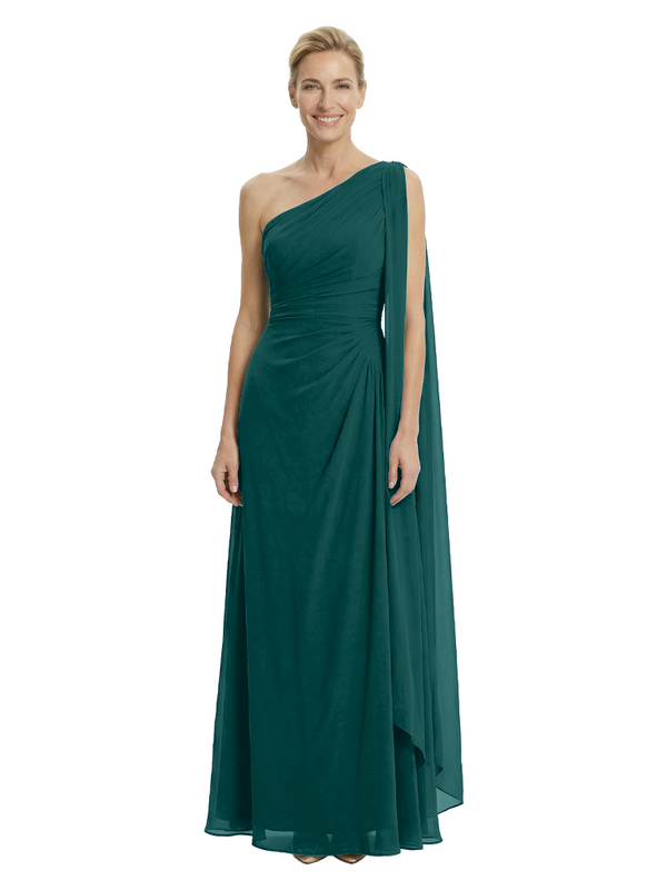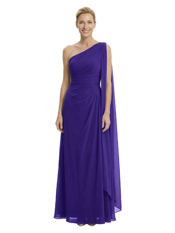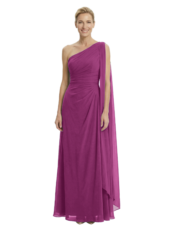 Elegant One Shoulder Ruched Chiffon Floor-Length A-Line Mother of the Groom Dresses