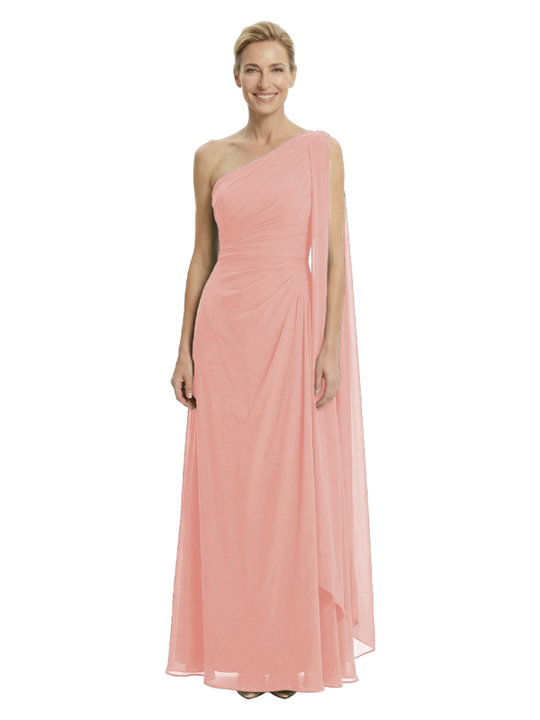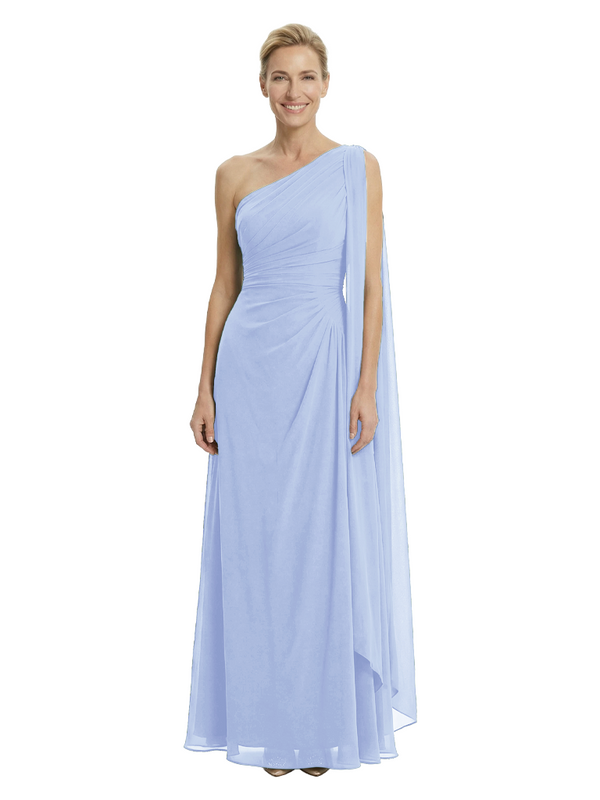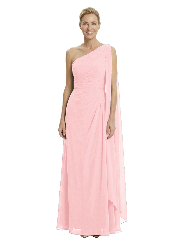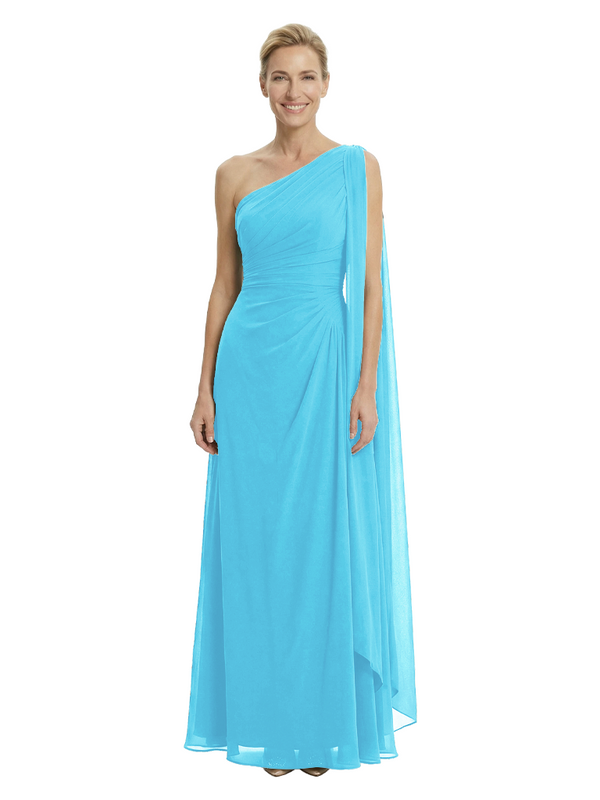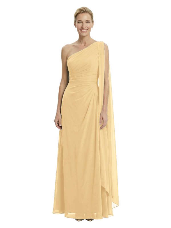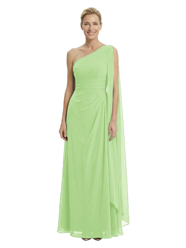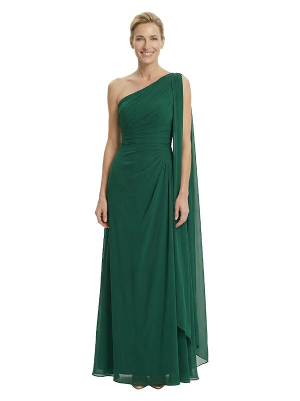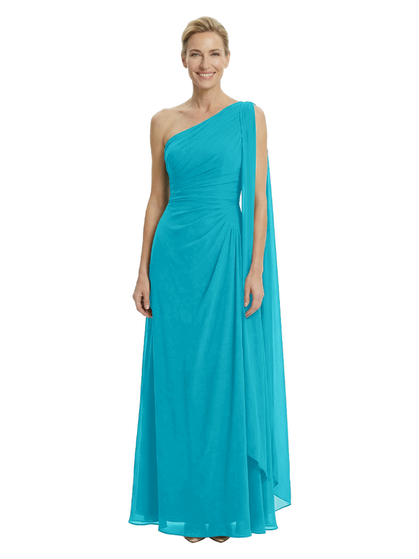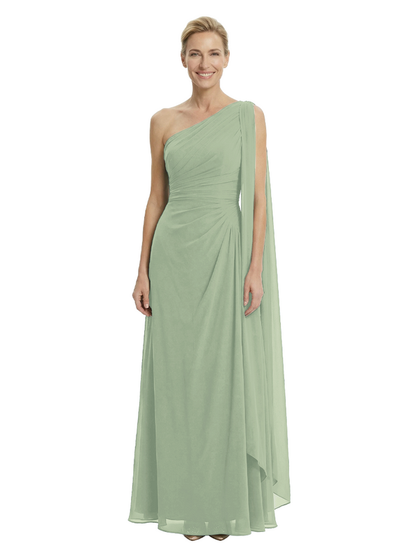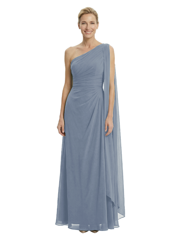 Elegant One Shoulder Ruched Chiffon Floor-Length A-Line Mother of the Groom Dresses