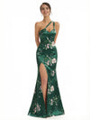 Elegant One Shoulder Side Slit Mermaid Floral Satin Maxi Floral Formal Dresses For Women