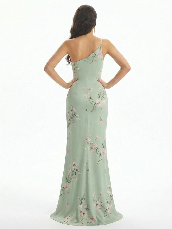 Elegant One Shoulder Mermaid Long Satin Floral Formal Dresses For Women - ChicSew – ChicSew