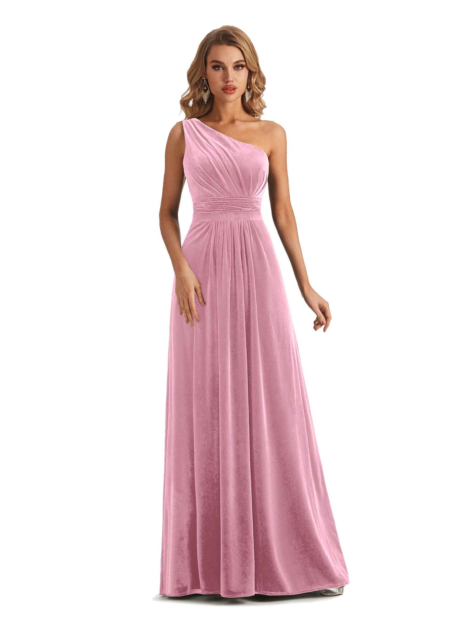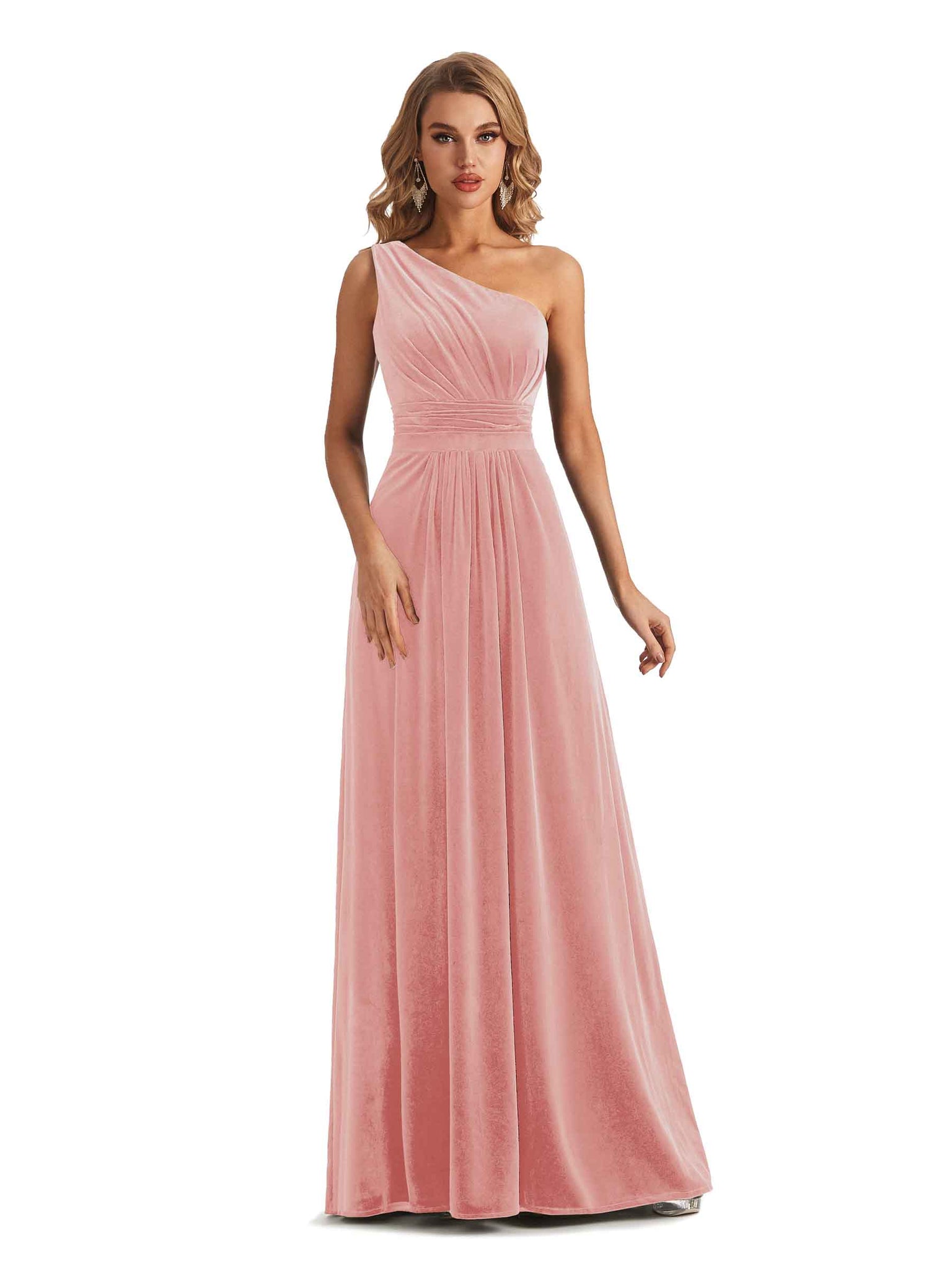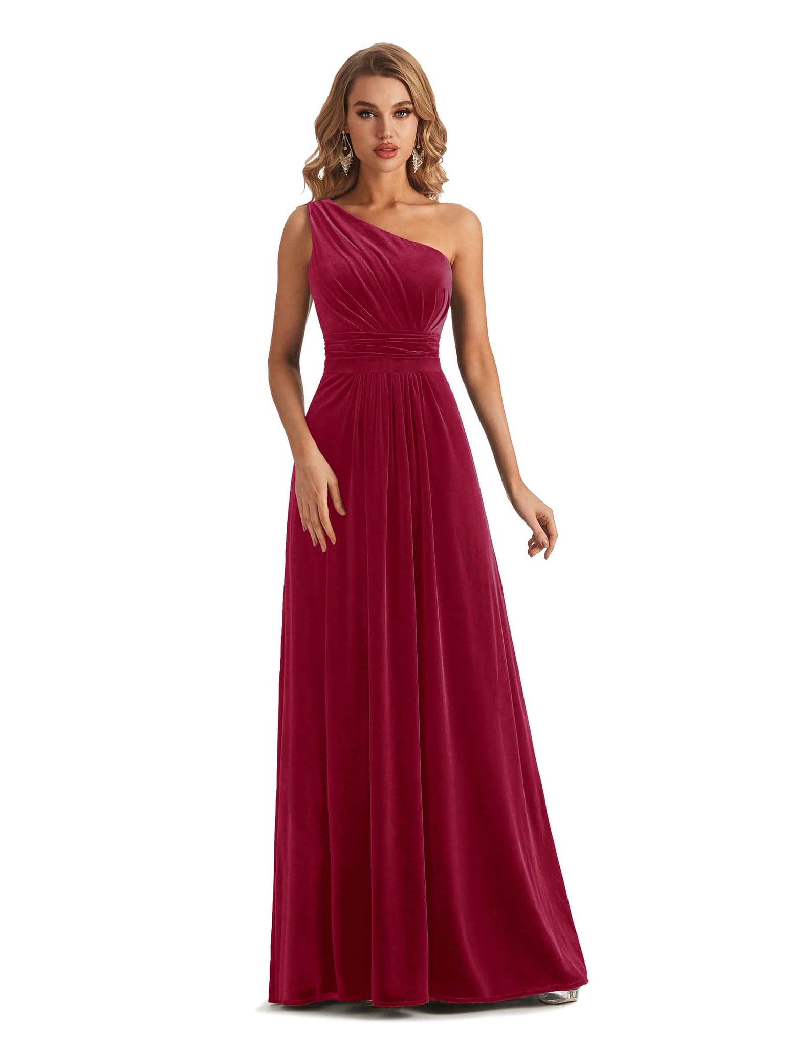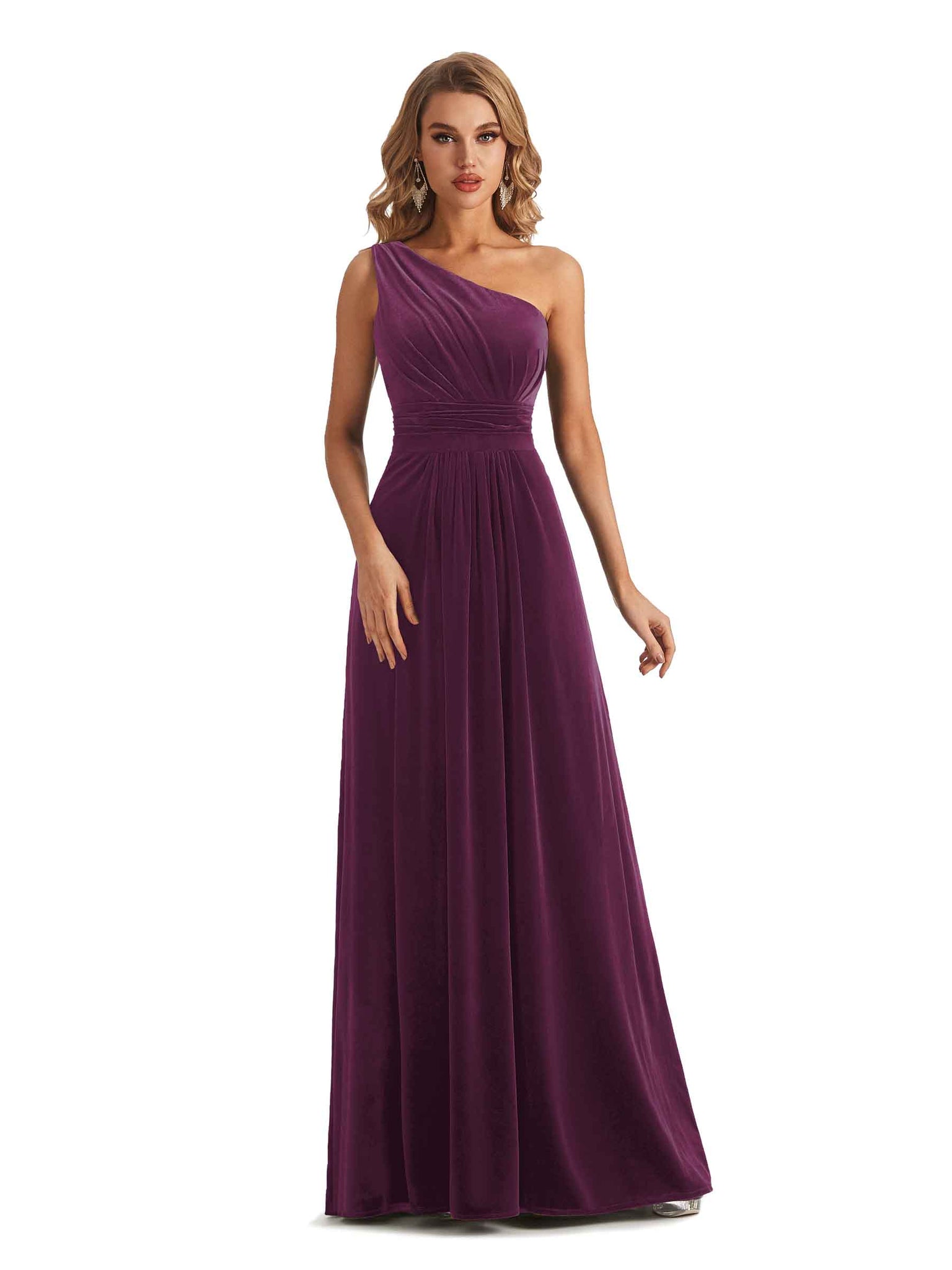 Elegant One Soulder Sleeveless A-line Velvet Long Bridesmaid Dresses- ChicSew – ChicSew