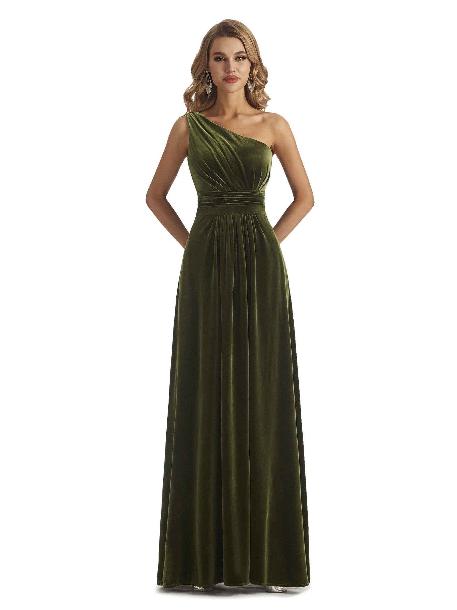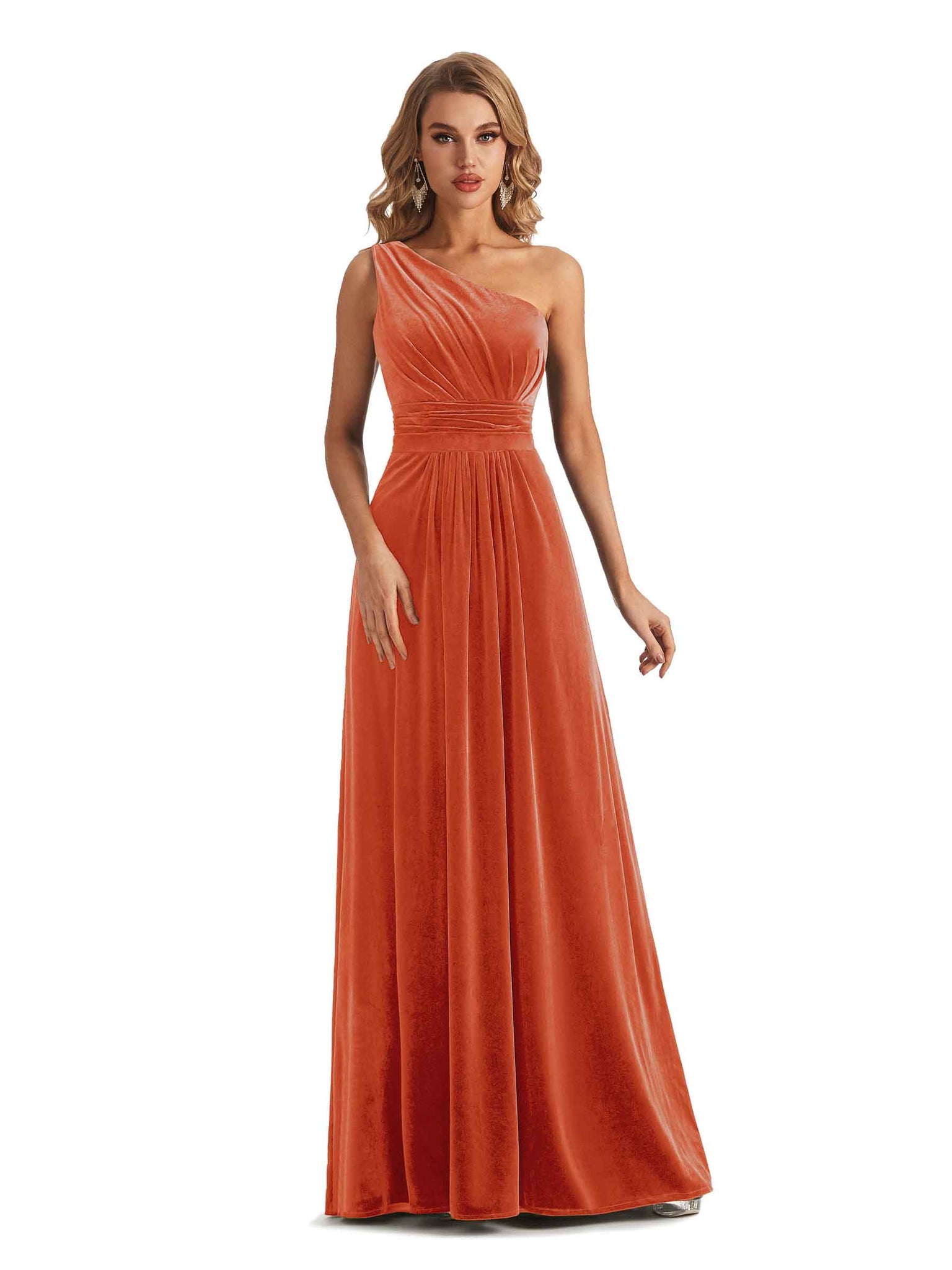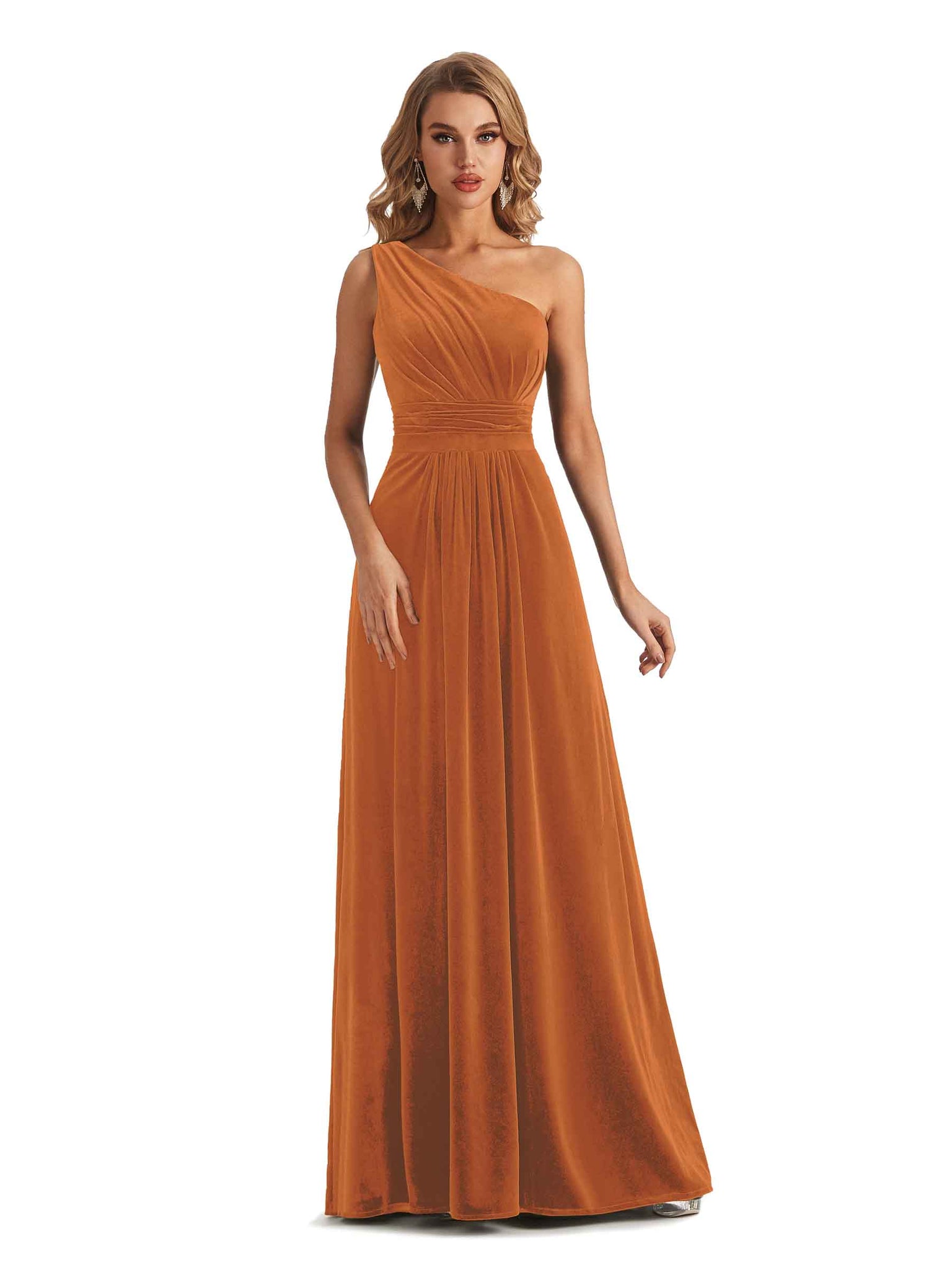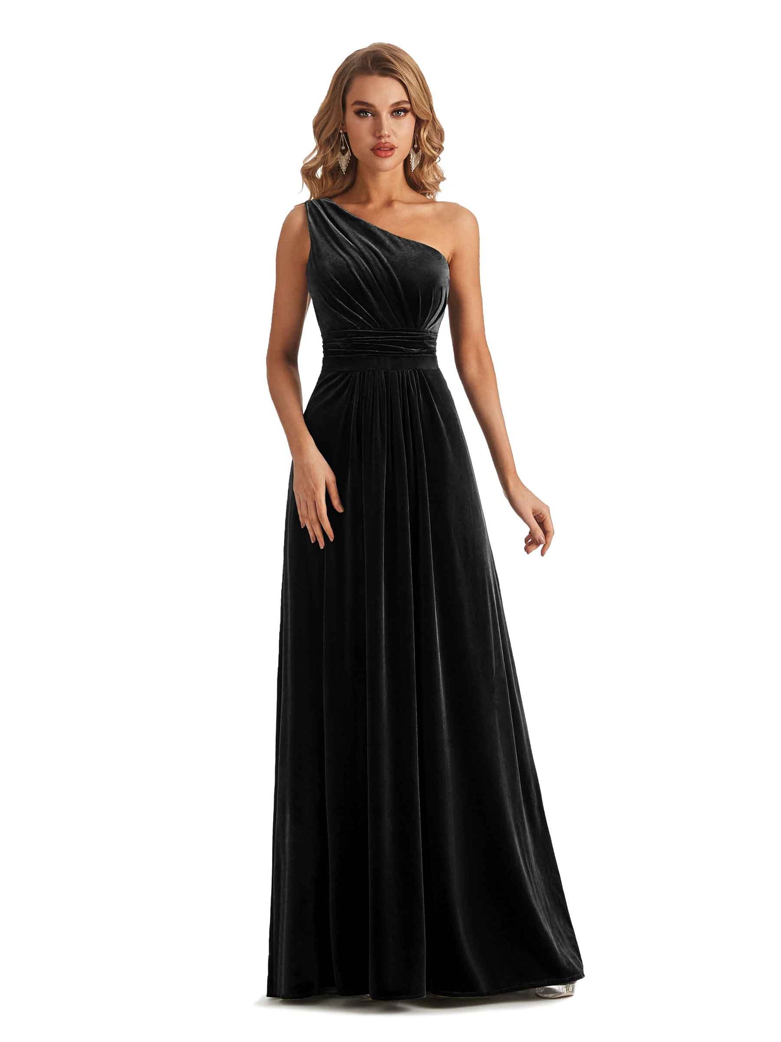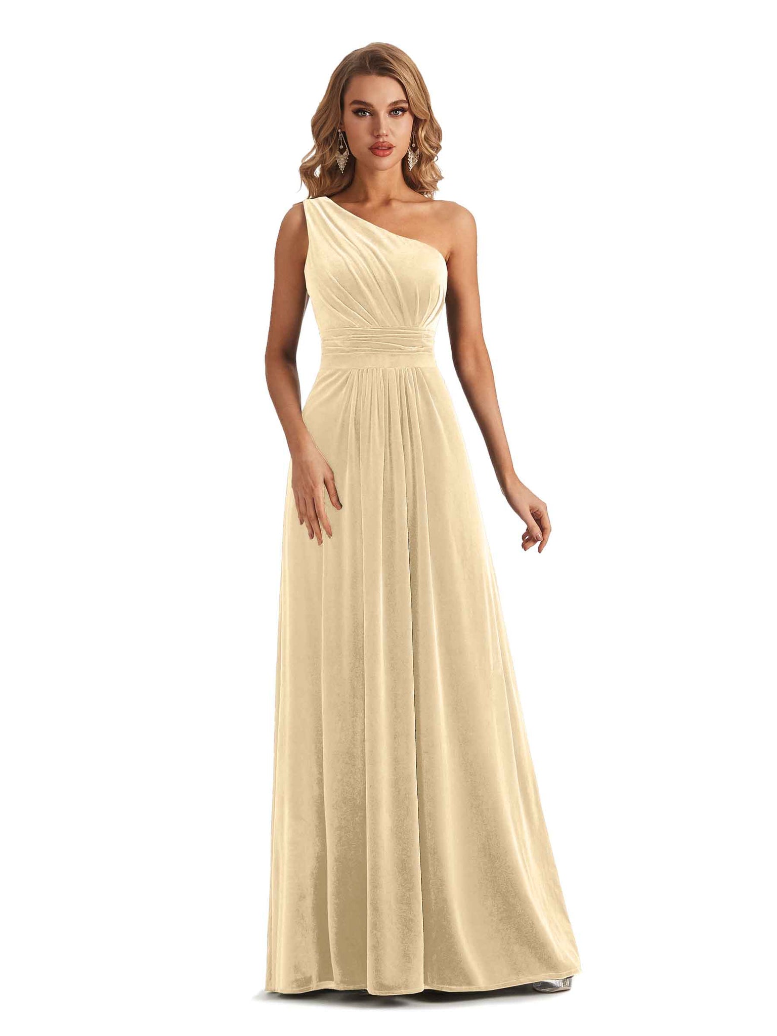 Elegant One Soulder Sleeveless A-line Velvet Long Bridesmaid Dresses- ChicSew – ChicSew