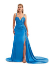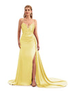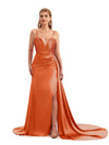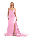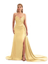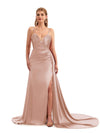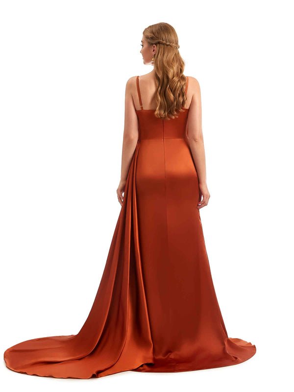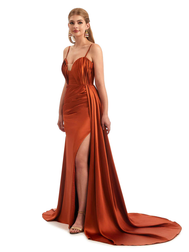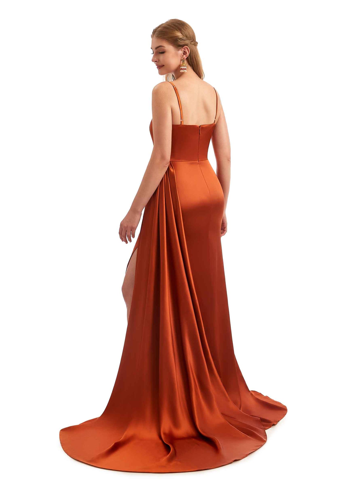 Elegant Satin Side Split Spaghetti Straps Long Mermaid Bridesmaid Dresses Online - ChicSew – ChicSew
