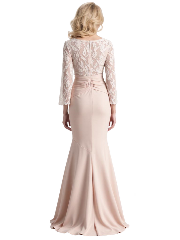 Elegant Scoop 3/4 Sleeves Mermaid Split Lace Crepe Mother Of The Bride Dresses - ChicSew – ChicSew