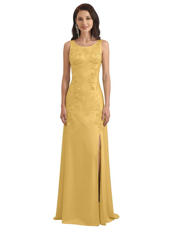 Elegant Side Slit Chiffon Long Mother of The Bride DressesElegant Side Slit Chiffon Long Mother of The Bride Dresses
