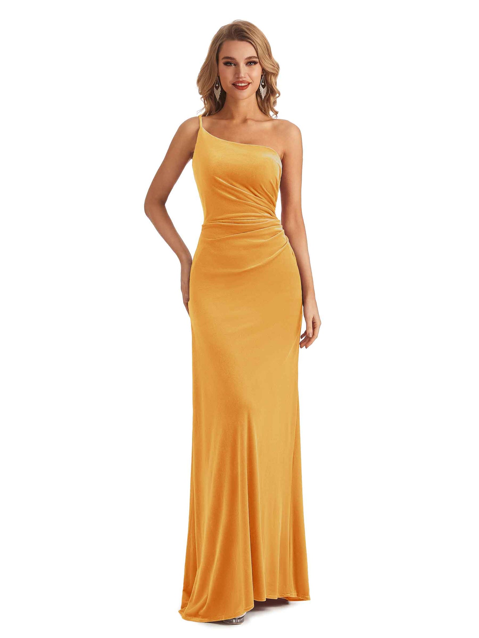 Elegant Sheath One Shoulder Velvet Long Wedding Guest Dresses- ChicSew – ChicSew