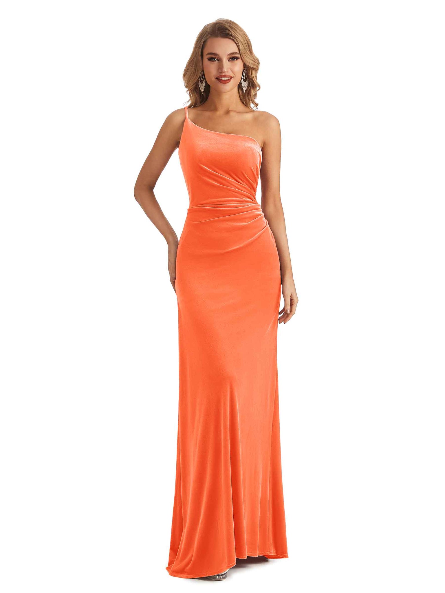 Elegant Sheath One Shoulder Formal Velvet Long Wedding Guest Dresses $118.99