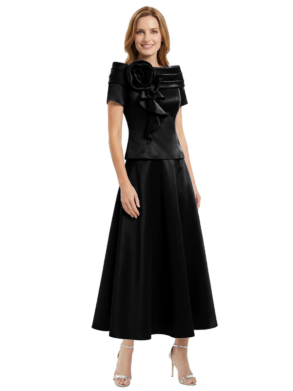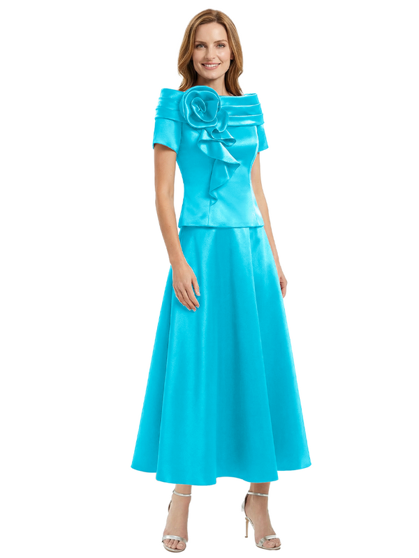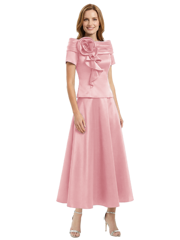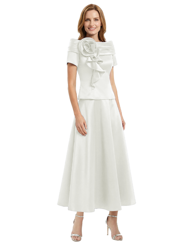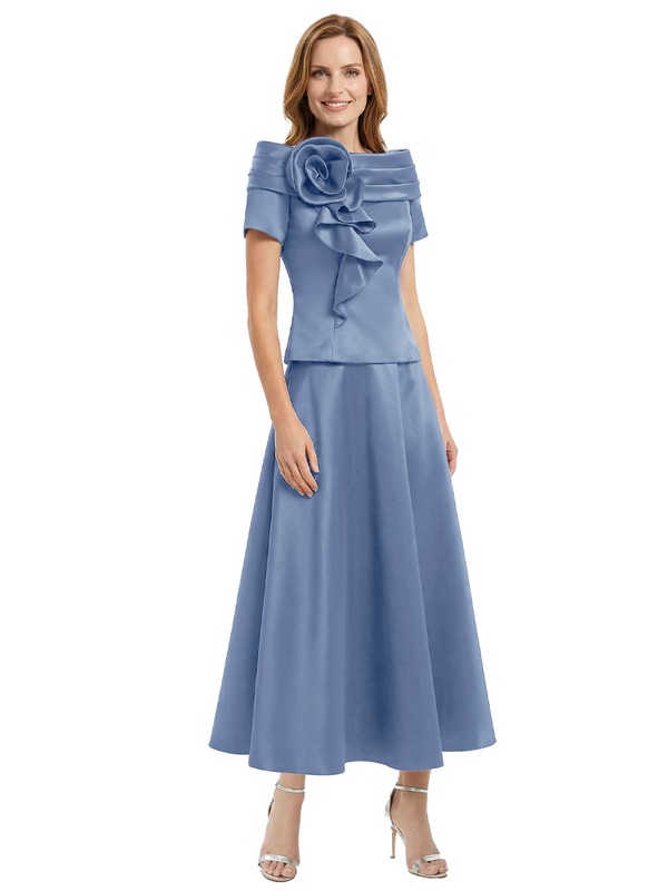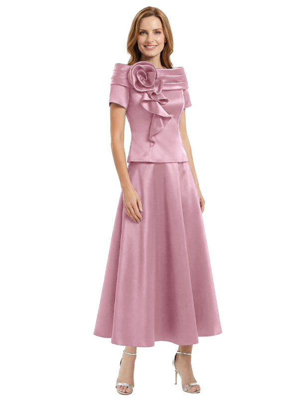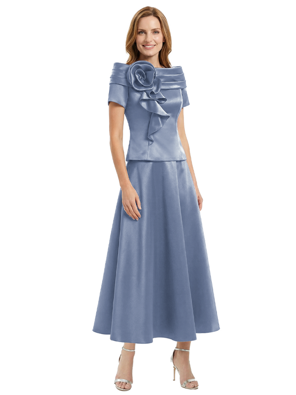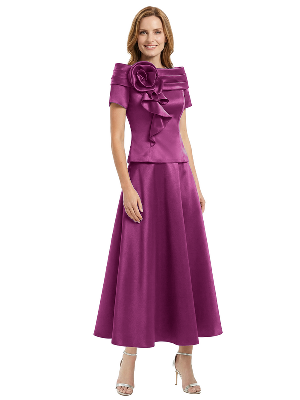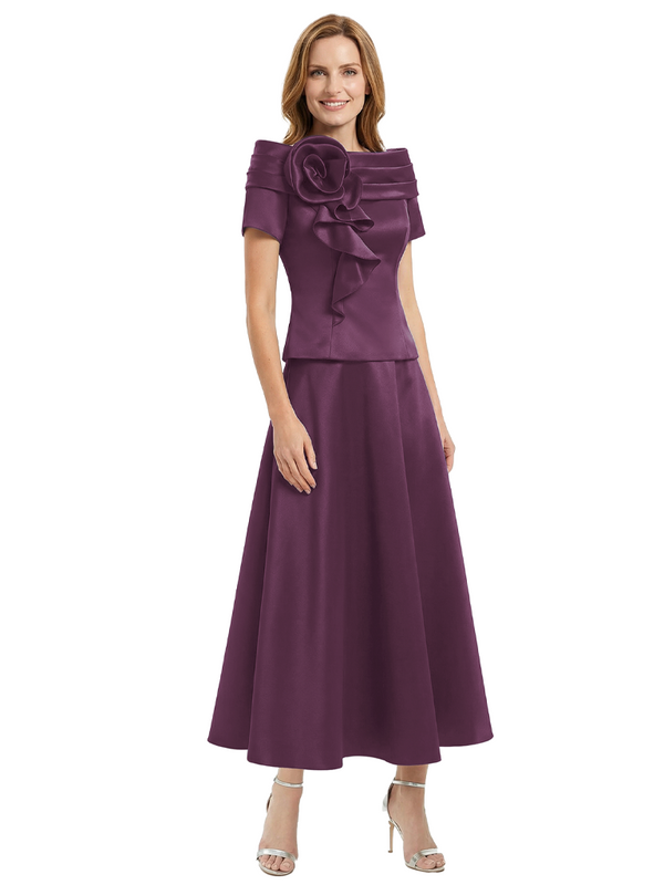 Elegant Short Sleeves A-Line Satin Mother of the Groom Evening Dress - ChicSew – ChicSew