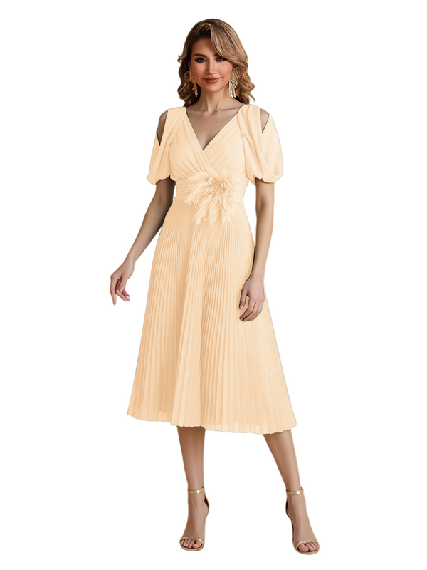If your measurements are smaller than the dress, the pleats may loosen and lose their shape. In this case, we recommend taking the dress to a local seamstress for adjustments.