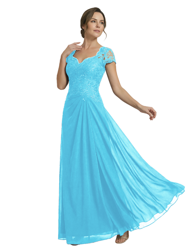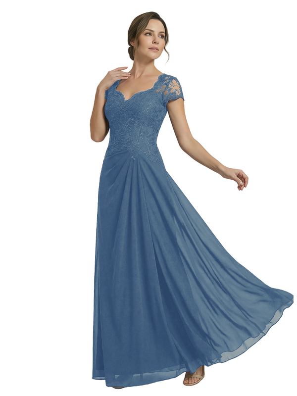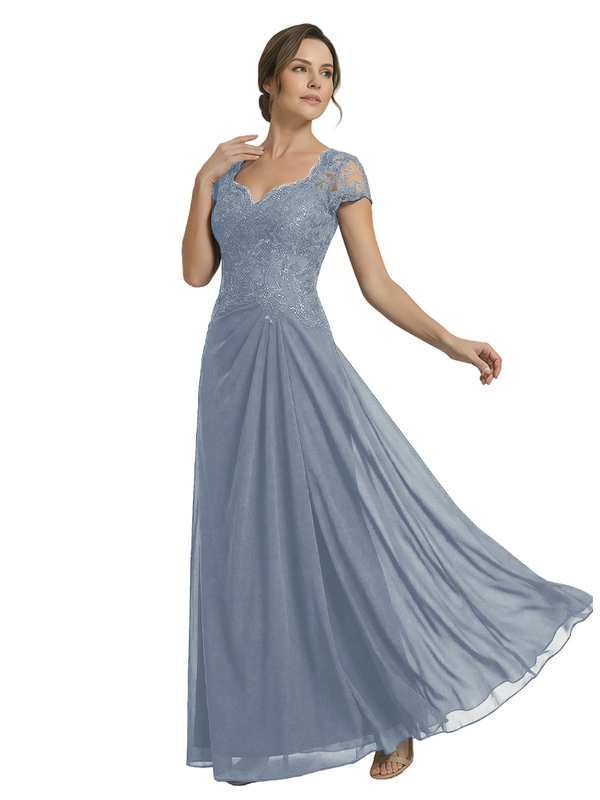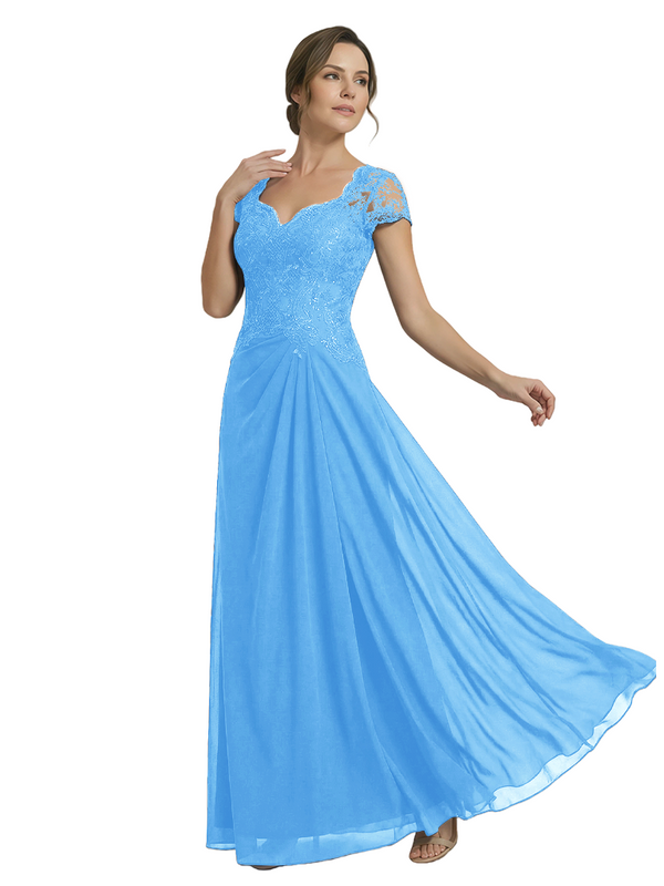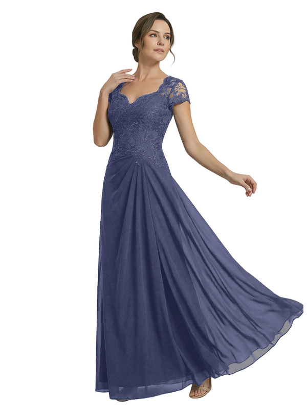Elegant Short Sleeves Lace Chiffon A-Line Mother of The Bride Dresses