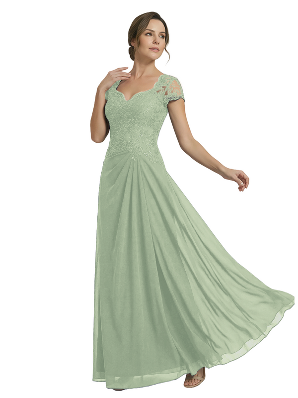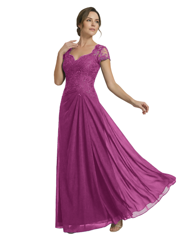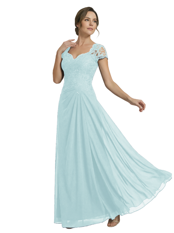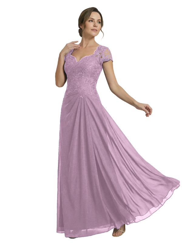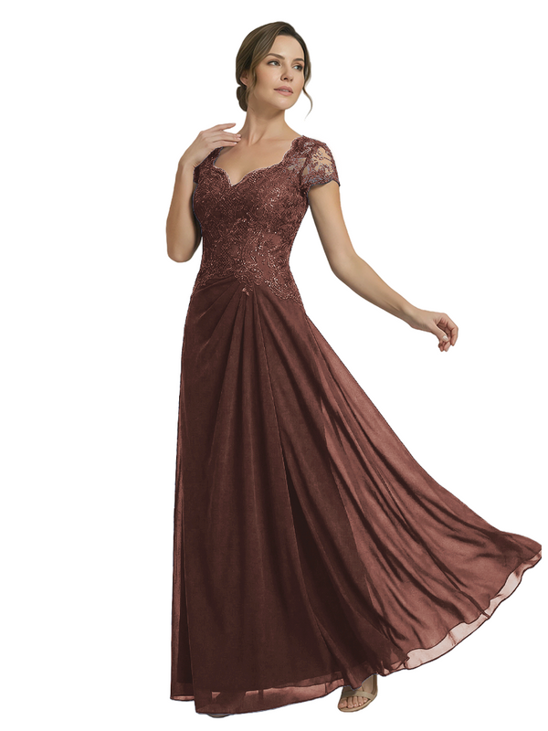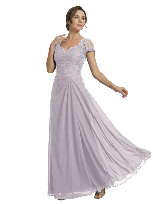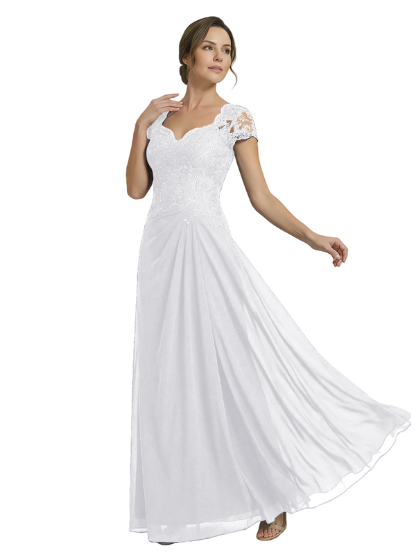 Elegant Short Sleeves Lace Chiffon A-Line Mother of The Bride Dresses - ChicSew – ChicSew