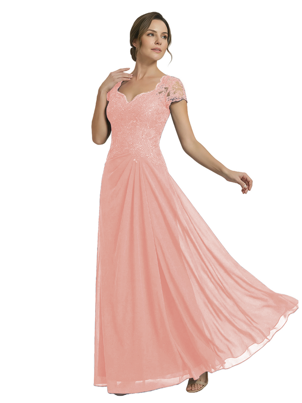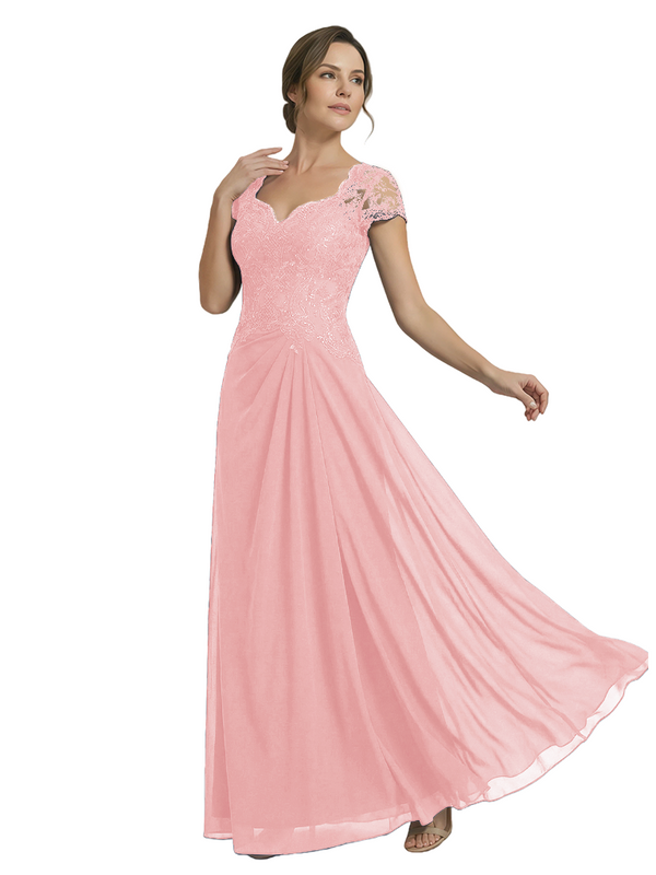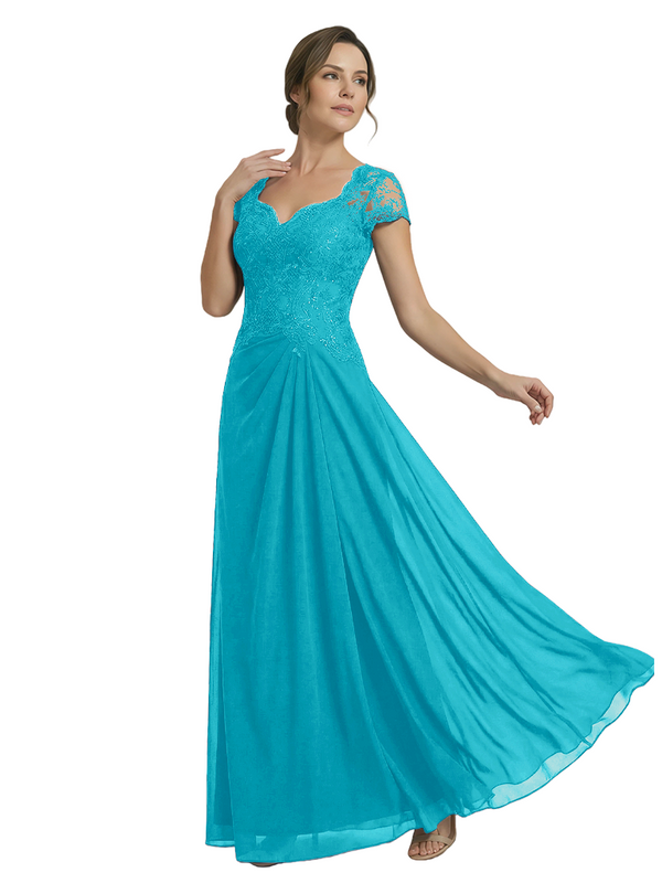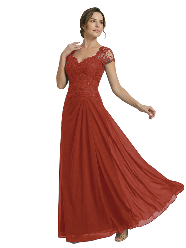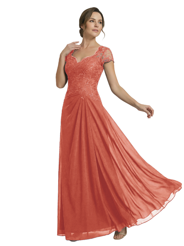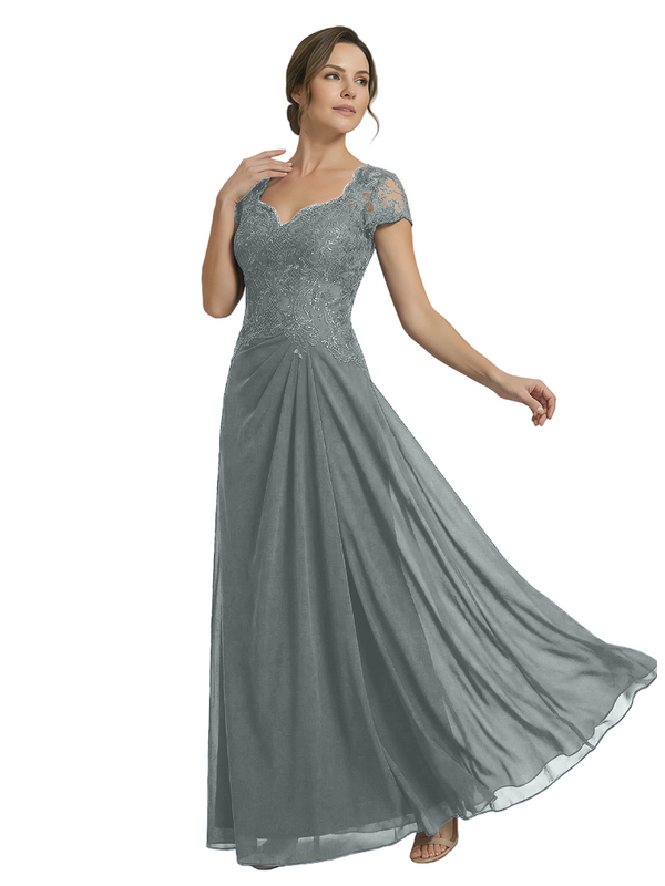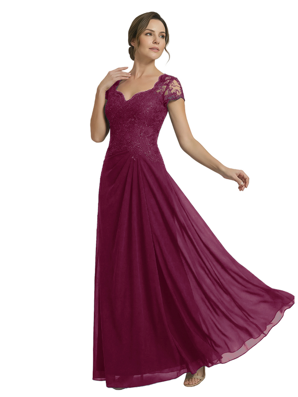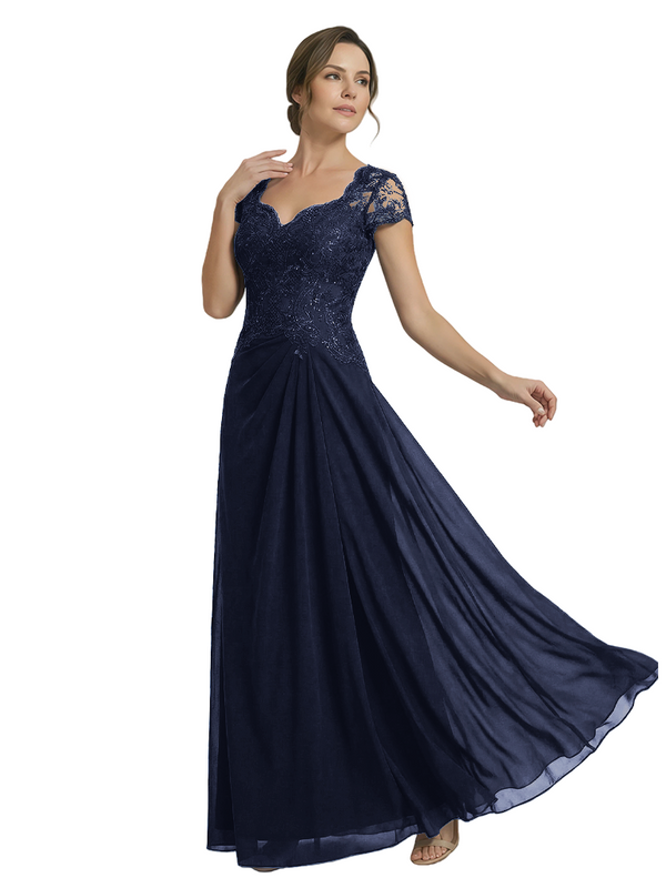 Elegant Short Sleeves Lace Chiffon A-Line Mother of The Bride Dresses - ChicSew – ChicSew