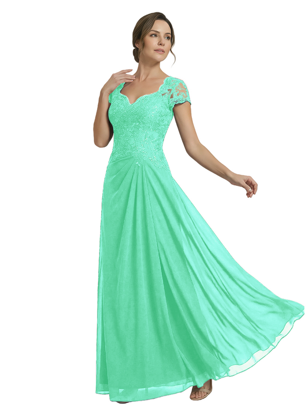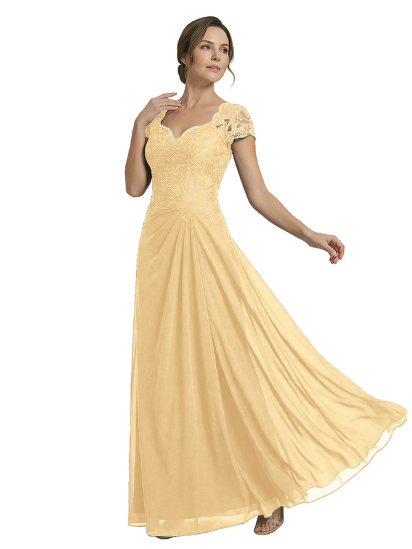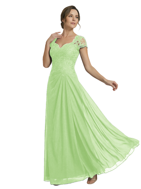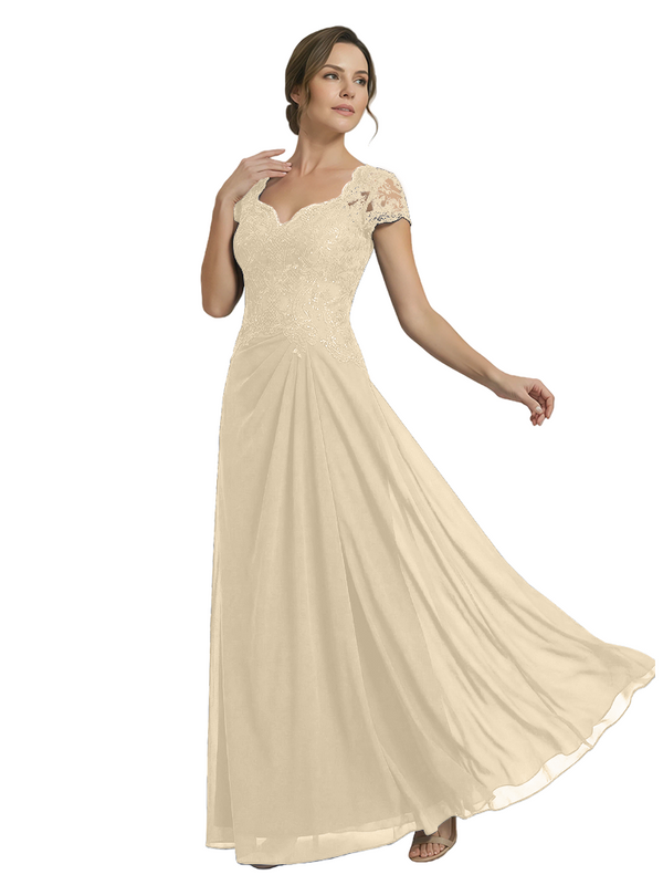 Elegant Lace Short Sleeves Chiffon V-neck Floor-length Mother of The Bride DressesElegant Lace Short Sleeves Chiffon V-neck Floor-length Mother of The Bride Dresses
