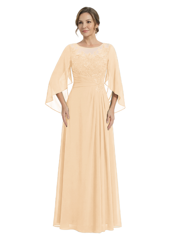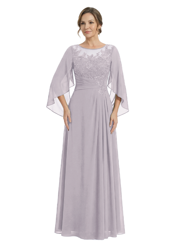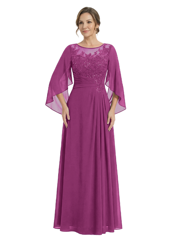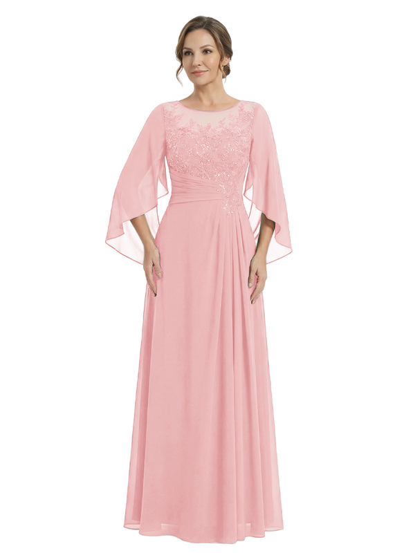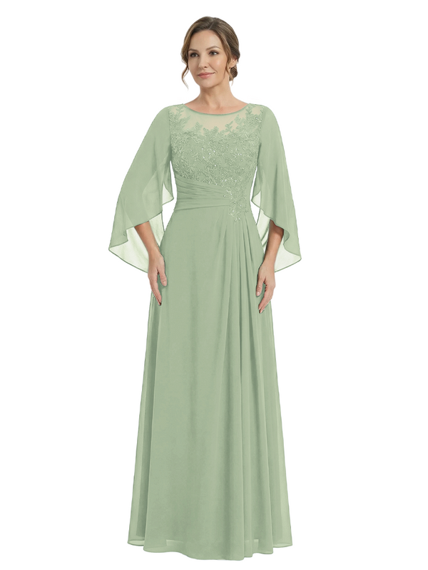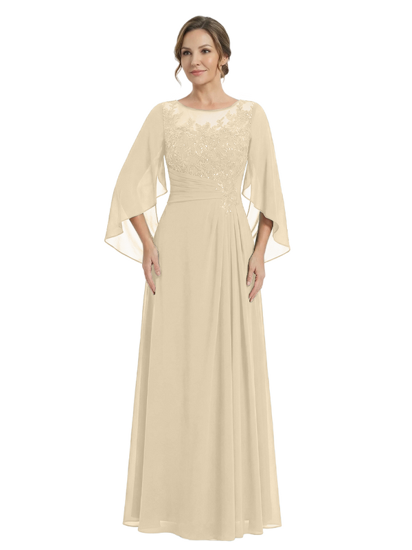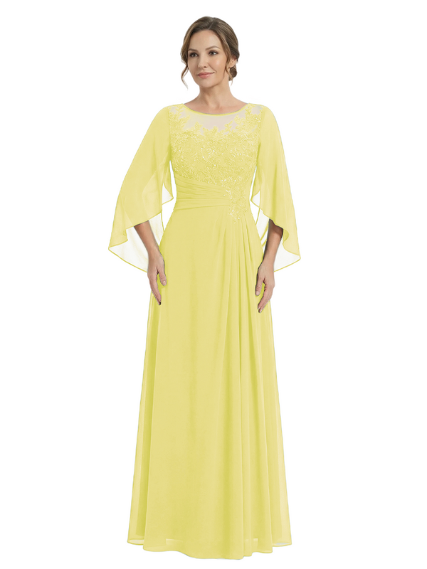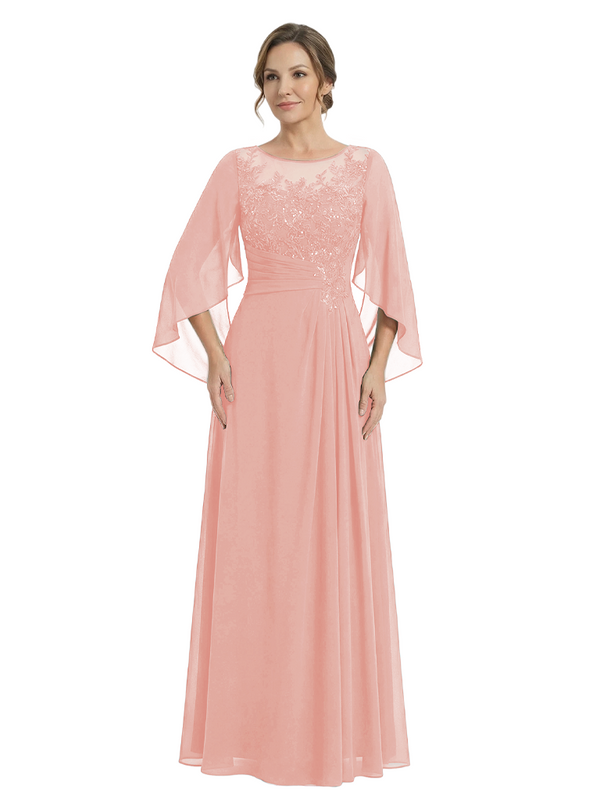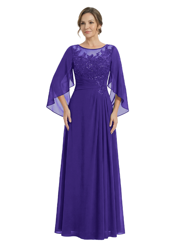 Half Sleeves Appliques Chiffon Elegant Floor-length Mother Of The Bride DressesHalf Sleeves Appliques Chiffon Elegant Floor-length Mother Of The Bride Dresses