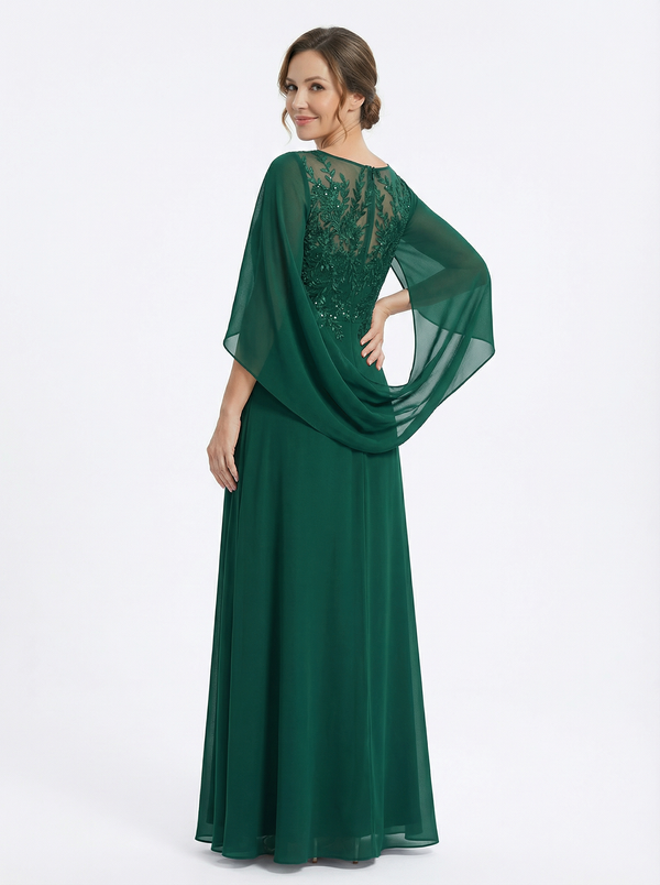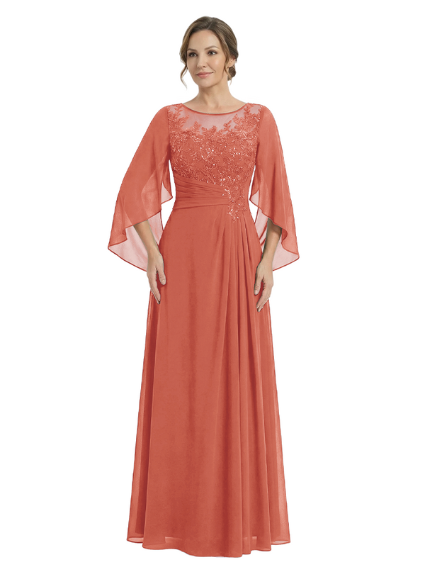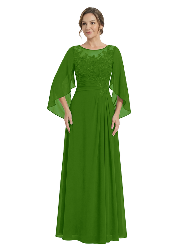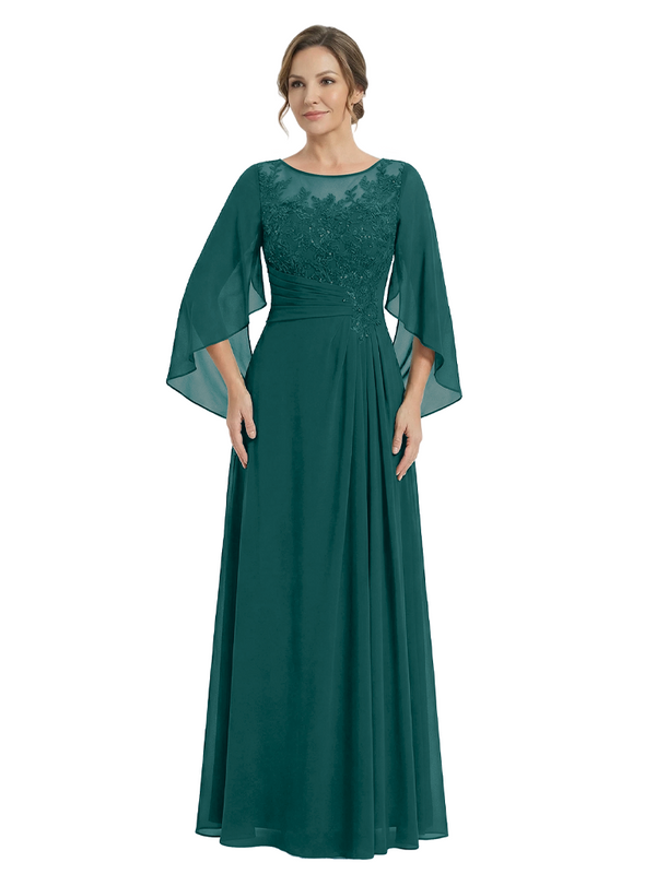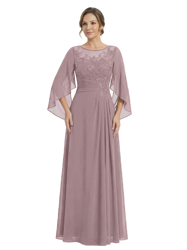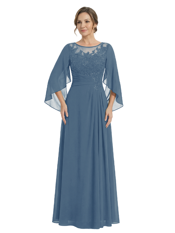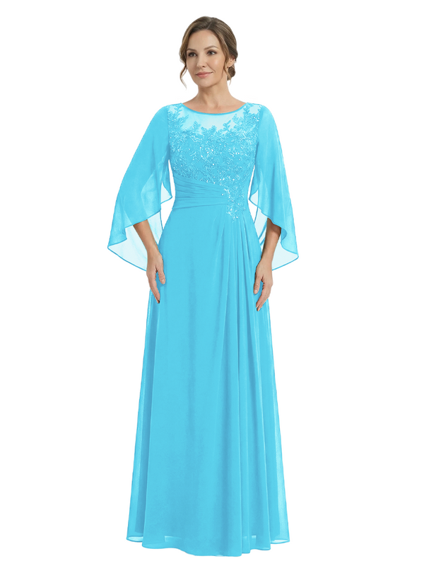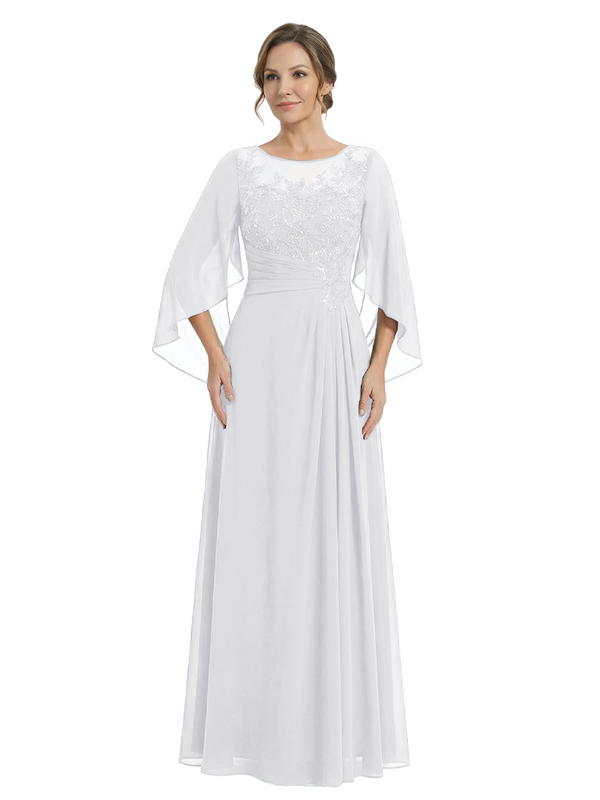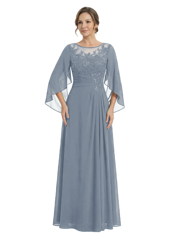Half Sleeves Appliques Chiffon Elegant Floor-length Mother Of The Bride DressesHalf Sleeves Appliques Chiffon Elegant Floor-length Mother Of The Bride Dresses