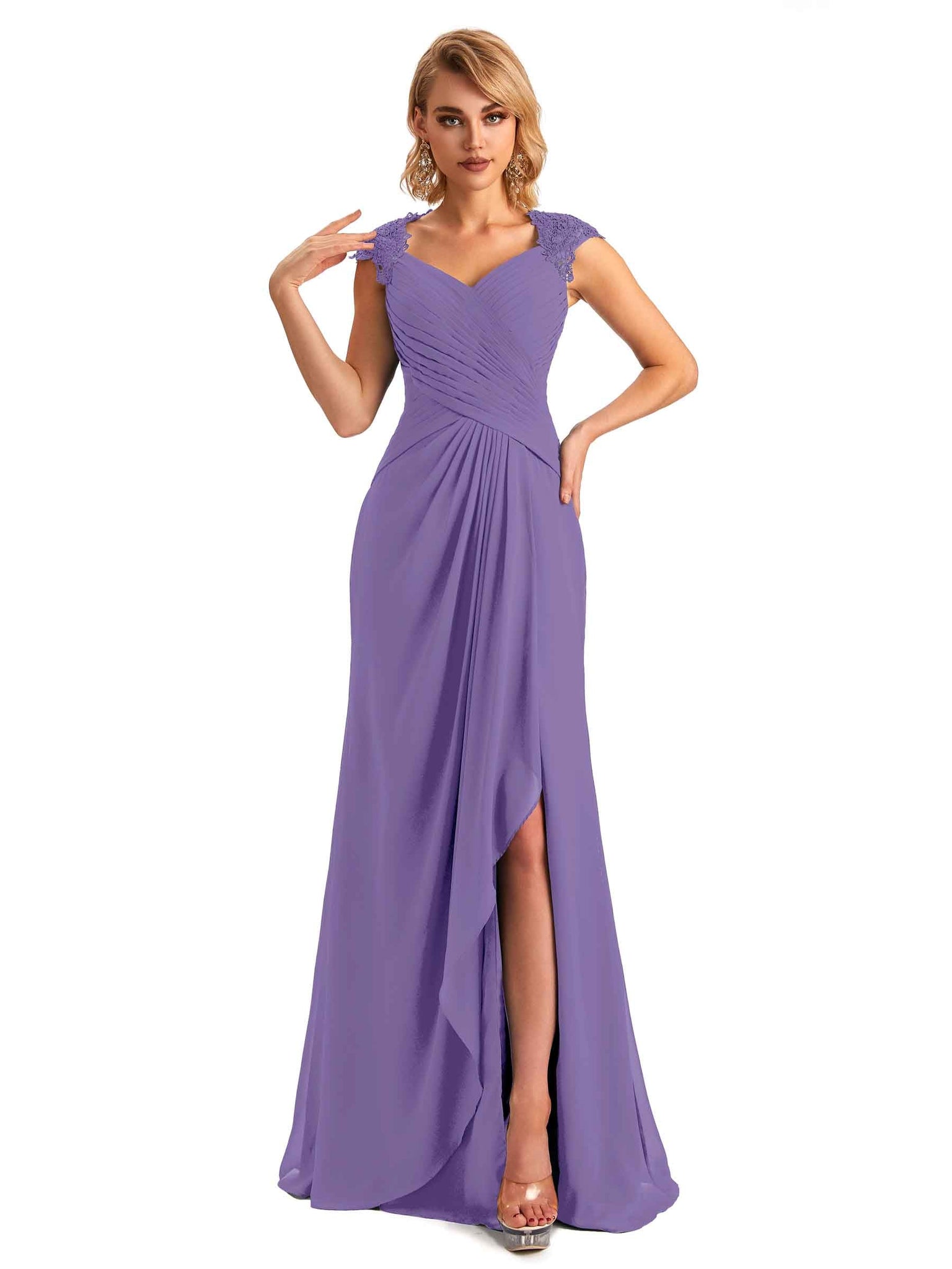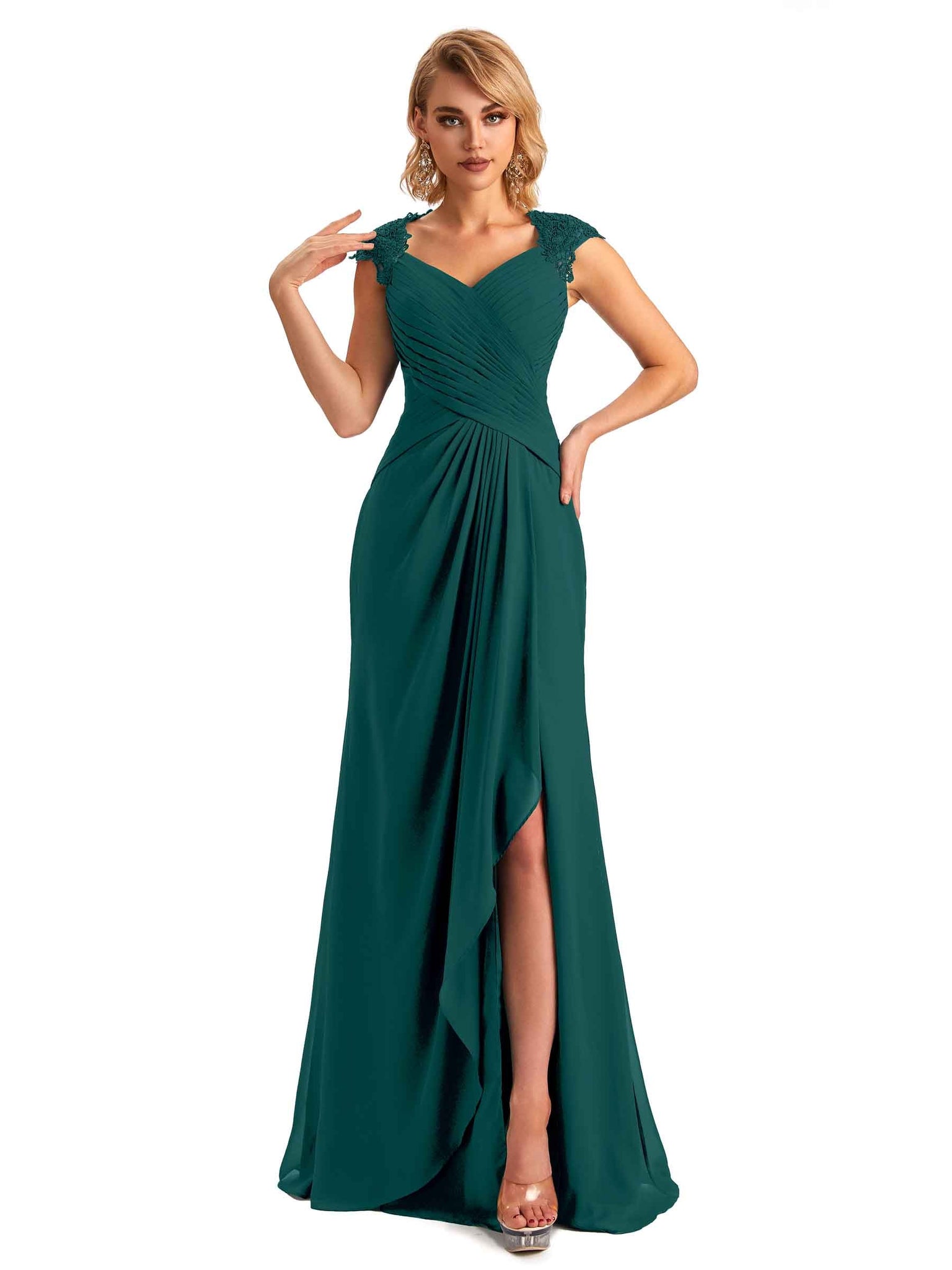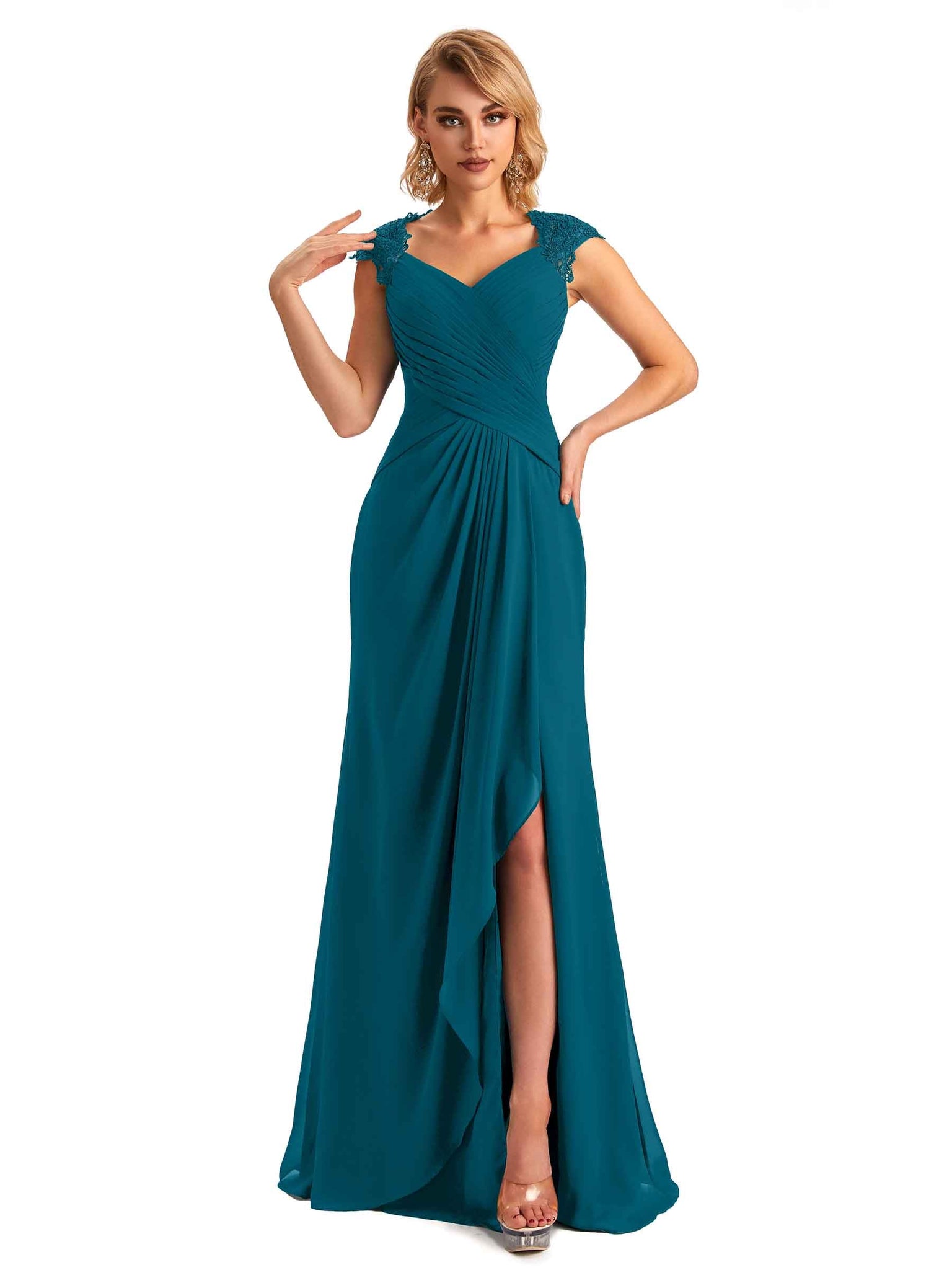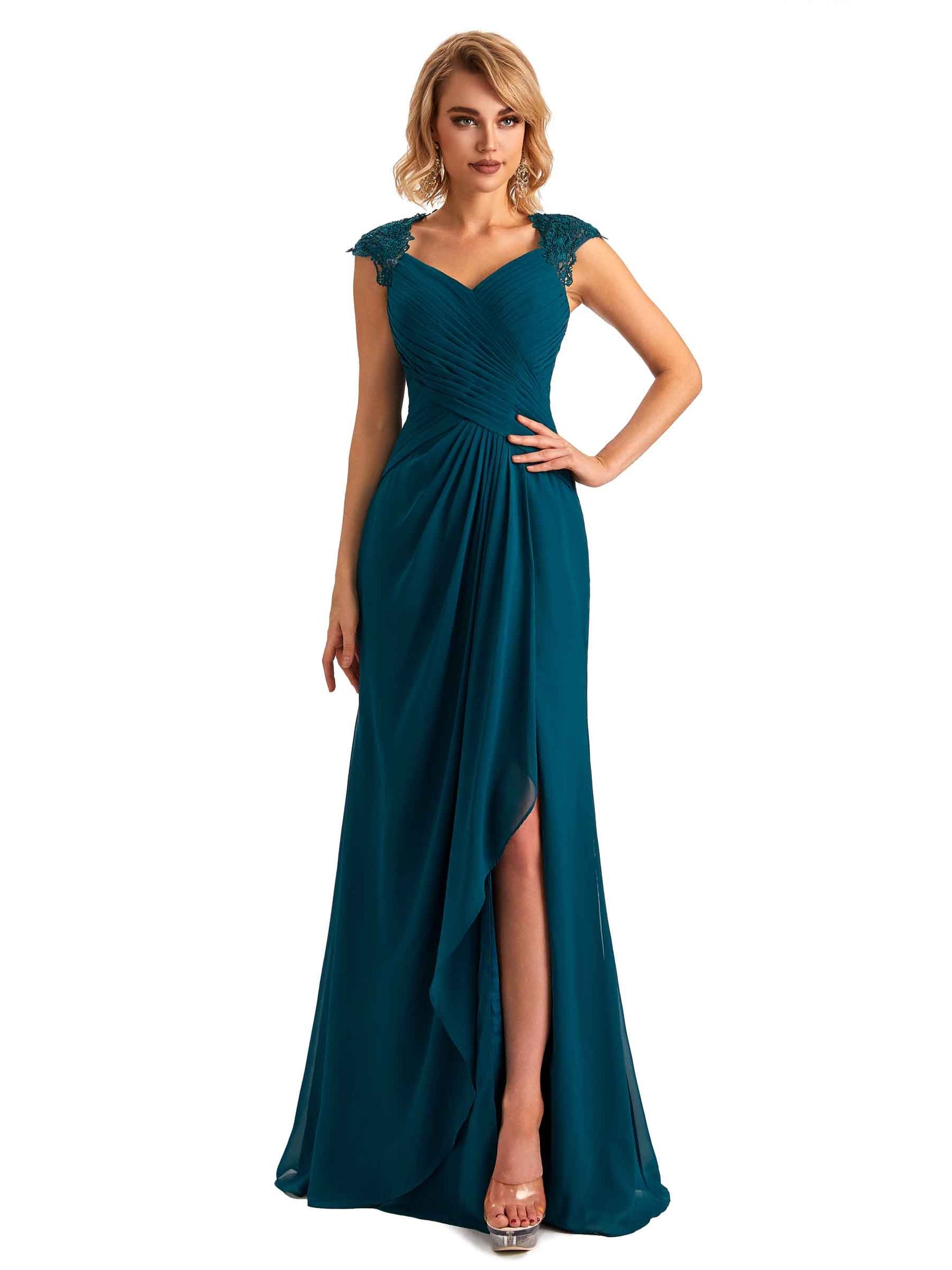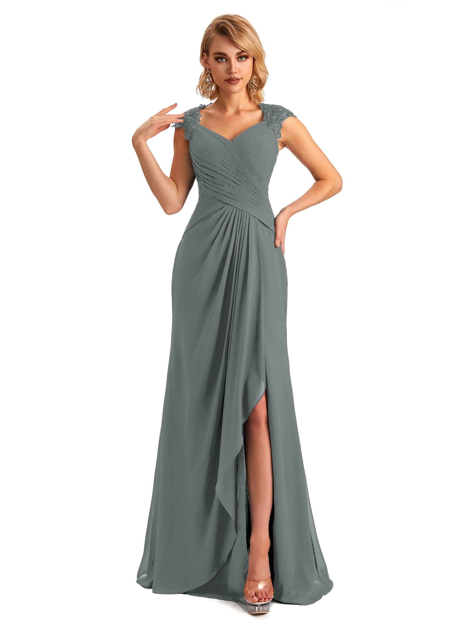 Elegant Side Slit Chiffon Cap Sleeves Long Mother of the Brides Dresses Online - ChicSew – ChicSew