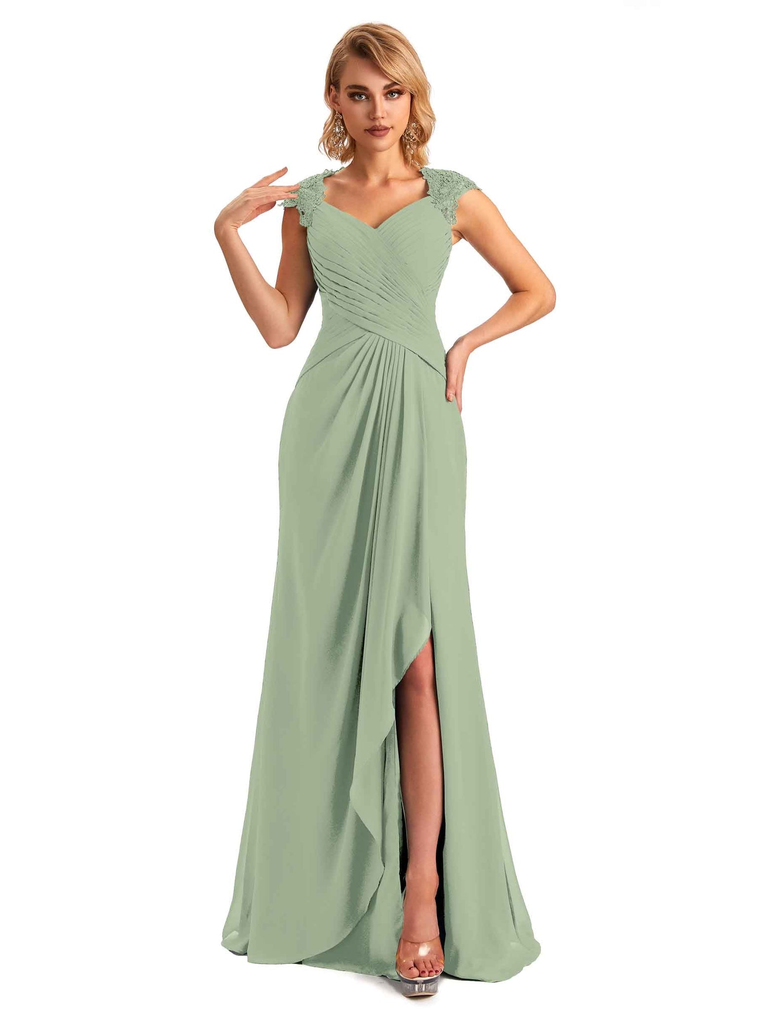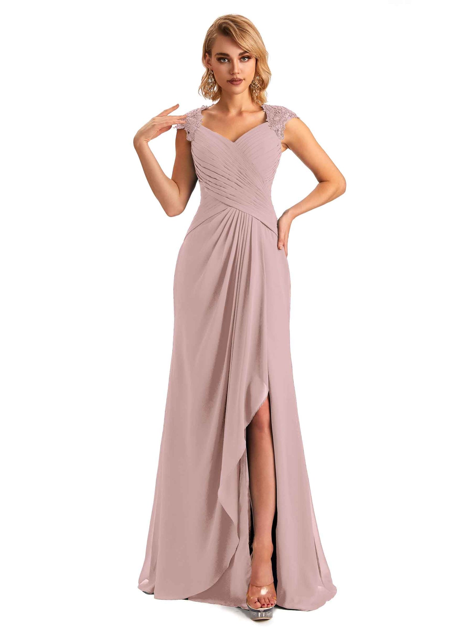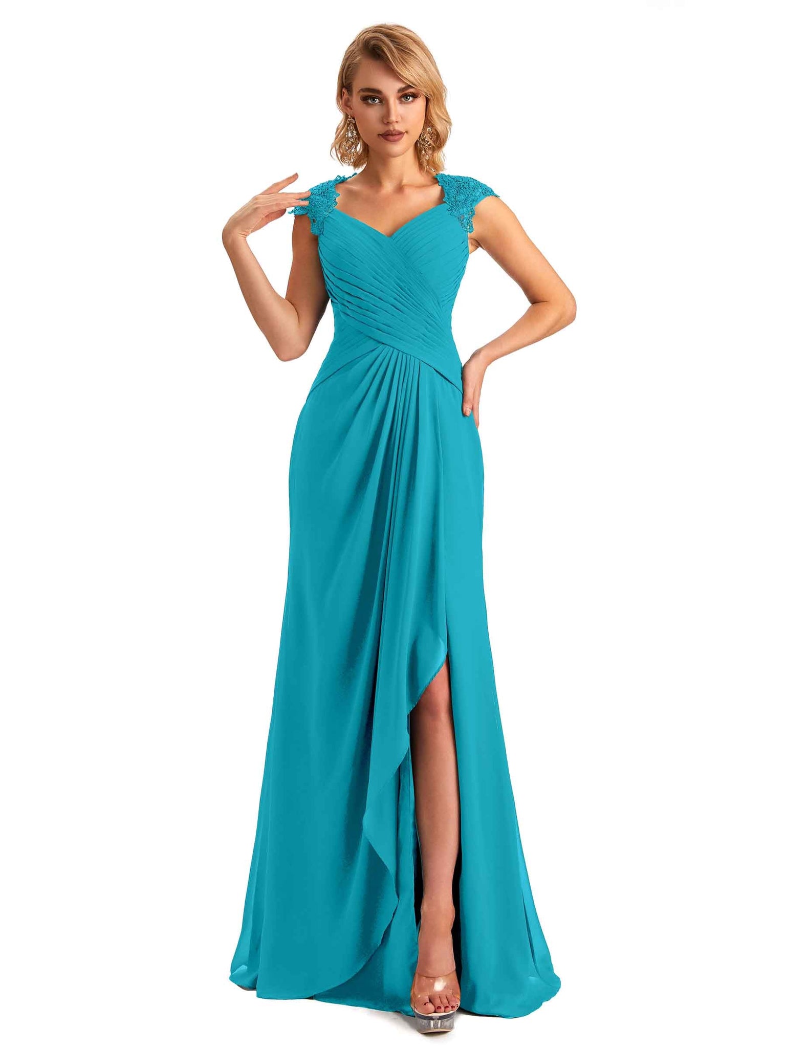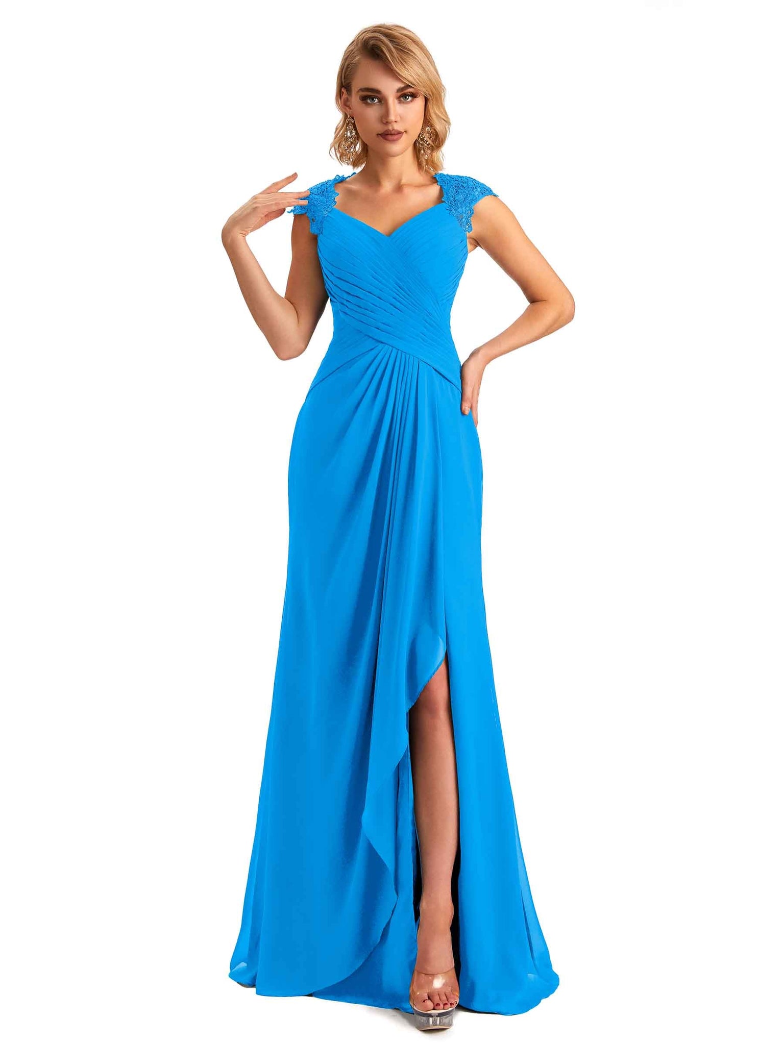 Elegant Side Slit Chiffon Cap Sleeves Long Mother of the Brides Dresses Online - ChicSew – ChicSew
