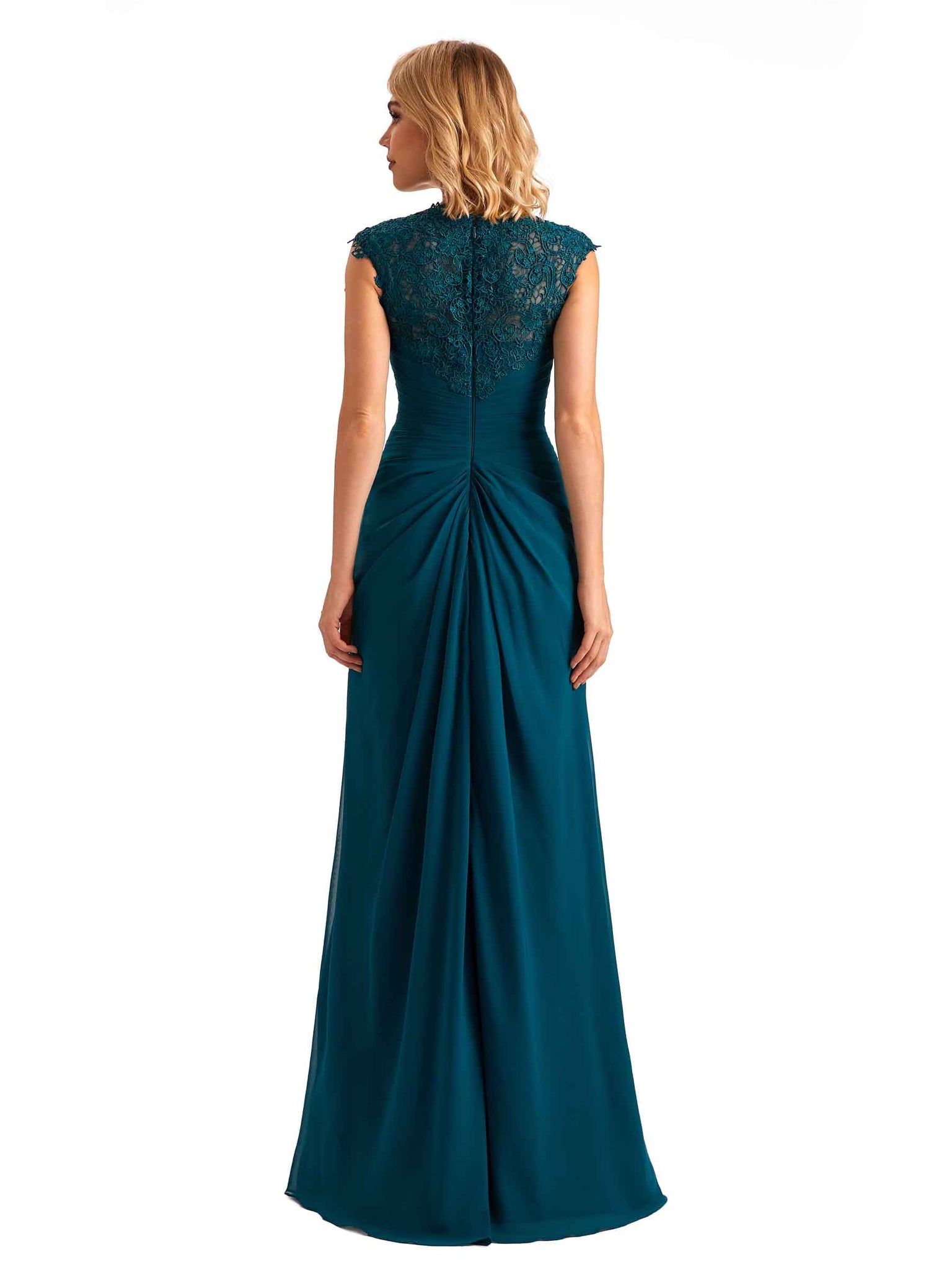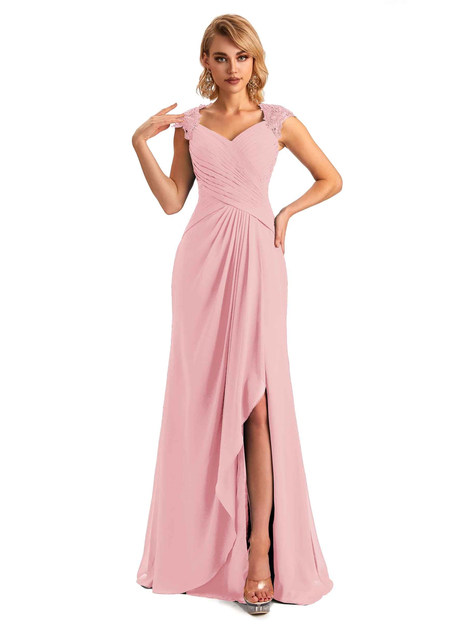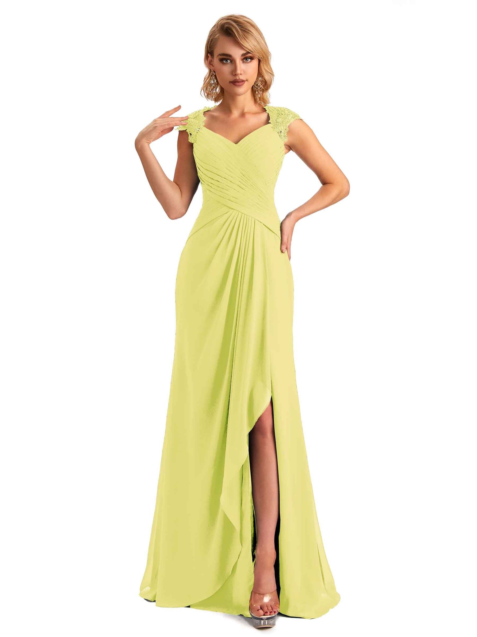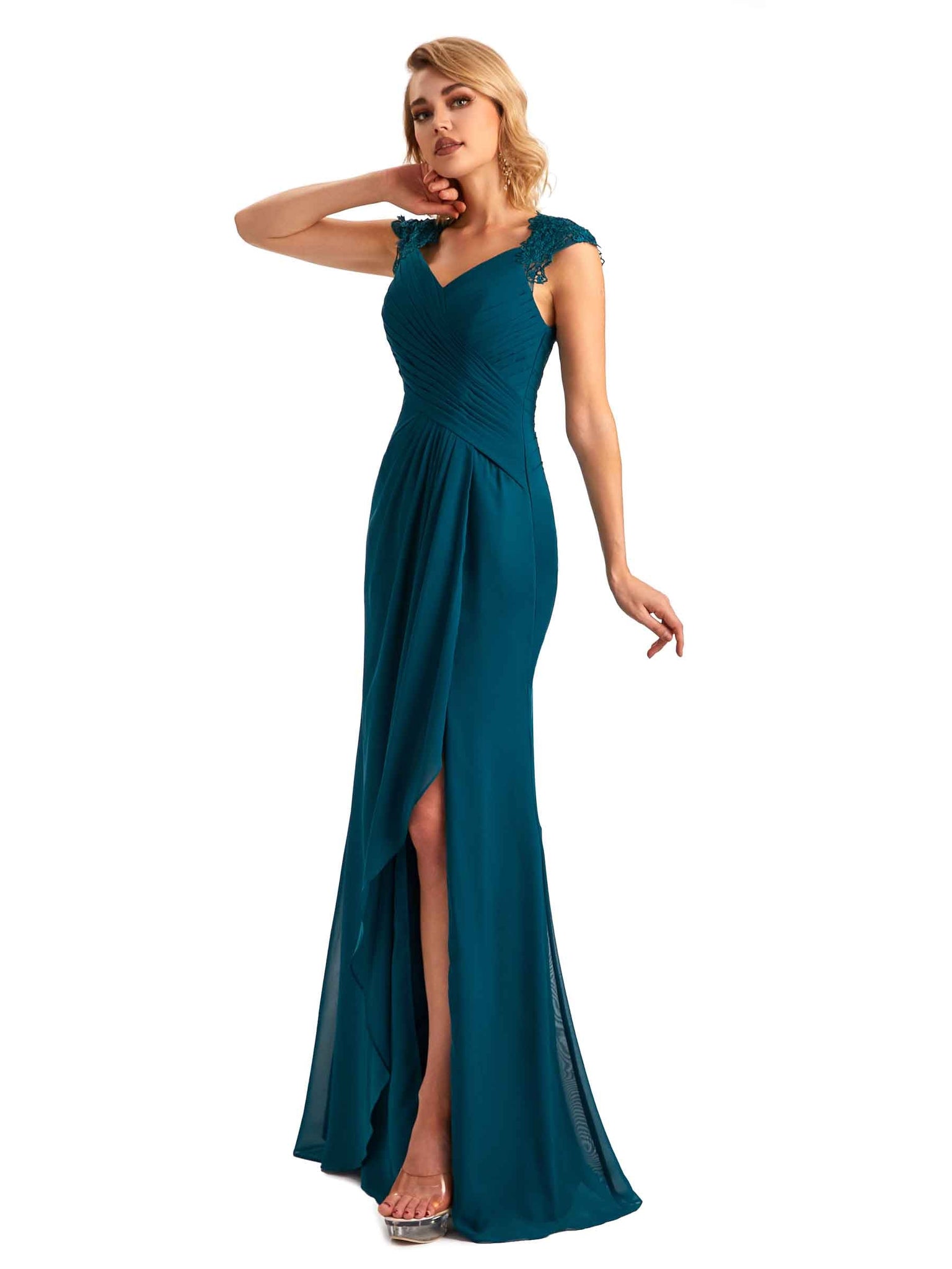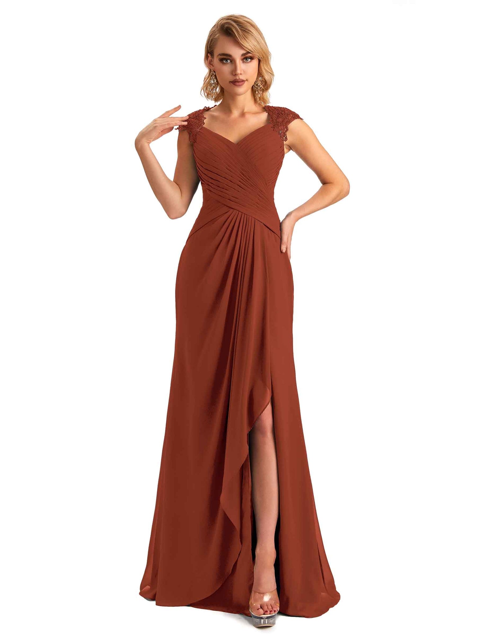 Elegant Side Slit Chiffon Cap Sleeves Long Mother of the Brides Dresses Online - ChicSew – ChicSew