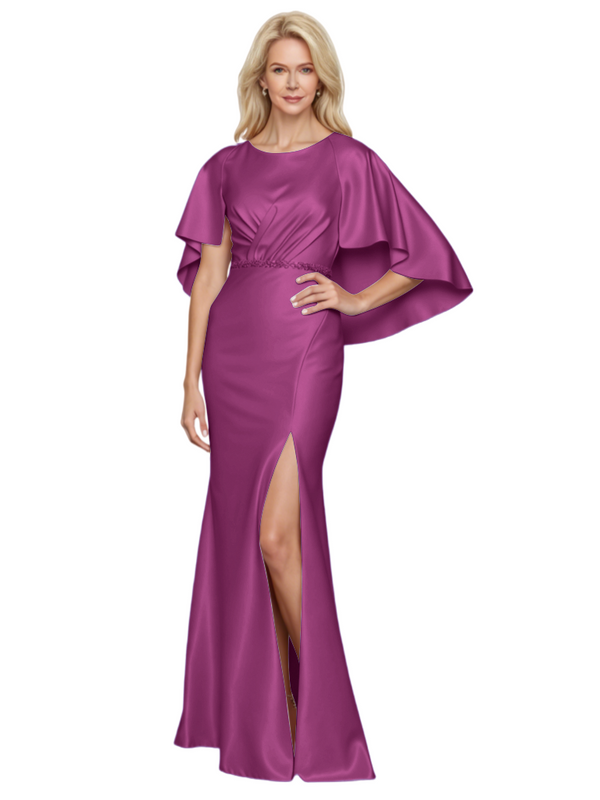 Elegant Side Slit Half Slevees Mermaid Long Mother Of The Bride Dresses