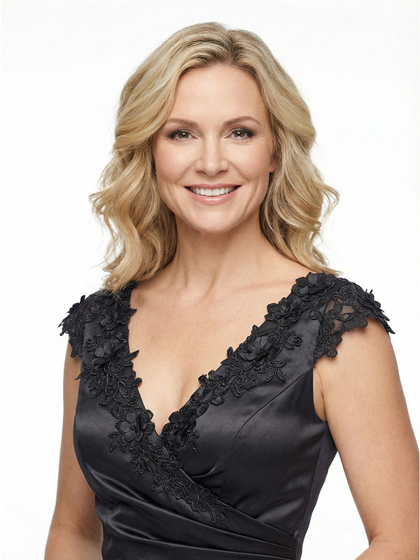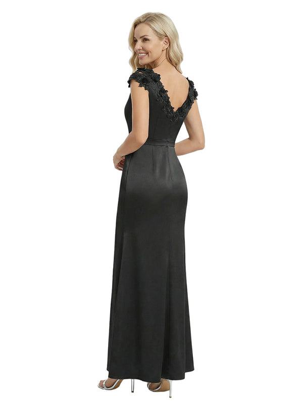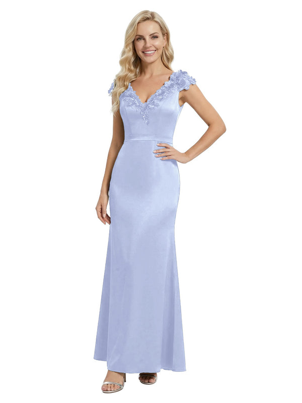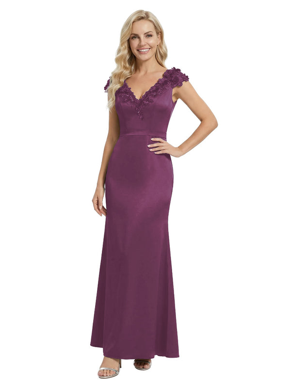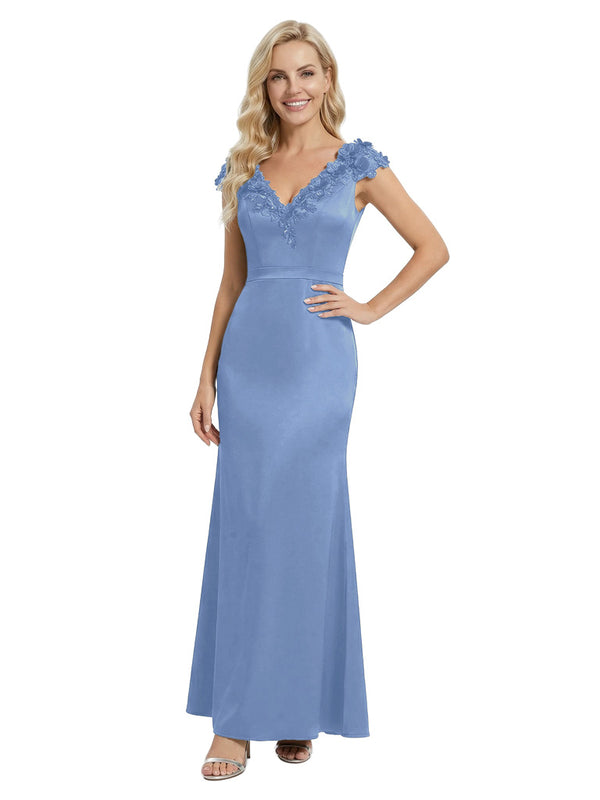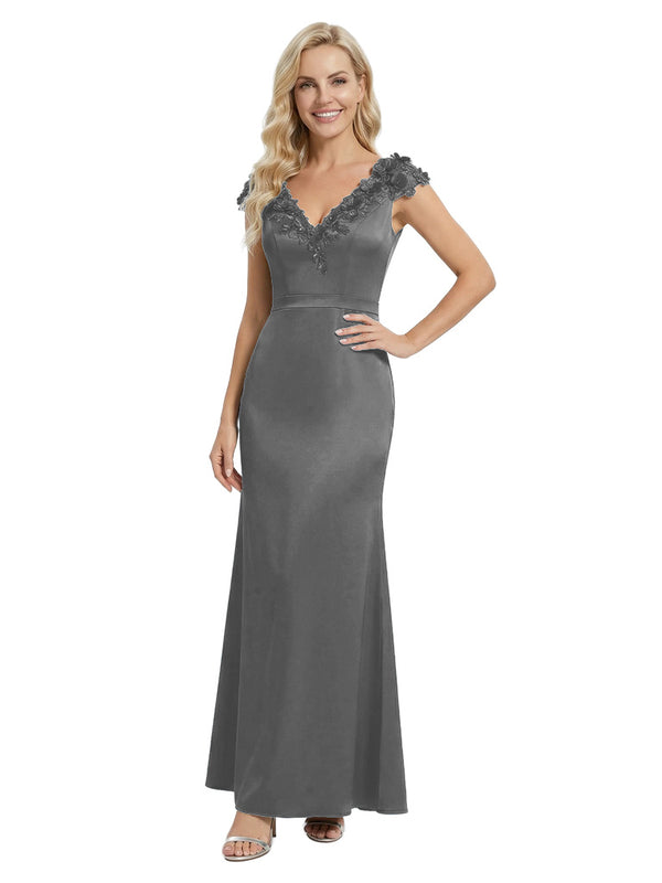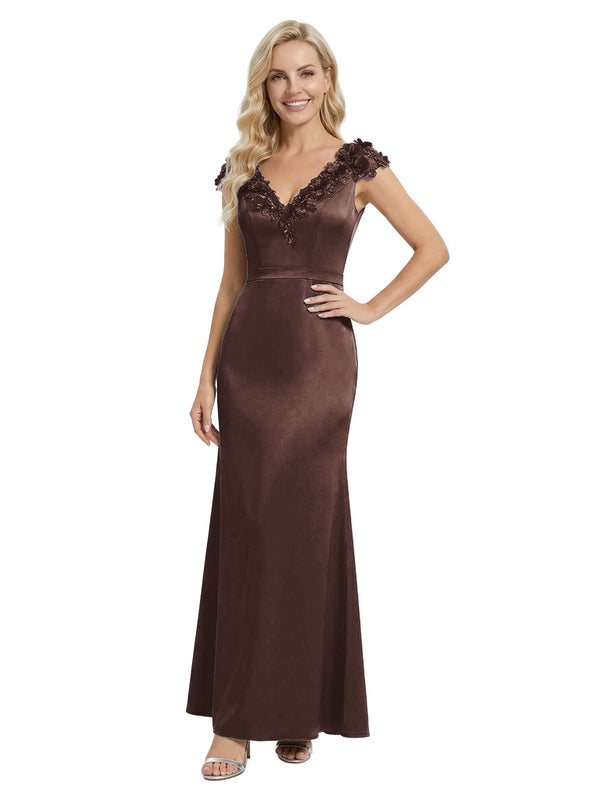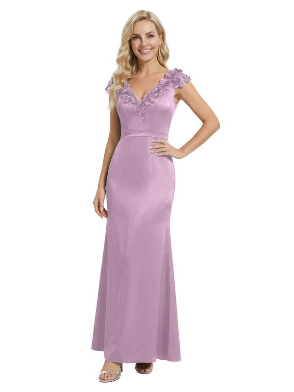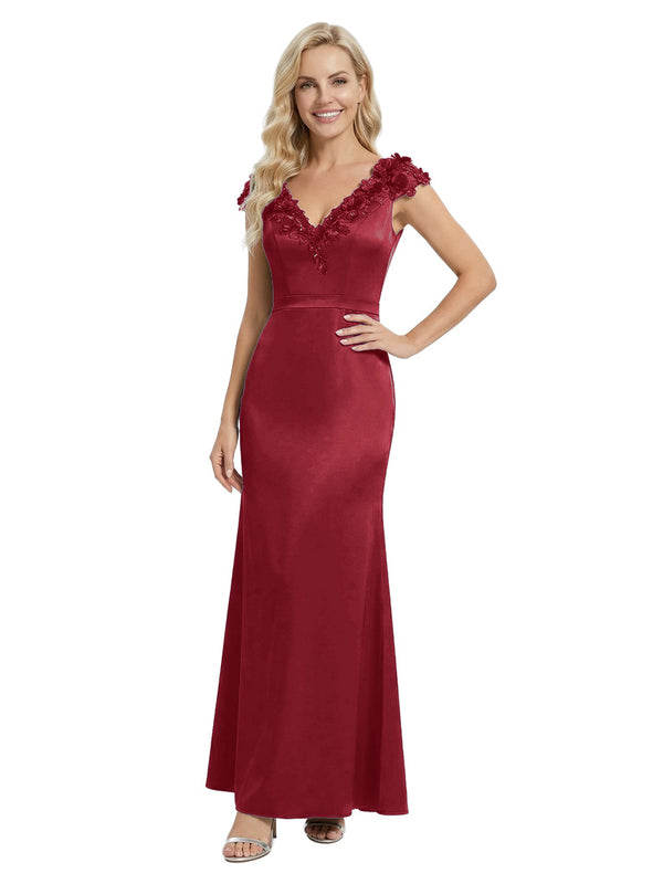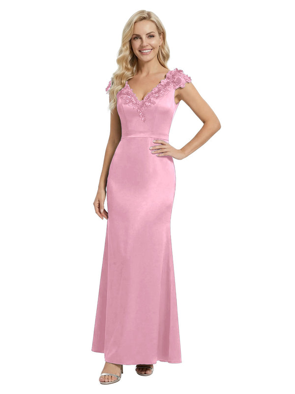 Elegant Sleeveless Floral V-Neck Floor-Length Satin Mother Of The Bride Dresses- ChicSew – ChicSew