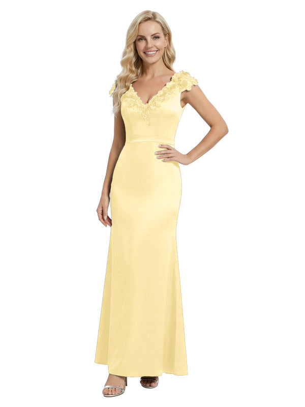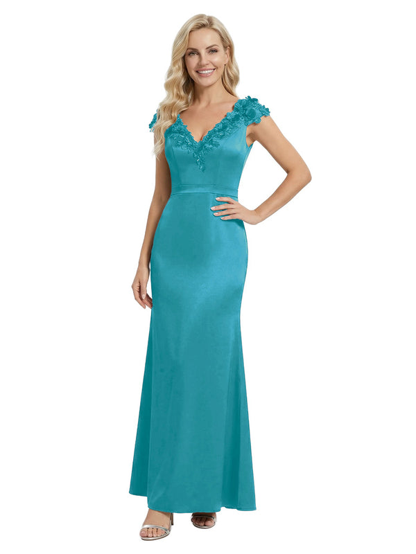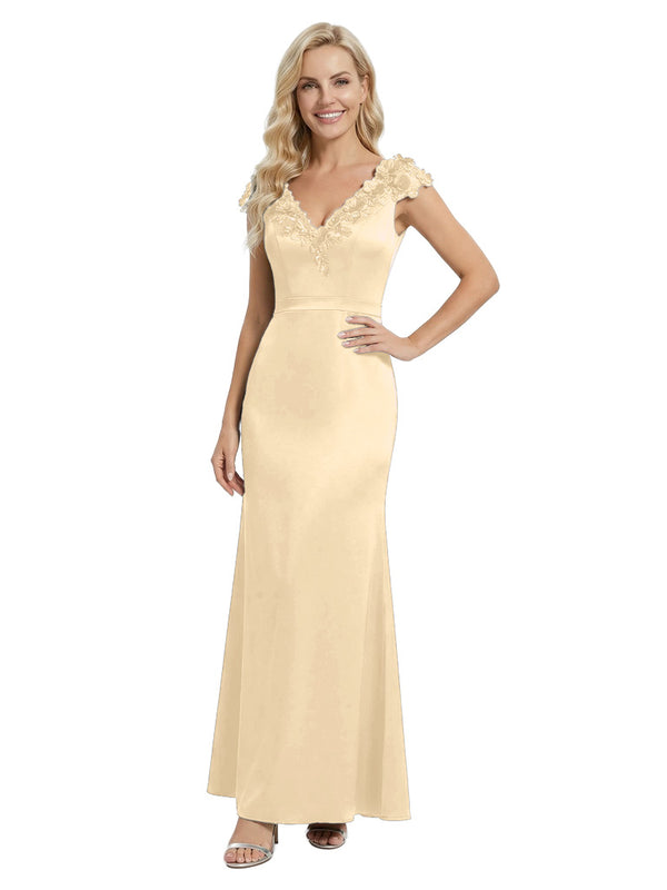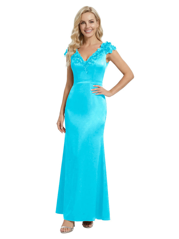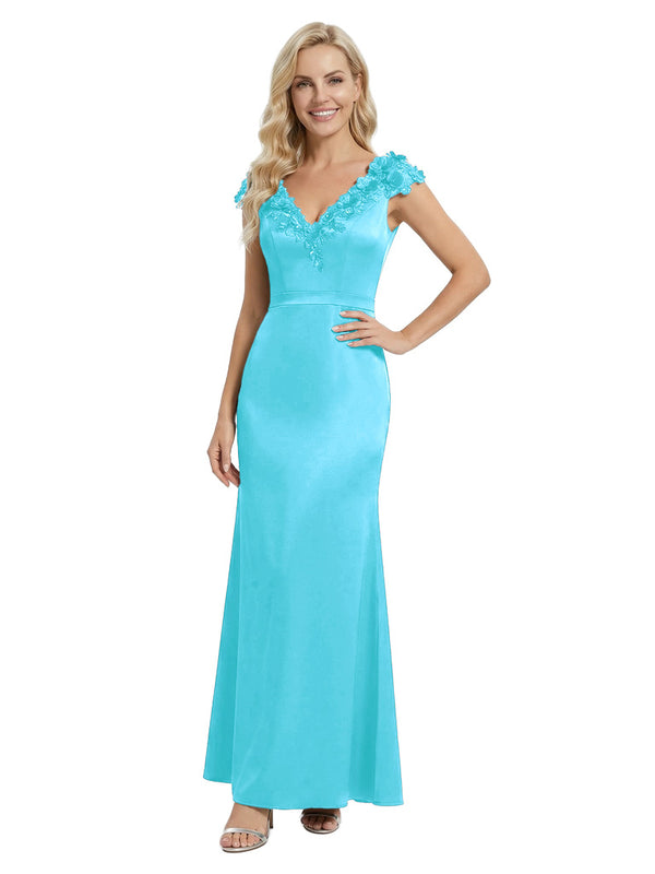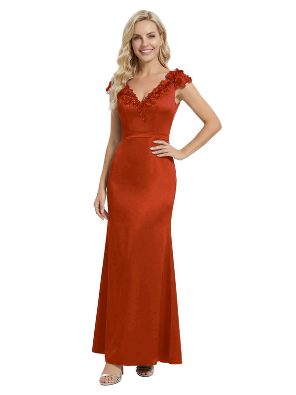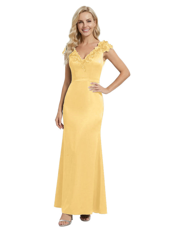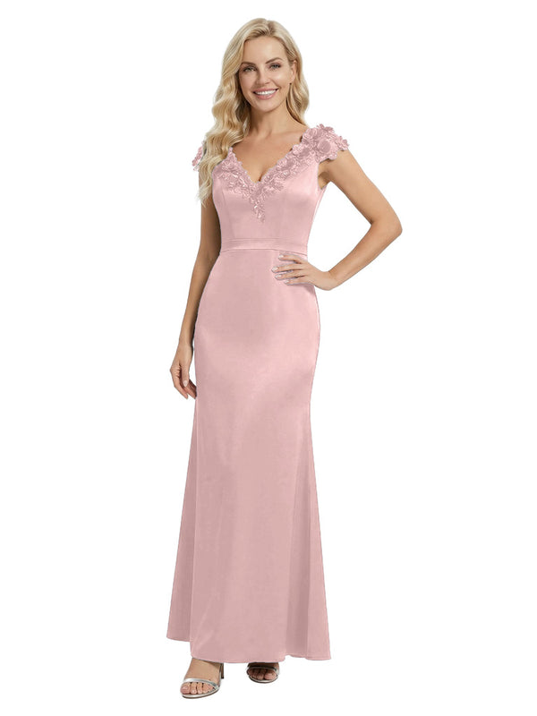 Elegant Sleeveless Floral V-Neck Floor-Length Satin Mother Of The Bride Dresses